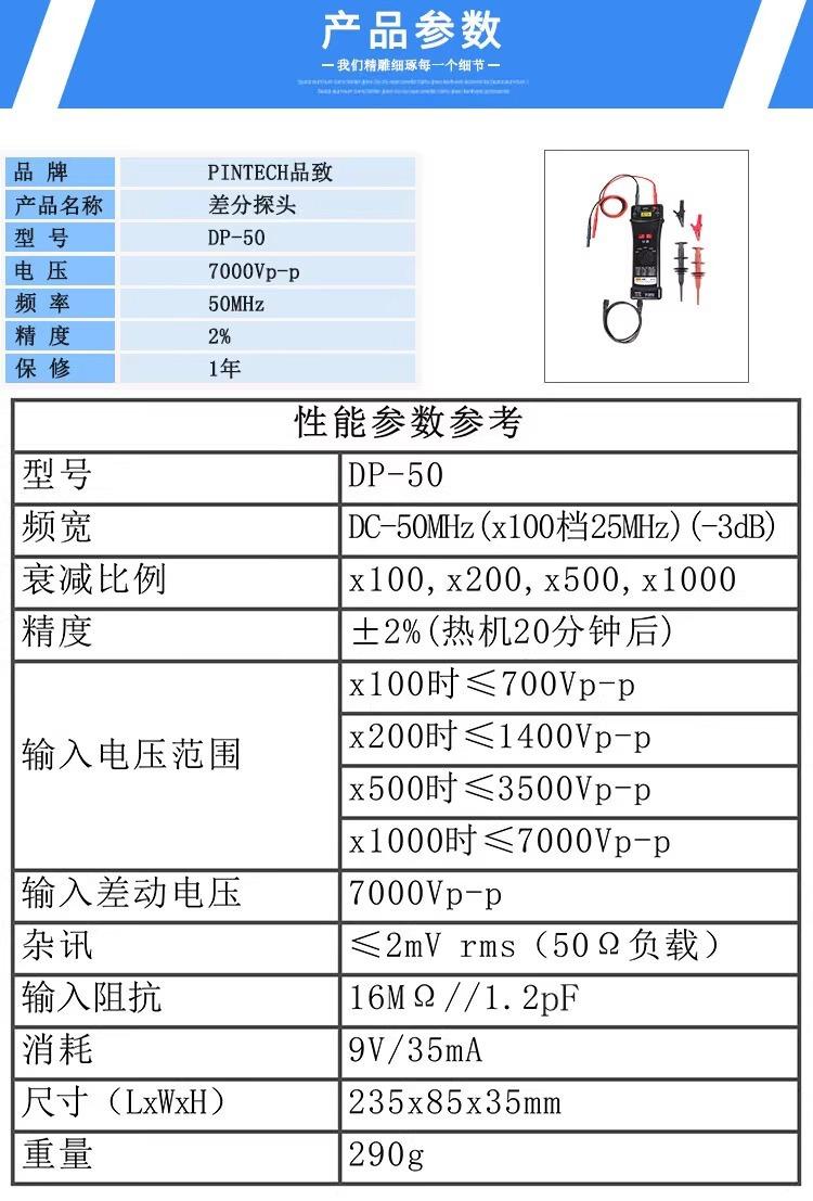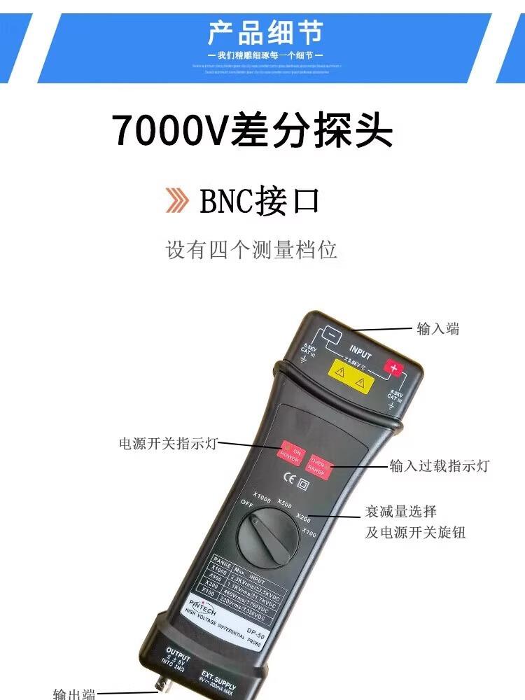 Punta de prueba económica Pintech Punta de prueba diferencial activa Dp-50 Osciloscopio Punta de prueba neutra de alto voltaje