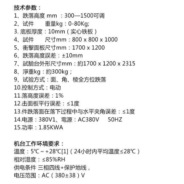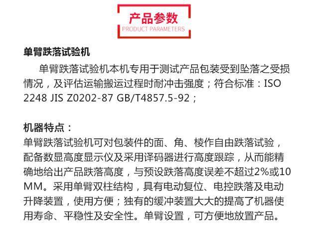 It is suitable for testing damaged by falls after product packaging and evaluation of impact strength during transportation