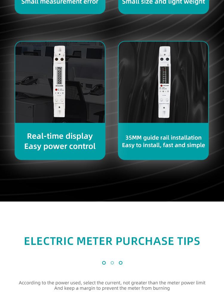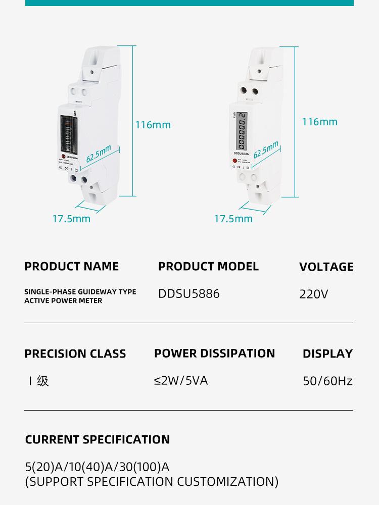 Medidor Eléctrico 1P Micro Monofásico LCD con Retroiluminación Pantalla de Contador Medidor de Energía Tipo Riel Inteligente Medidor Inteligente