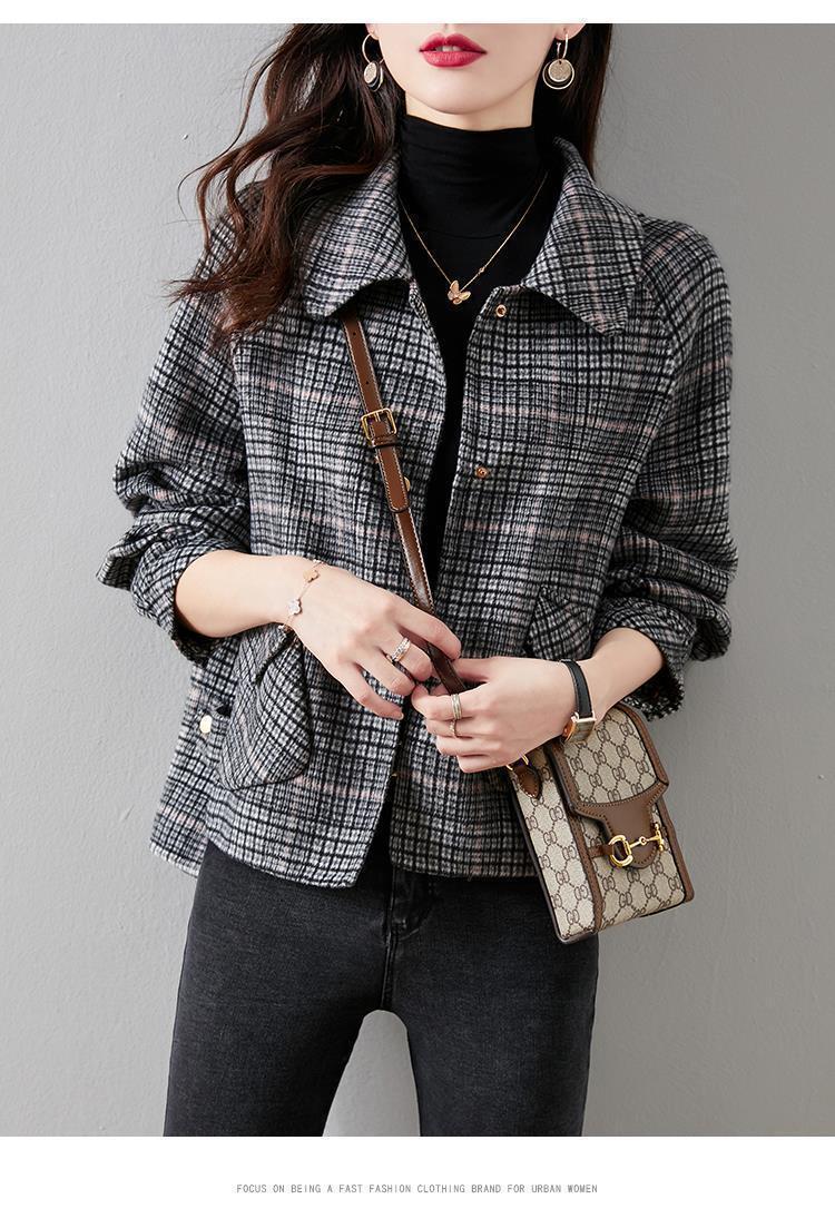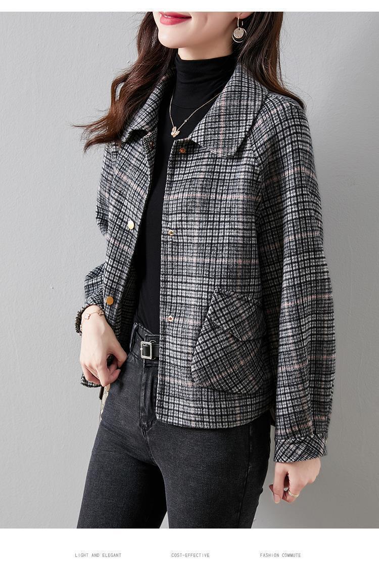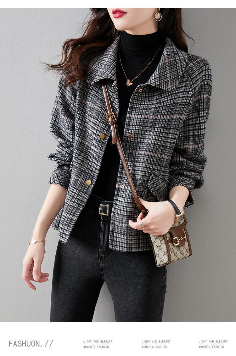 Abrigo estilo Chanel para mujer, primavera y otoño 2024, estilo coreano, corto, combinable, de alta gama, a cuadros, de lana gruesa.