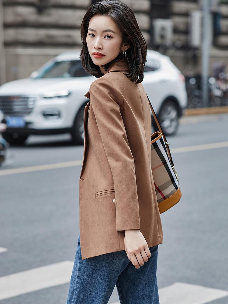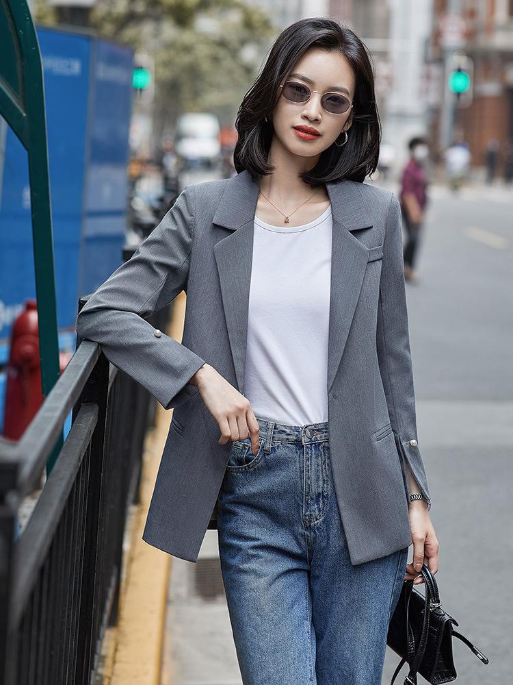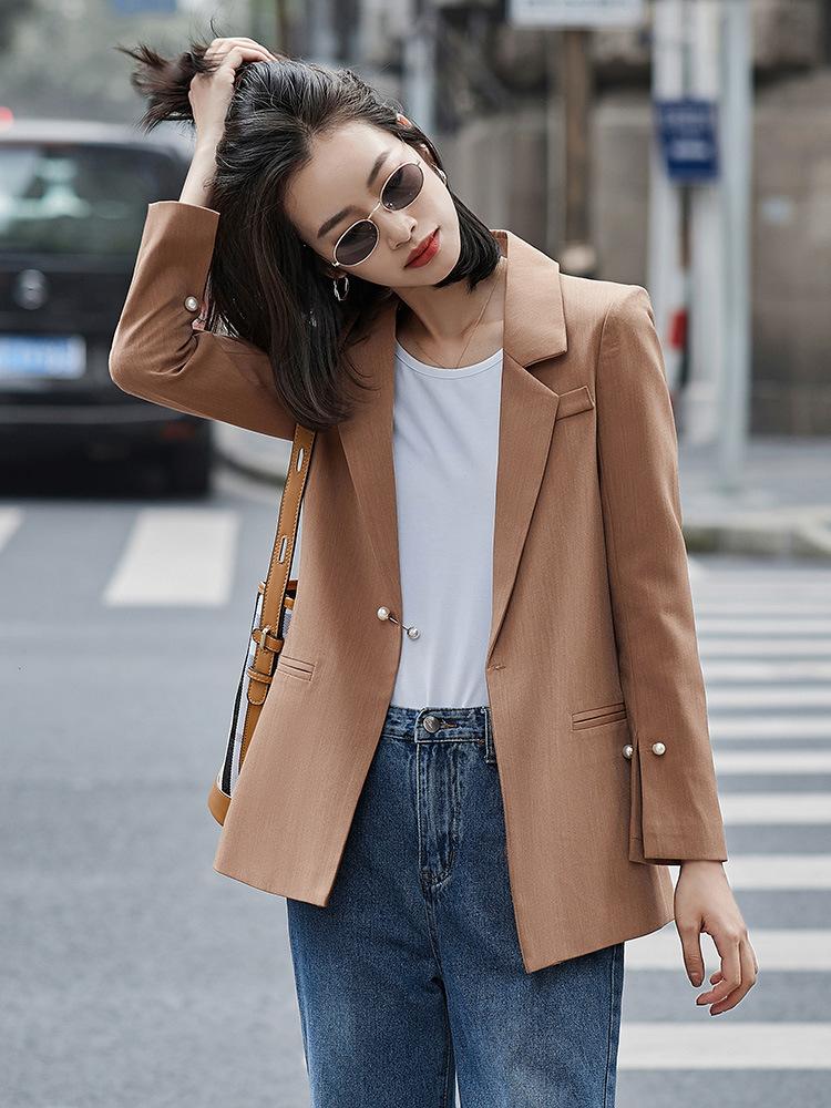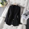Chaqueta de Traje de Calle Frita para Mujer Elegante Moda Drapeada Manga Larga Traje Pequeño para Mujer Profesional Coreano Holgado Otoño e Invierno Top