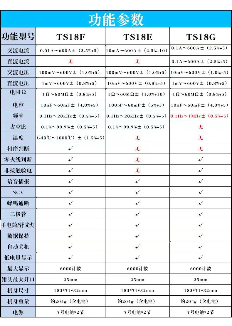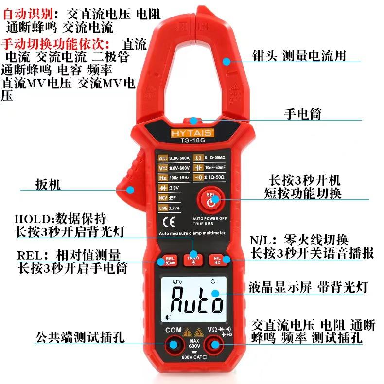 Queridos amigos:TS18ELa tecla de función de linterna se presiona prolongadamente durante 3 segundos para cambiar a la función de transmisión de voz. La función de identificación totalmente automática tiene funciones de voltaje/corriente/resistencia/zumbador de continuidad. Si hay algo que no entiende, por favor contáctenos a través de Wangwang primero.