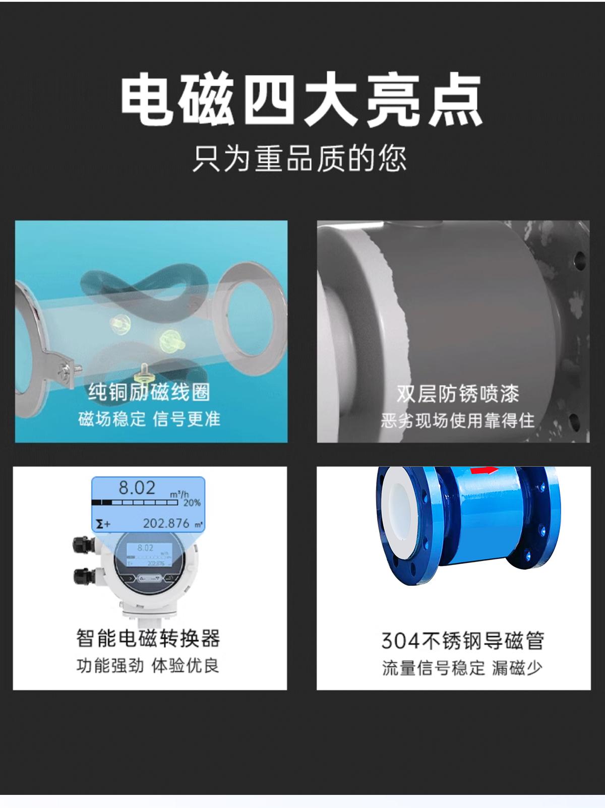 Caudalímetro Electromagnético de Alta Precisión Integrado Pantalla Digital Inteligente Tubería Aguas Residuales Aguas Residuales Medición de Líquidos Ácido-Base Tratamiento