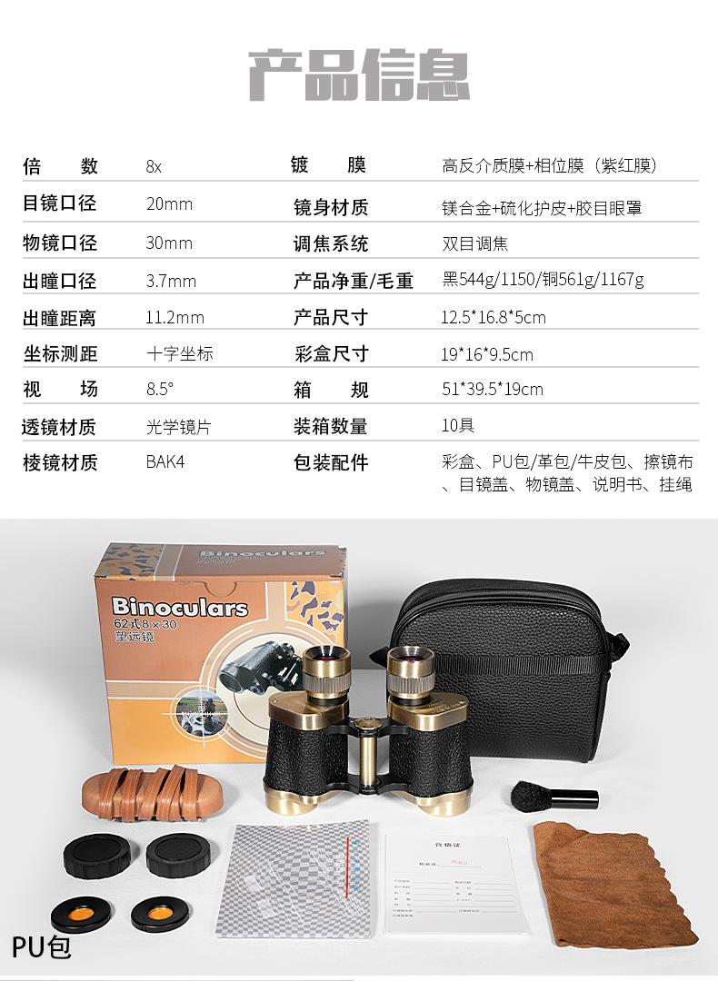 Binoculares Tipo 62 8X30 Retro Bronce HD Alta Potencia Rango de Coordenadas Exterior Portátil Telescopio a Prueba de Golpes