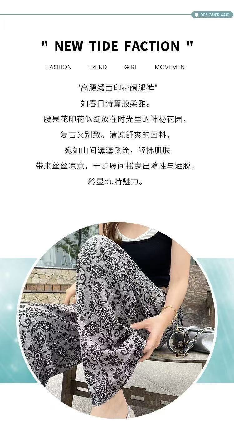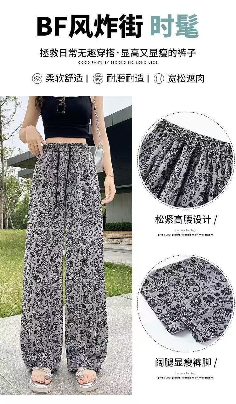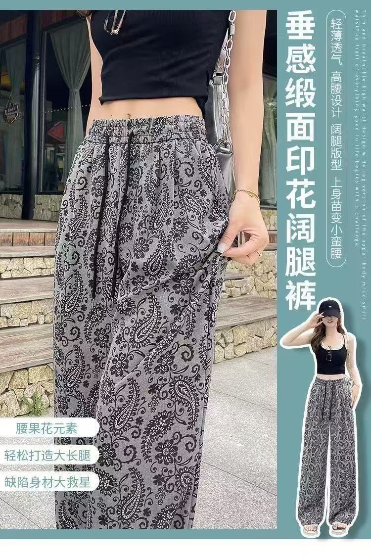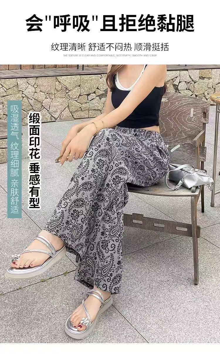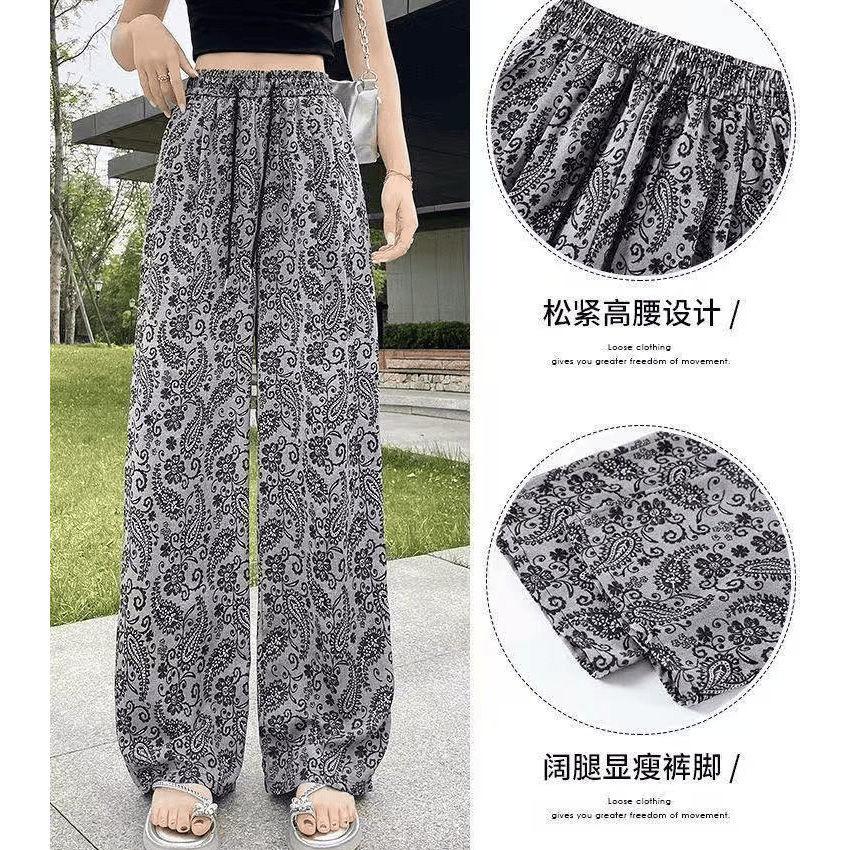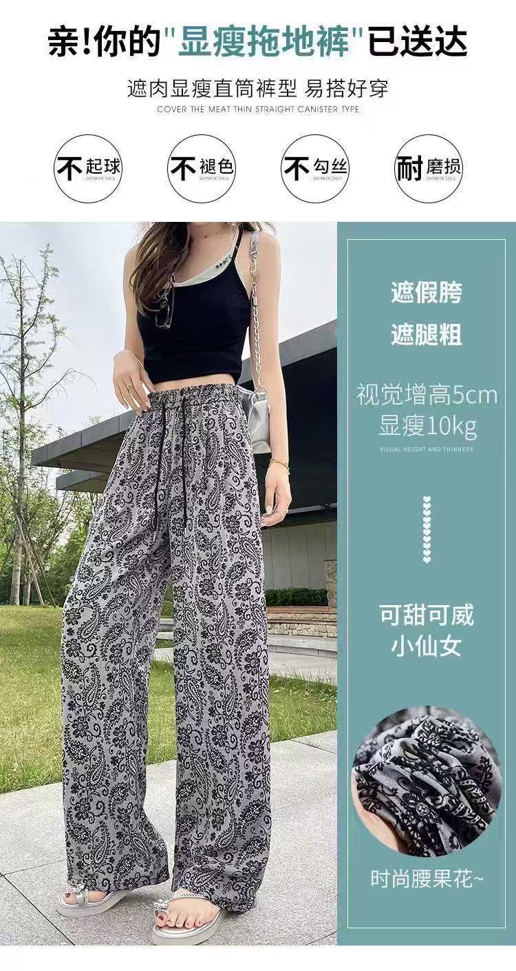 Pantalones Vintage Jacquard de Pierna Ancha para Mujer 2025 Verano Nuevo Estilo Holgados de Cintura Alta Sueltos Adelgazantes de Pierna Recta