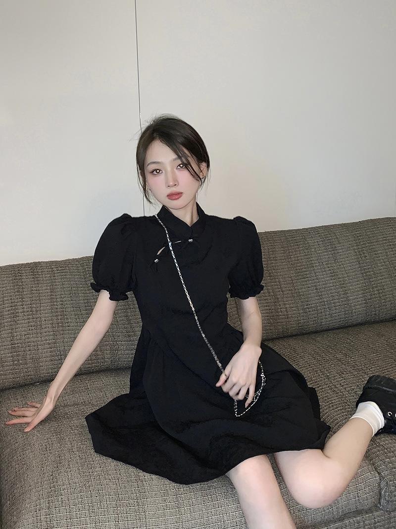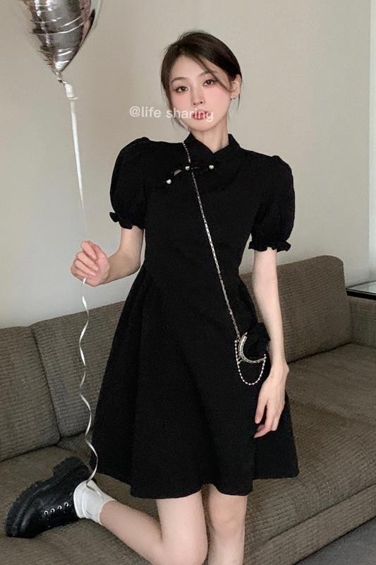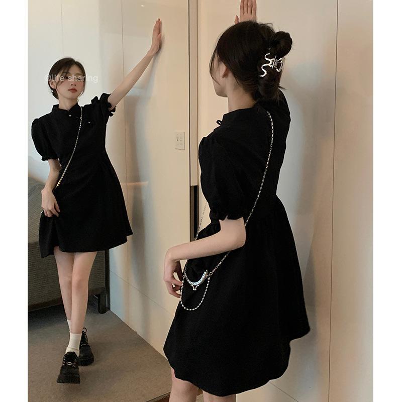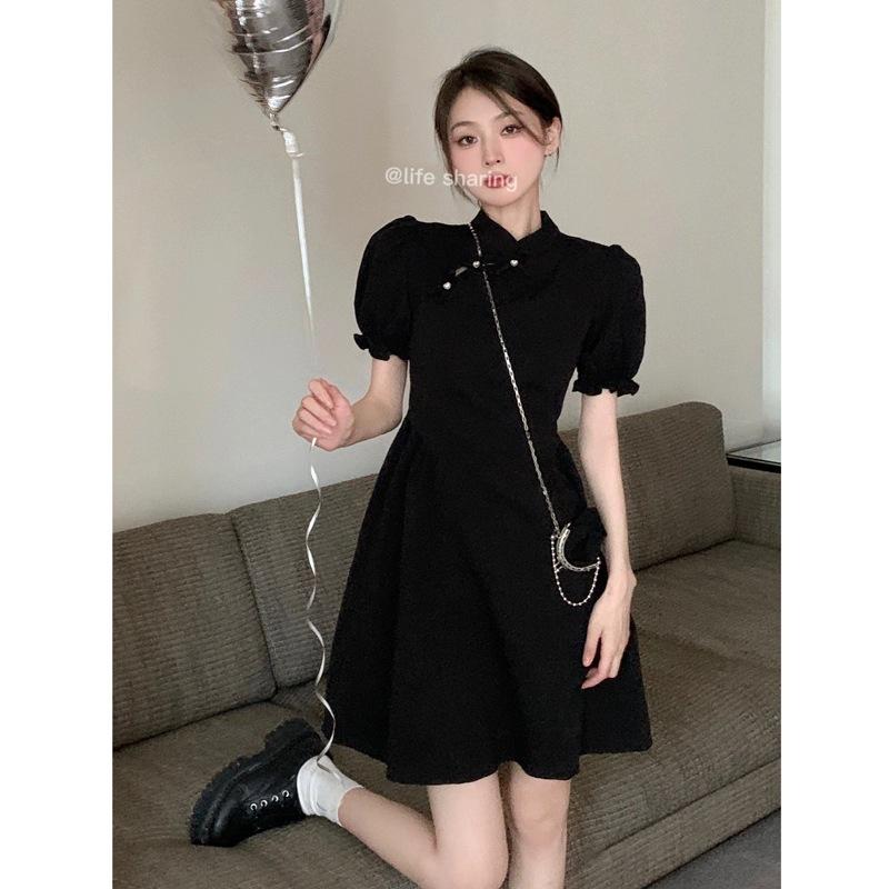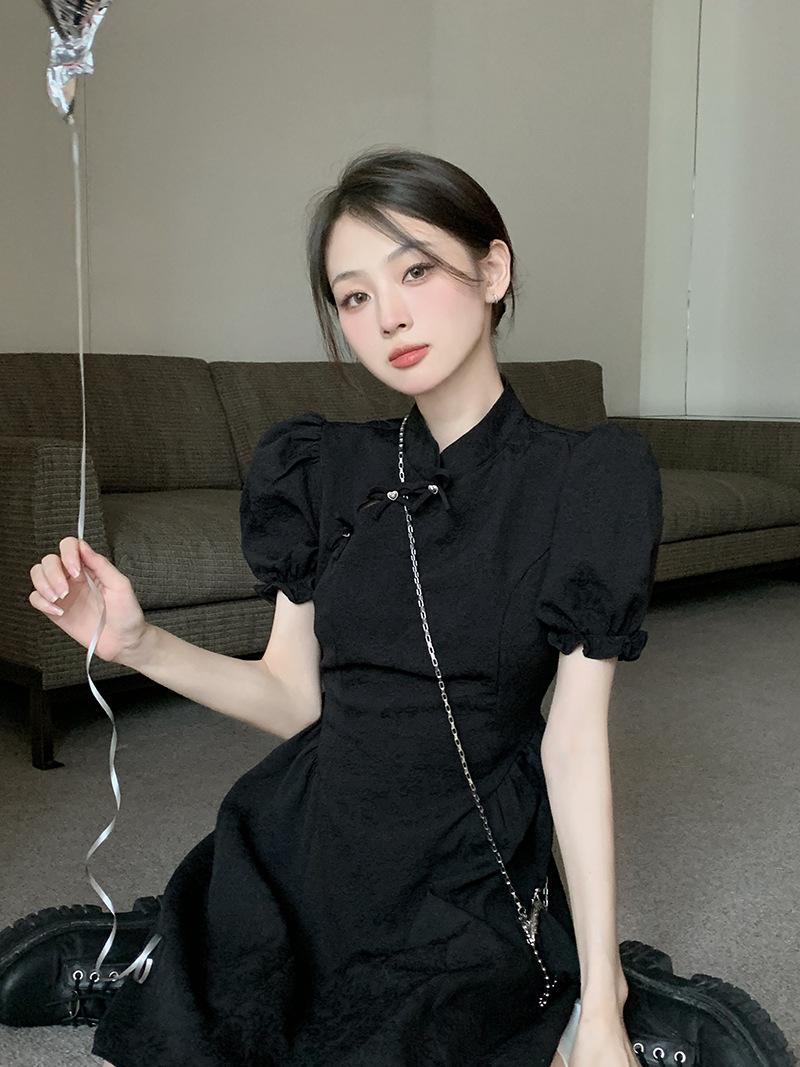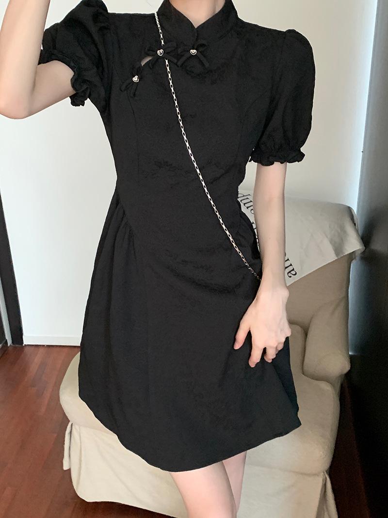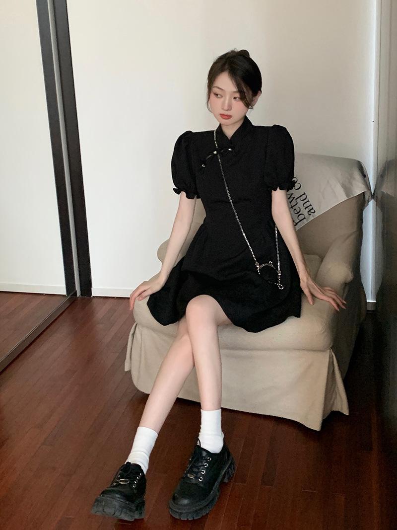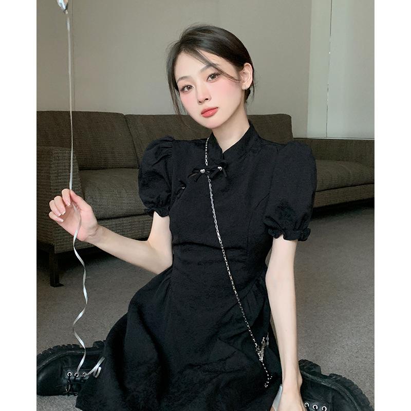Verano Nuevo Estilo Chino Mejorado Vestido Cheongsam Corto para Mujer Retro 2025 Nueva Moda Cintura Alta Cuello Mao Manga Corta