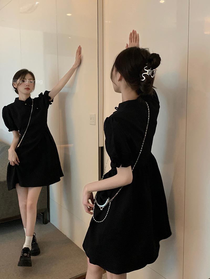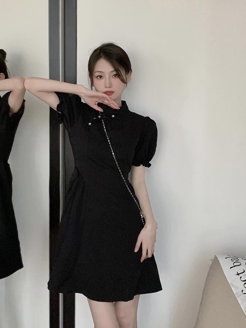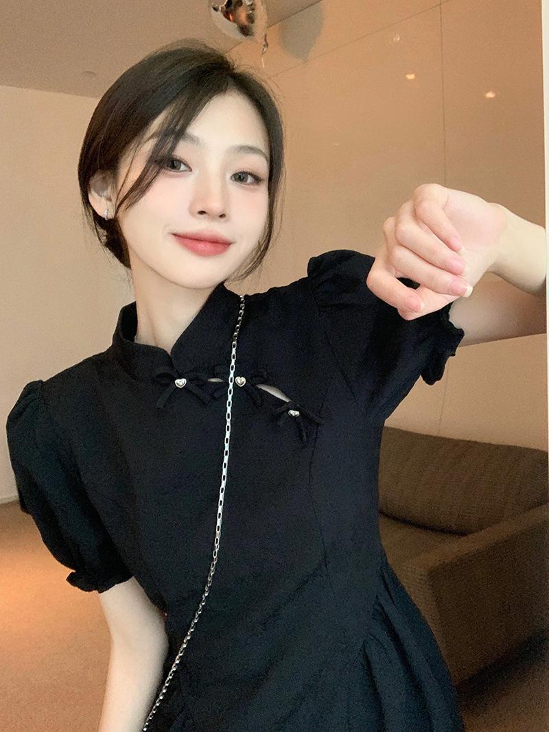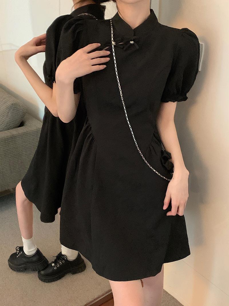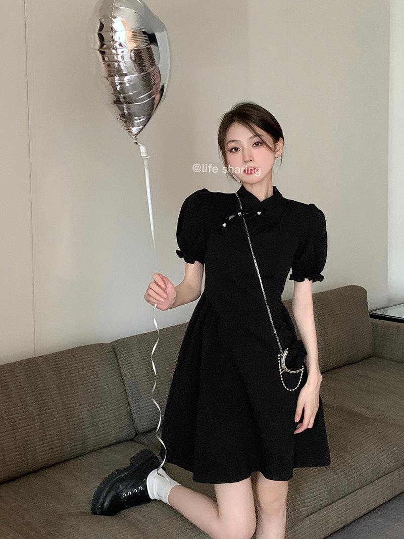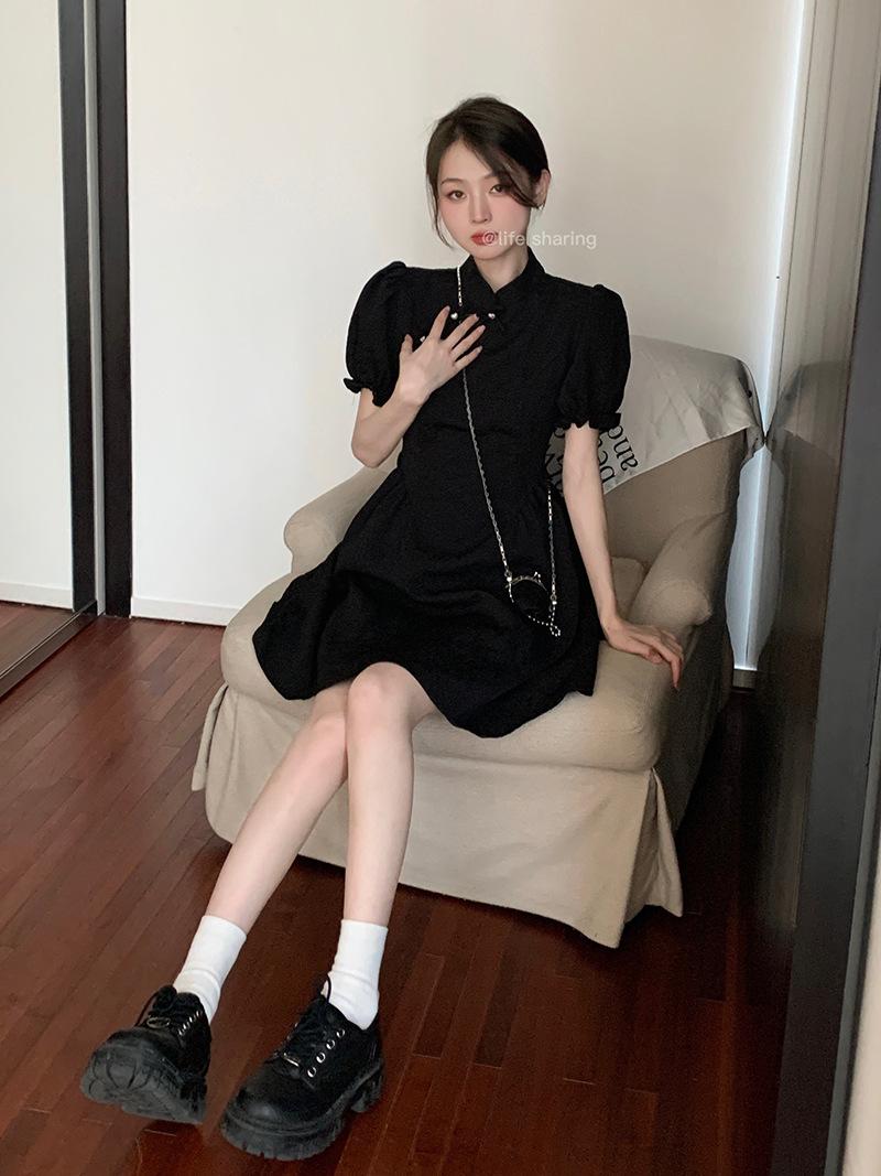 Verano Nuevo Estilo Chino Mejorado Vestido Cheongsam Corto para Mujer Retro 2025 Nueva Moda Cintura Alta Cuello Mao Manga Corta
