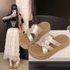 Pantuflas para Exterior de Mujer 2025 Verano Nuevo Versátil Sandalias Casuales de Playa de Suela Gruesa
