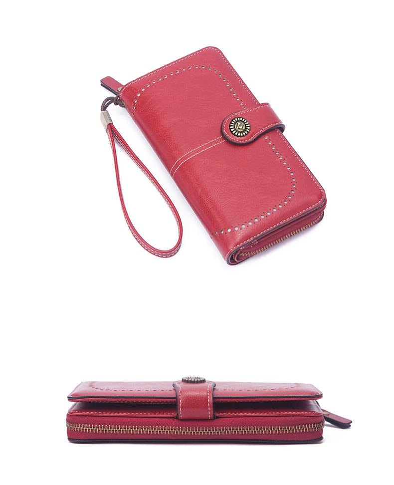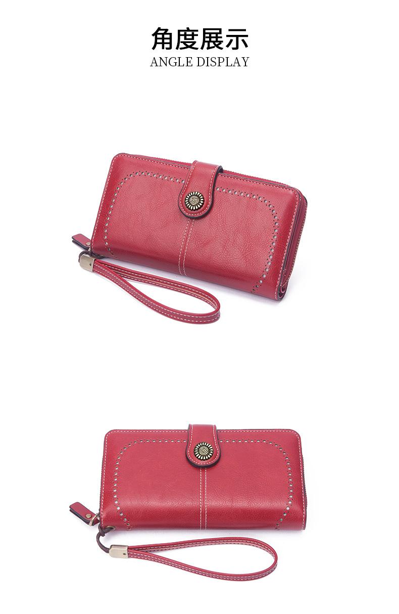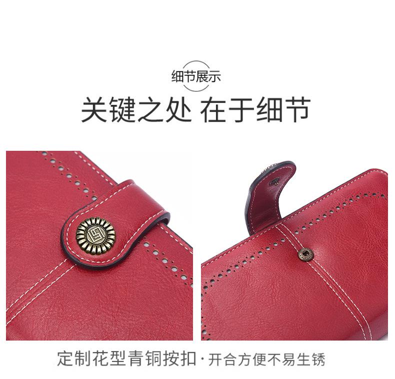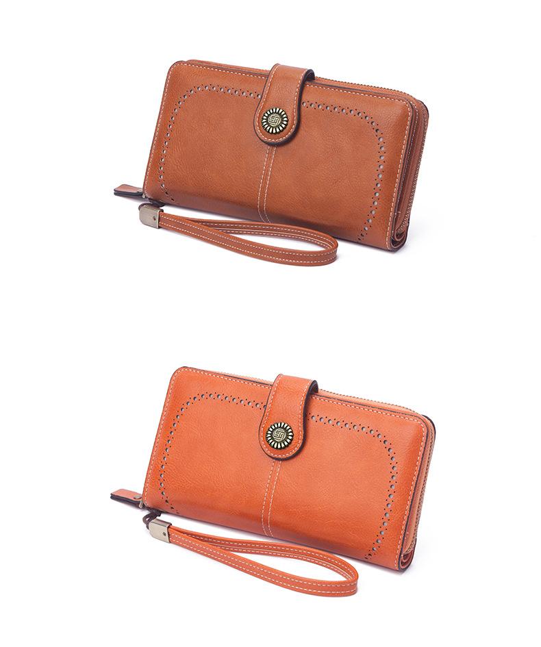 Billetera Larga para Mujer 2023 Transfronteriza Nueva Retro Cuero de Cera de Aceite Billetera Calada Estilo Coreano Gran Capacidad Bolsa para Teléfono Móvil para Mujer