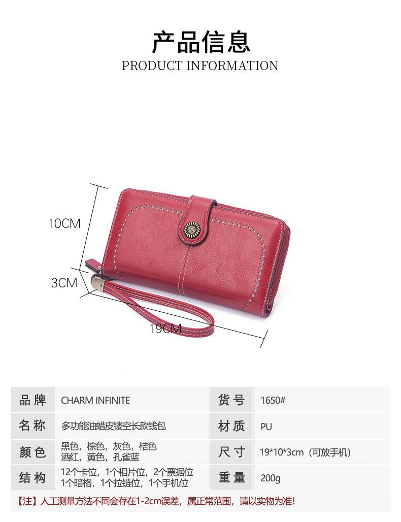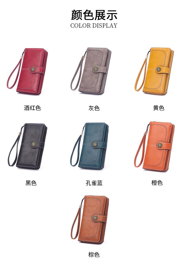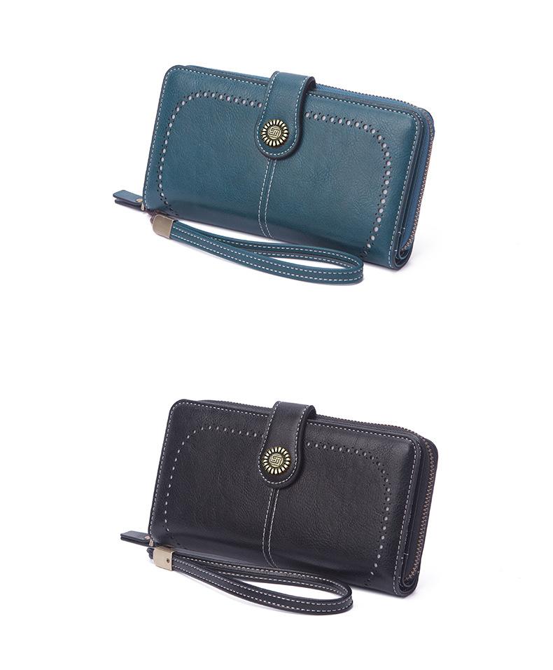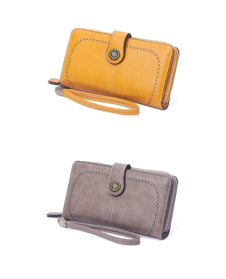 Billetera Larga para Mujer 2023 Transfronteriza Nueva Retro Cuero de Cera de Aceite Billetera Calada Estilo Coreano Gran Capacidad Bolsa para Teléfono Móvil para Mujer