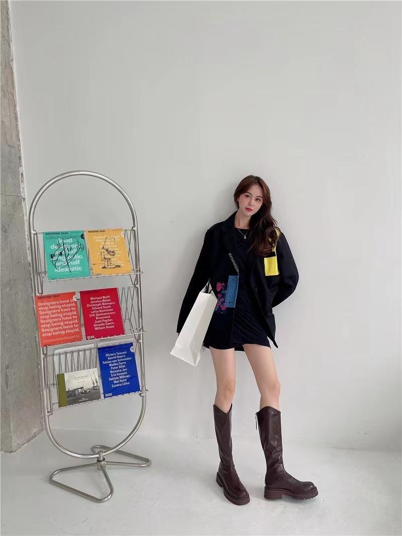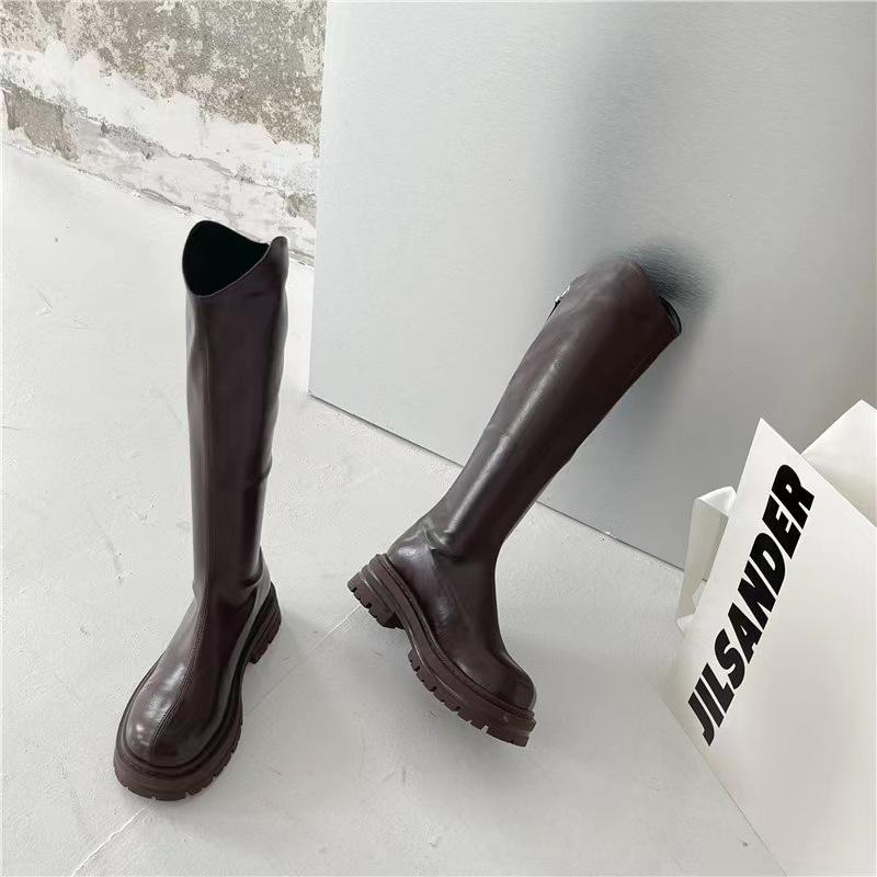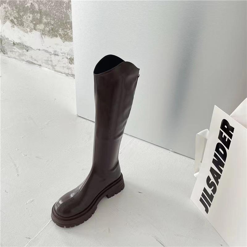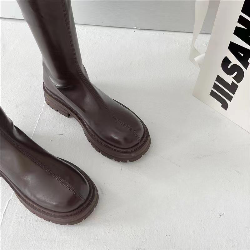Estudio otoño e invierno v botas nuevas botas de caballero para mujer largas uva botas de mamá tacón grueso lee fondo grueso boca con cremallera trasera