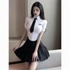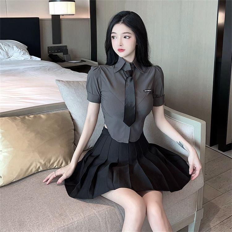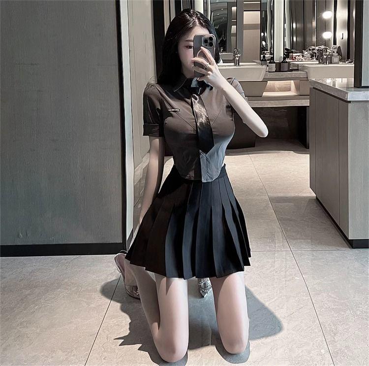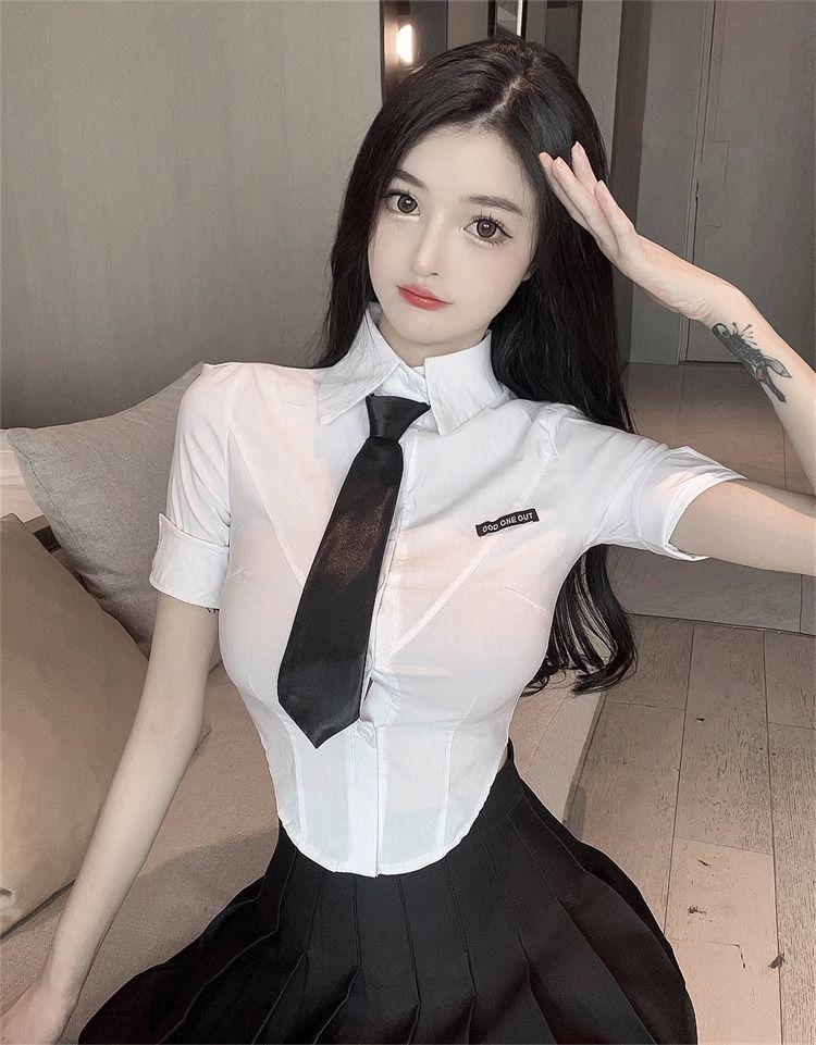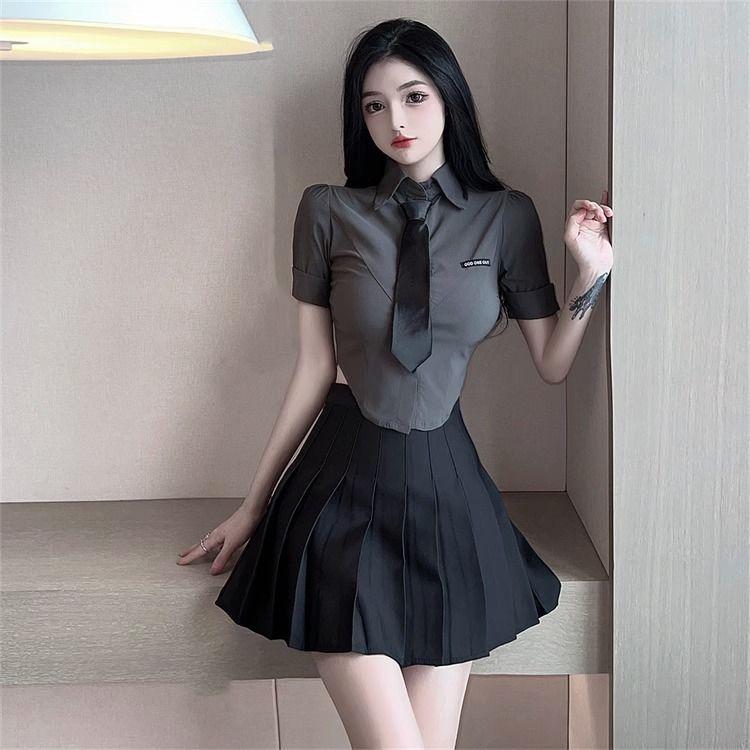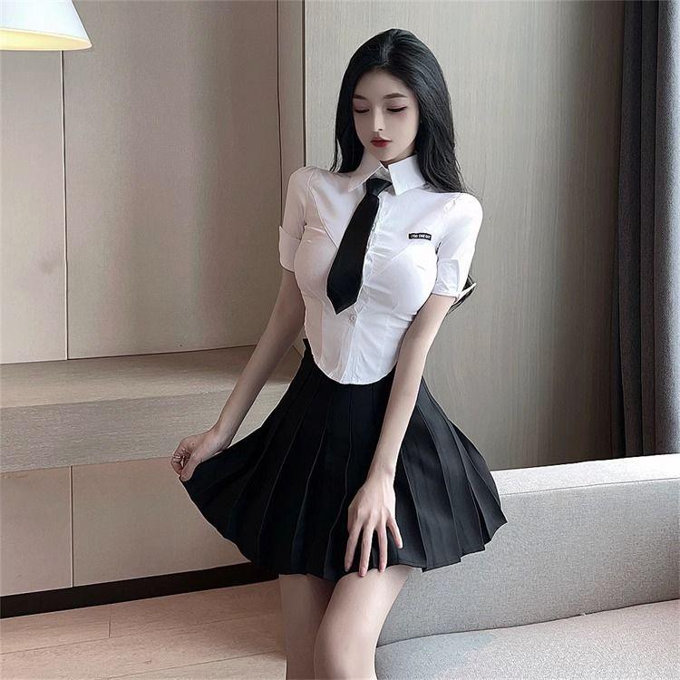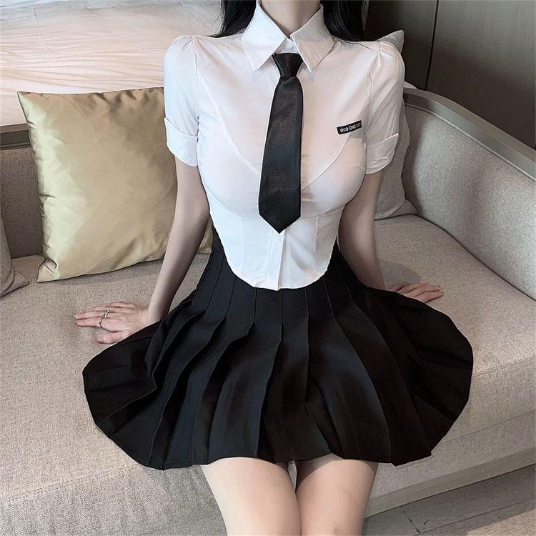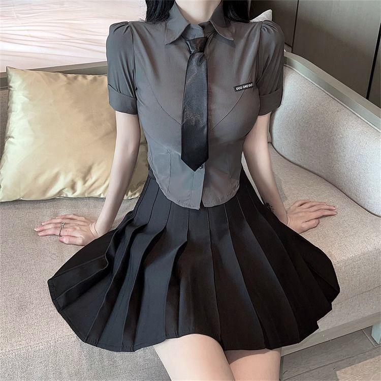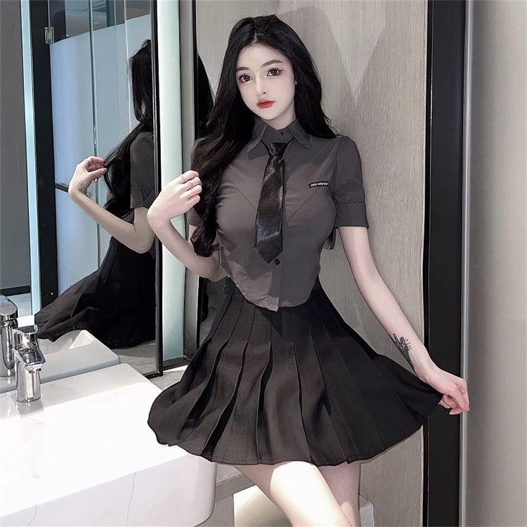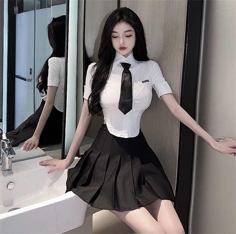 White shirt + Black * tie, Gray shirt + Black * tie, White shirt + black pleated skirt + black tie suit, Gray ...