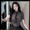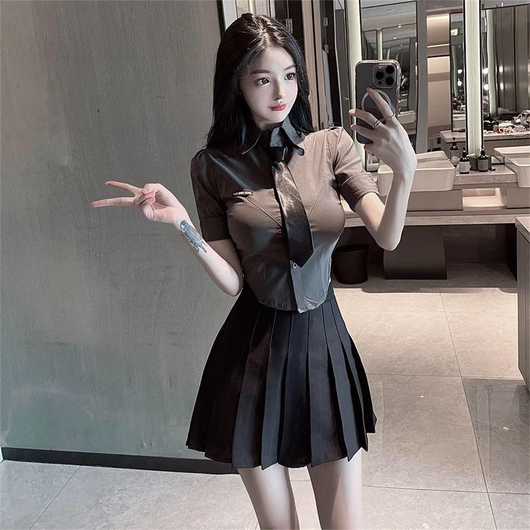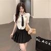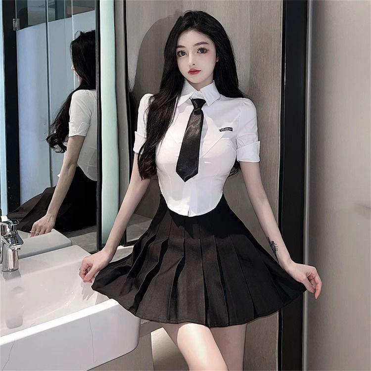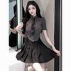 2024 nueva camisa de verano de manga corta ajustada a la cintura, falda plisada delgada de cintura alta corta, uniforme jk estilo preppy, traje