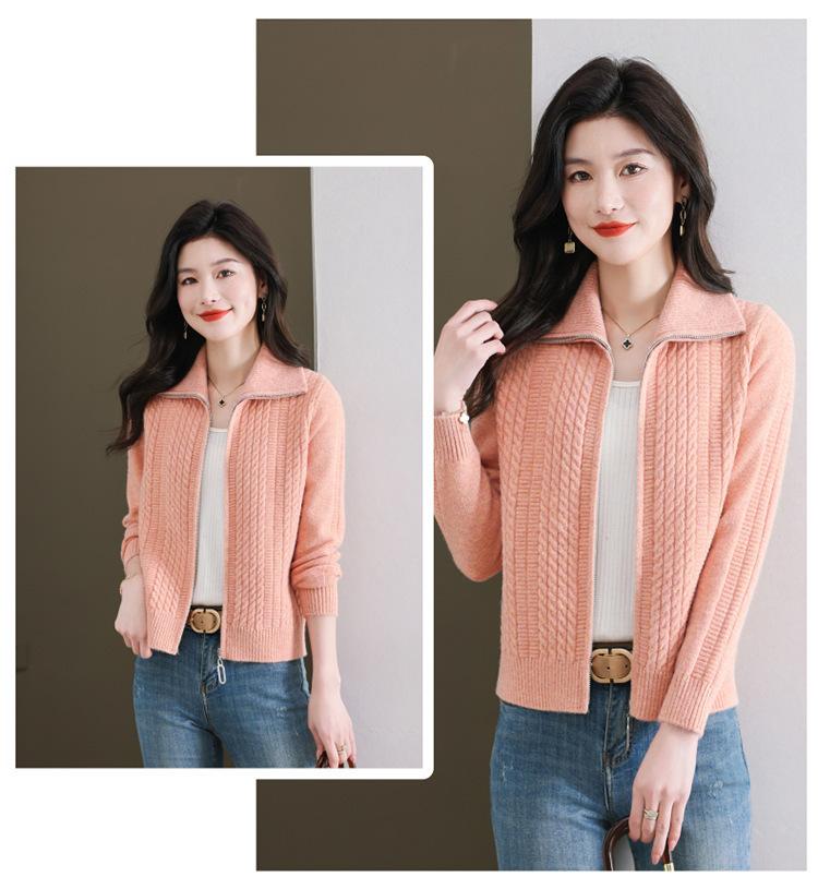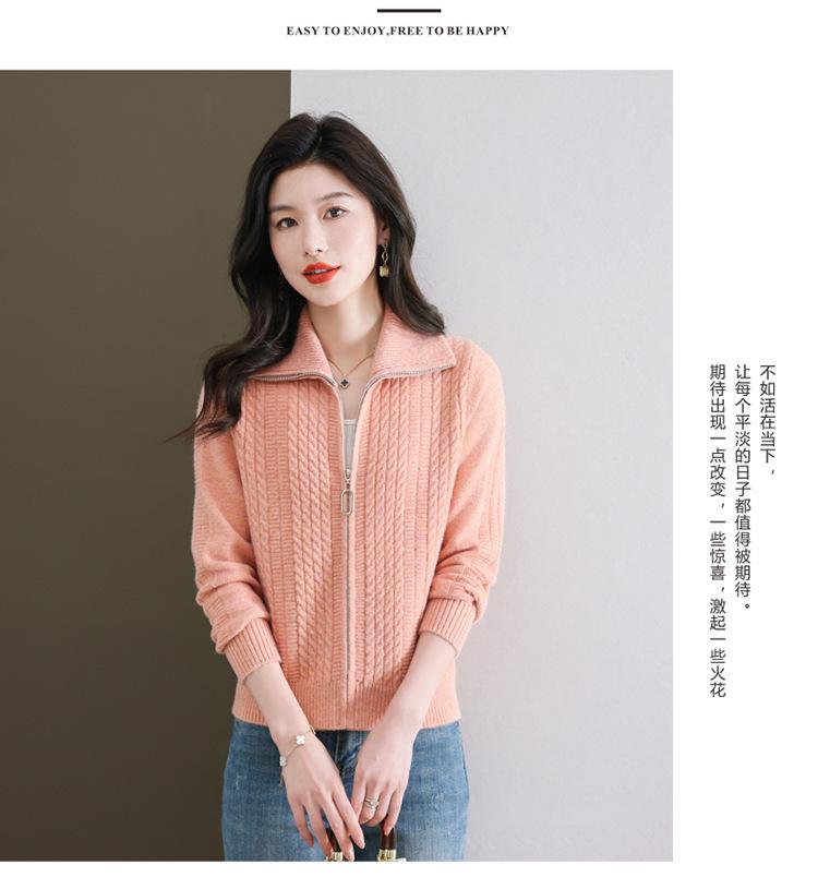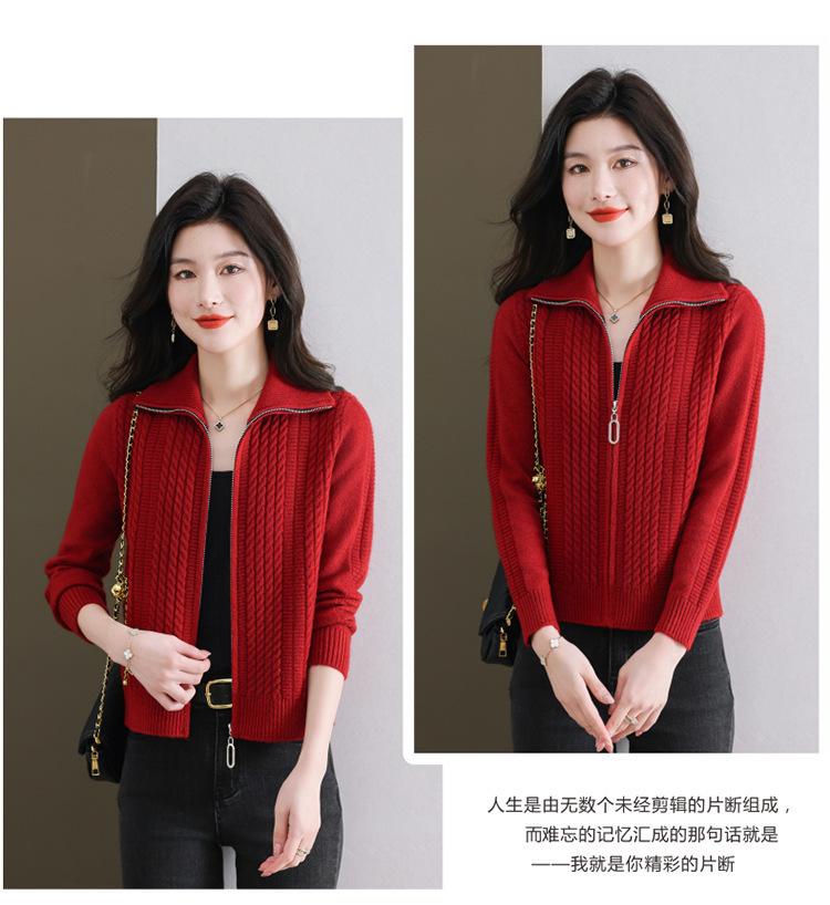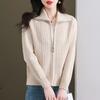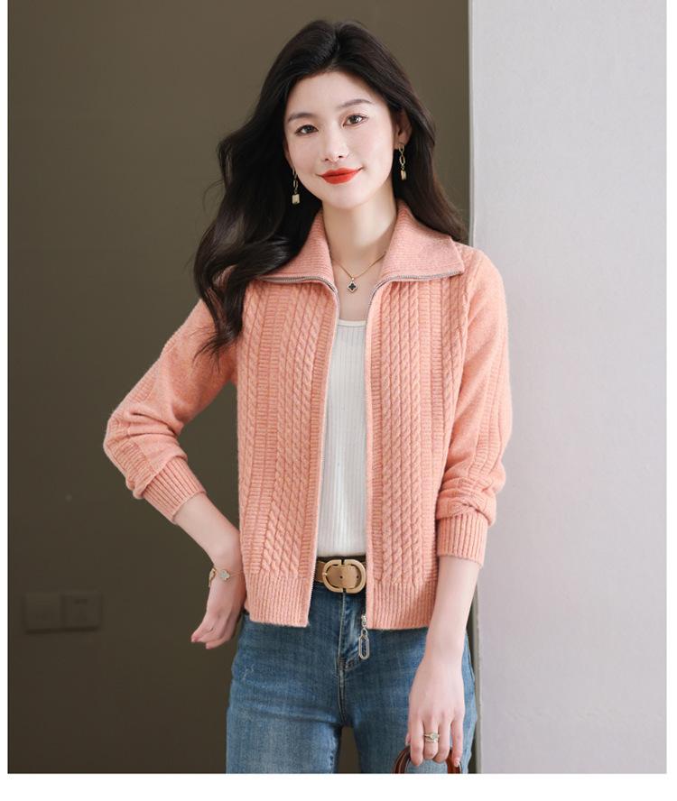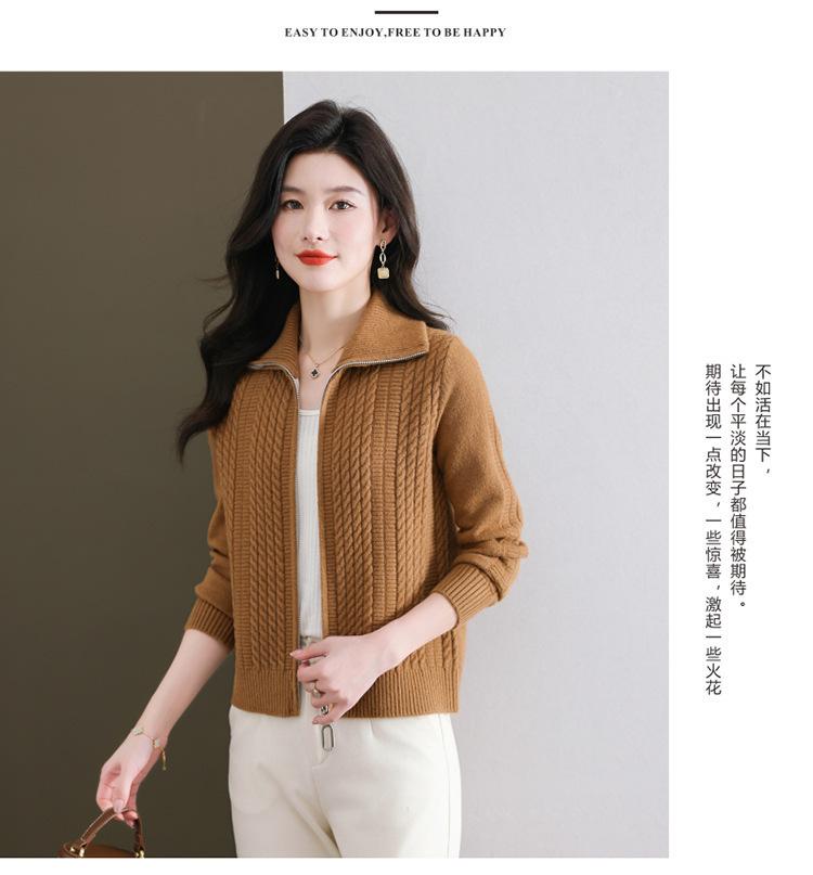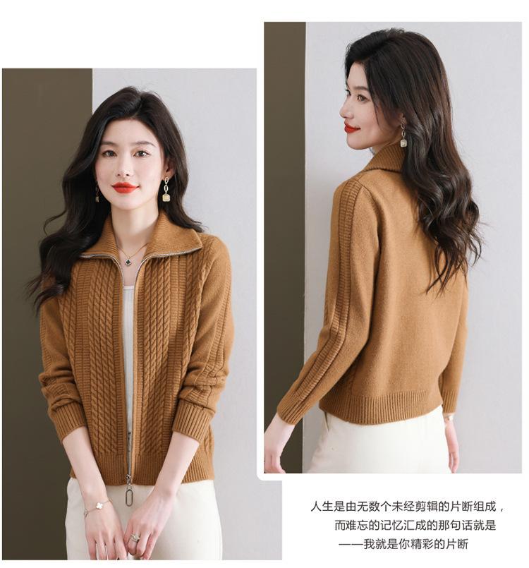 Cárdigan de Punto con Solapa y Cremallera para Mujer 2025 Otoño e Invierno Nuevo Estilo Suéter Chaqueta Dulce Fresca Pequeña