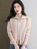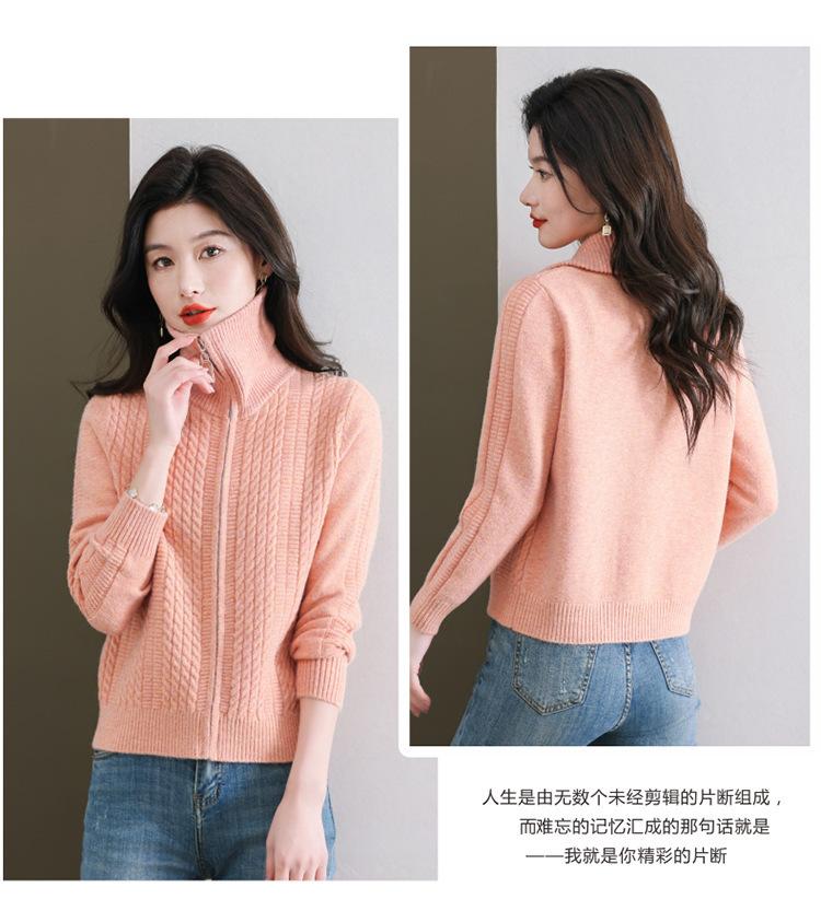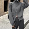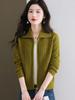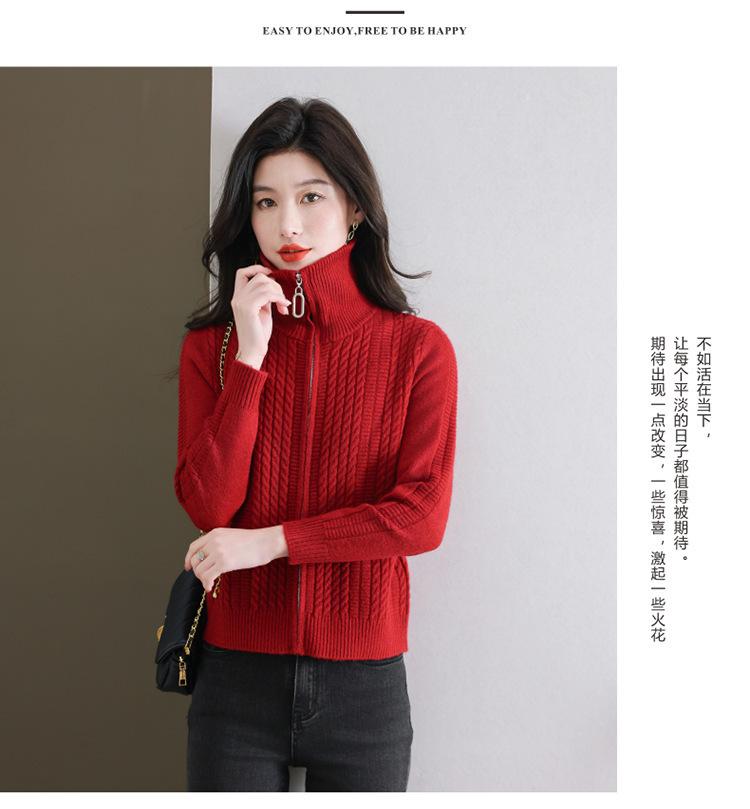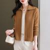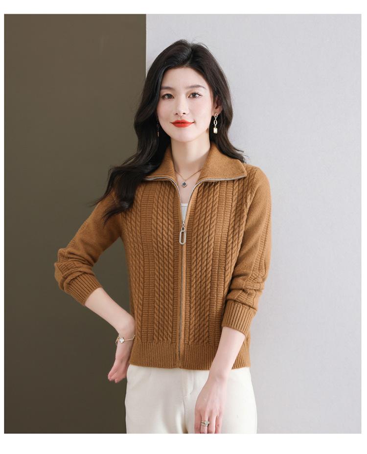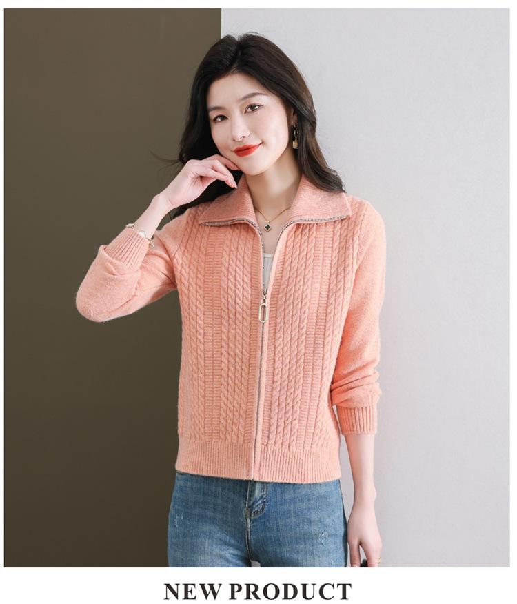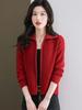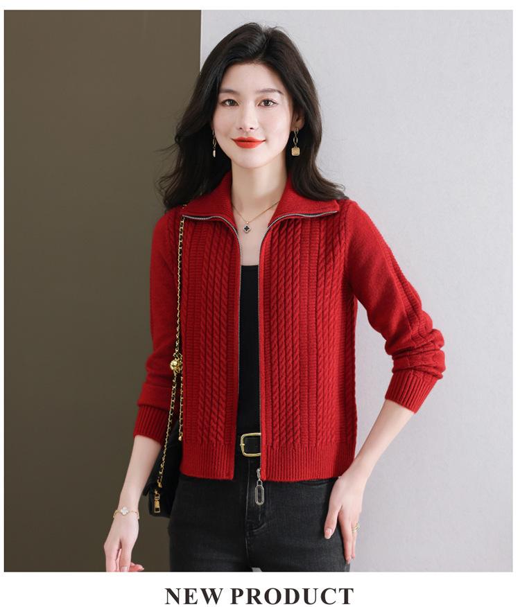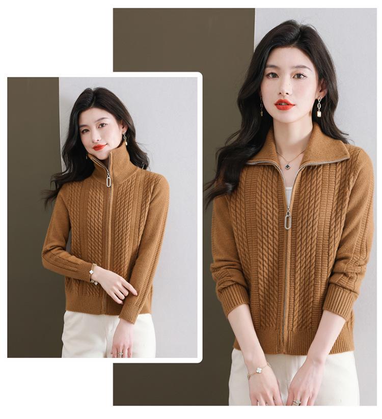 Cárdigan de Punto con Solapa y Cremallera para Mujer 2025 Otoño e Invierno Nuevo Estilo Suéter Chaqueta Dulce Fresca Pequeña