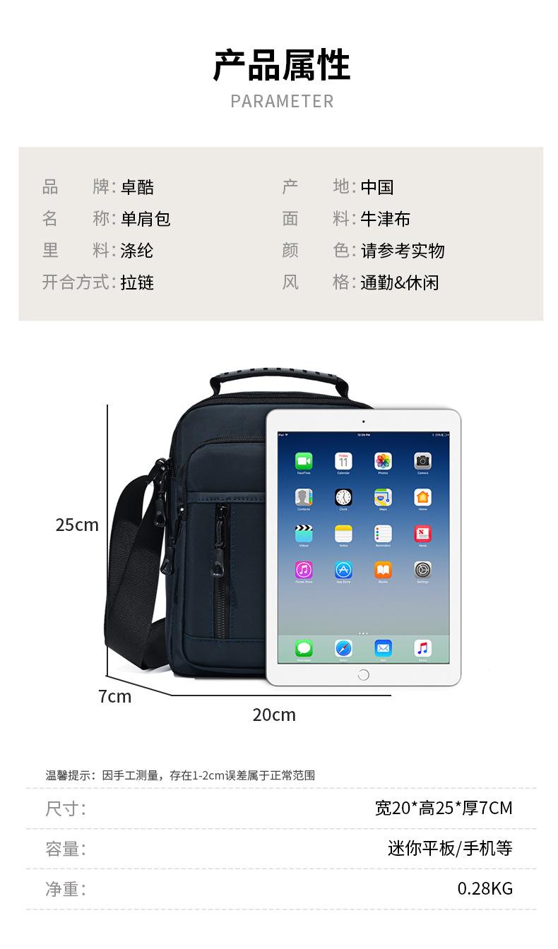 Bolso de Hombro Business Casual para Hombre Simple Tendencia Color Sólido Bandolera Gran Capacidad Bolsa de Almacenamiento para Deportes al Aire Libre