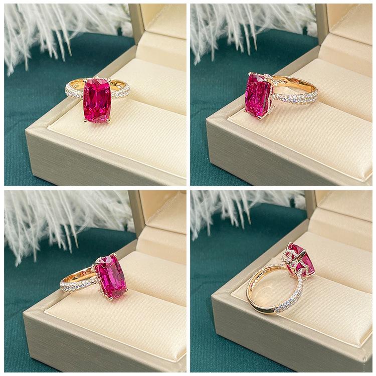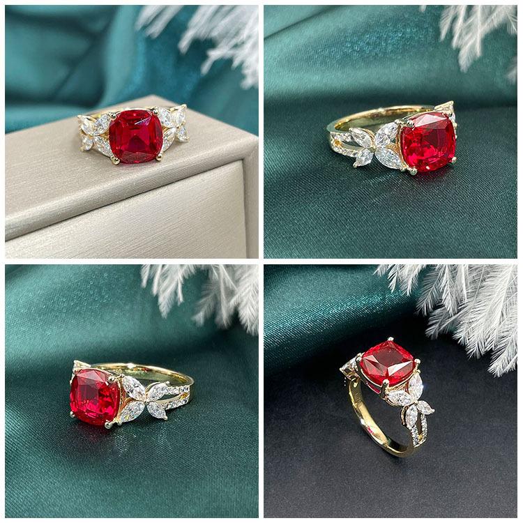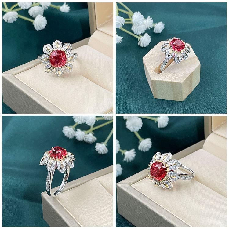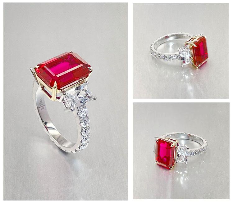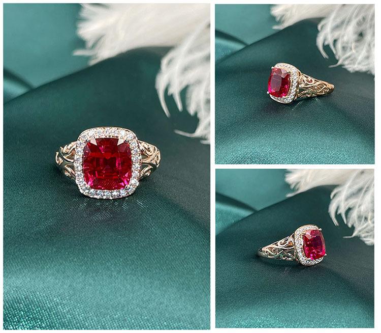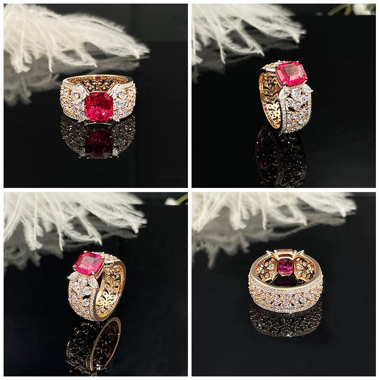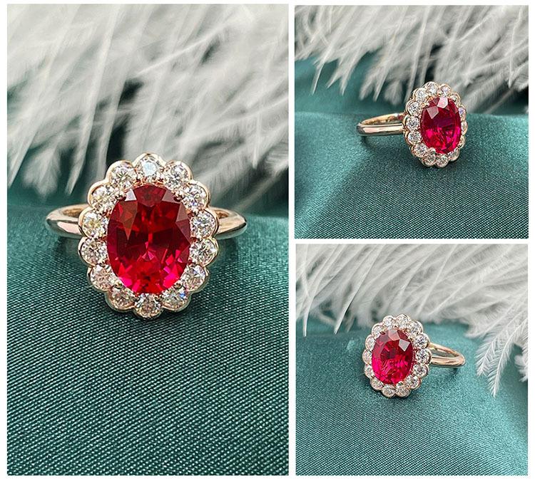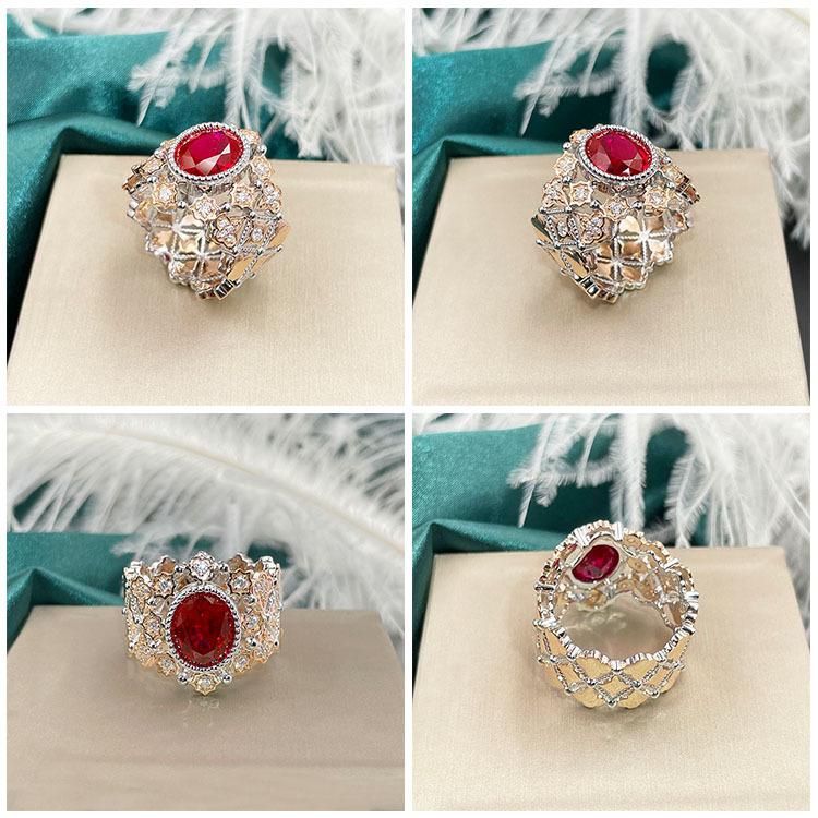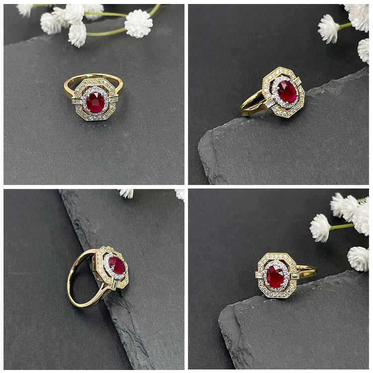 Referencia de estilo anillo de zafiro color Tilafa de rubí sintético con incrustaciones de oro de 18 quilates diseño de joyería terminada
