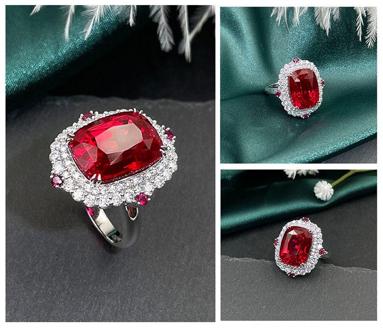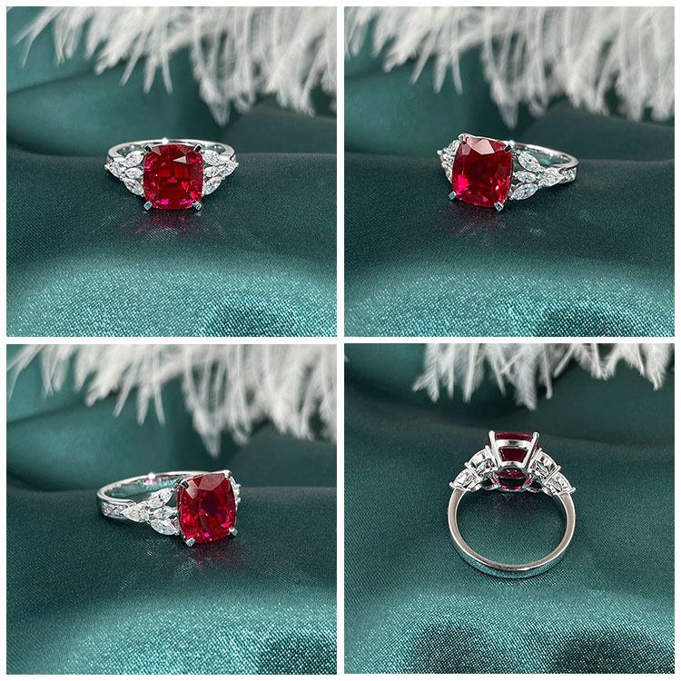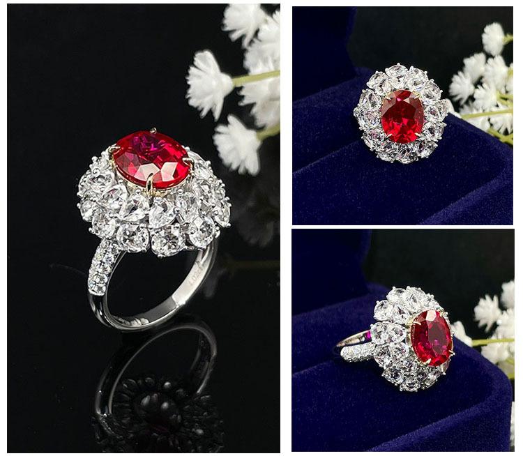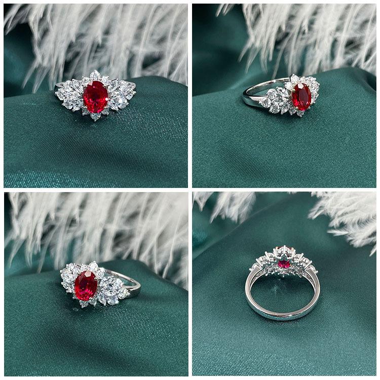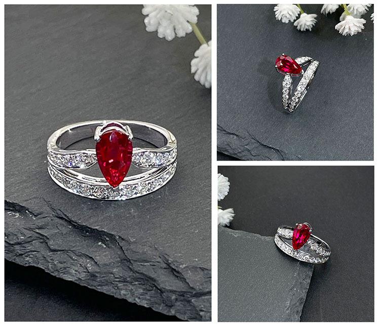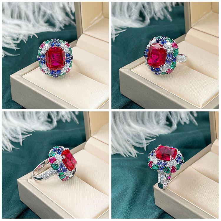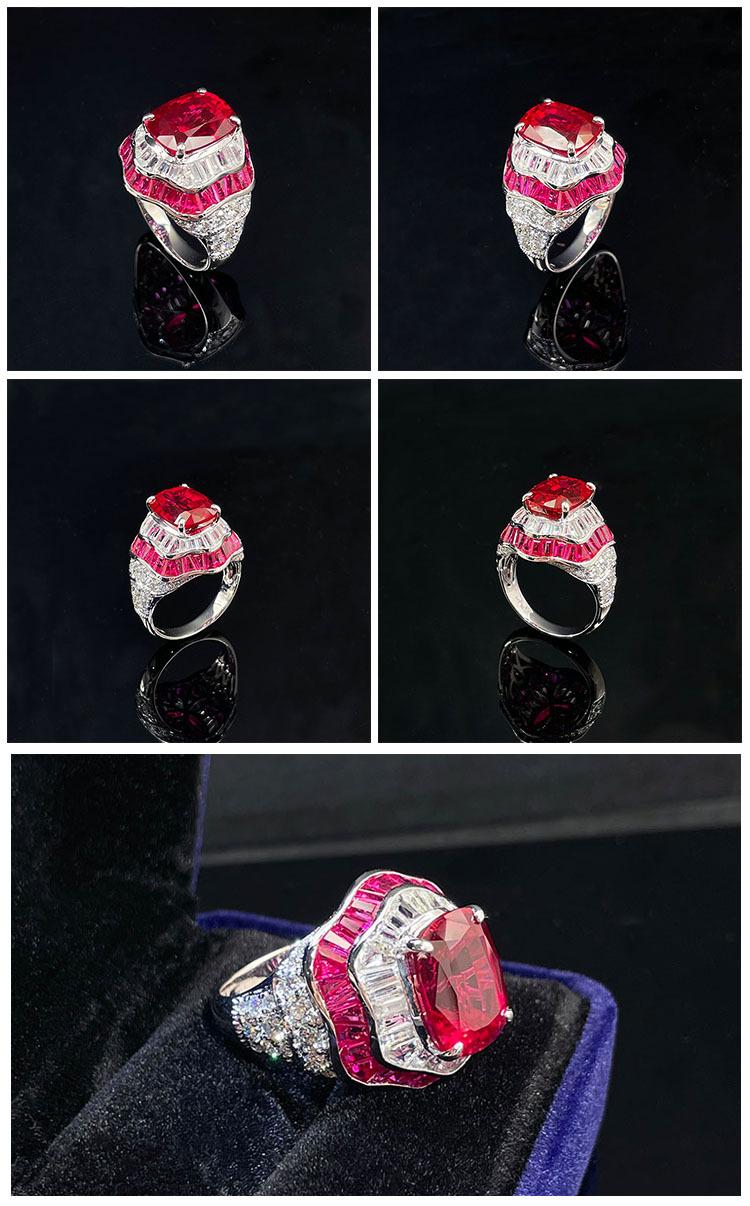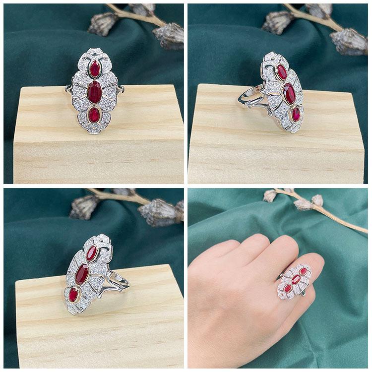 Referencia de estilo anillo de zafiro color Tilafa de rubí sintético con incrustaciones de oro de 18 quilates diseño de joyería terminada