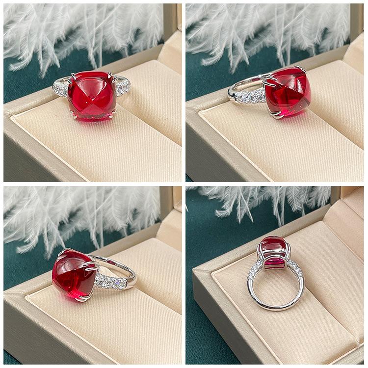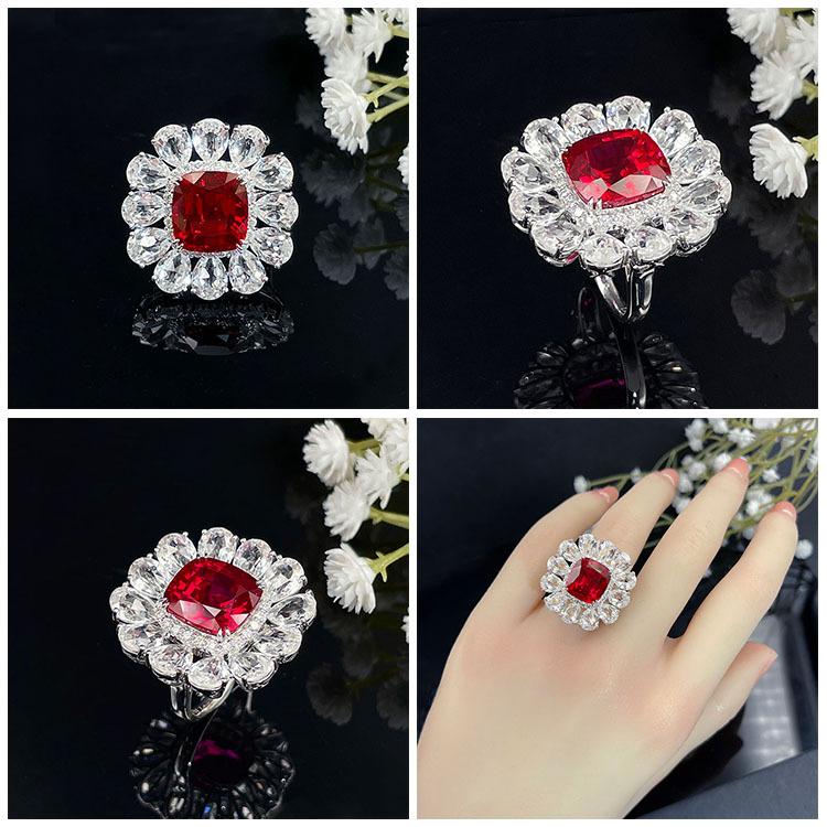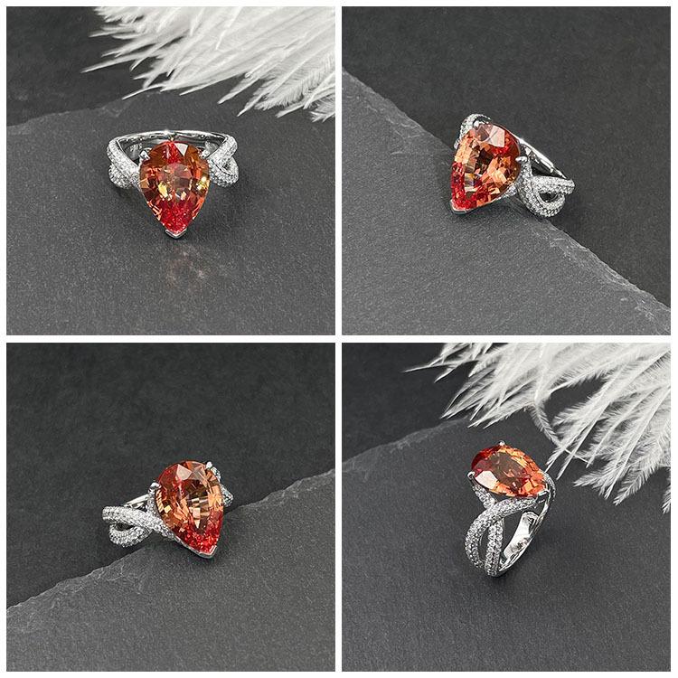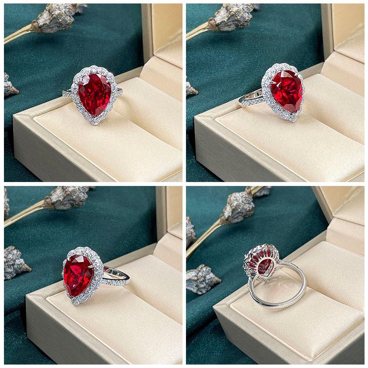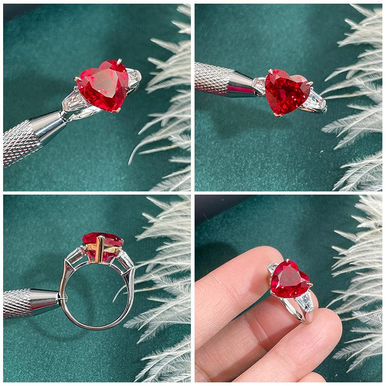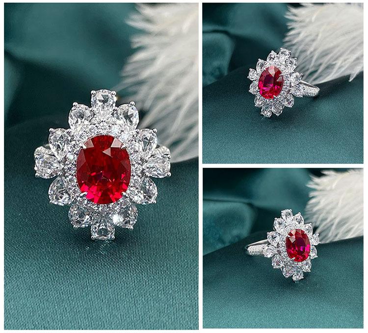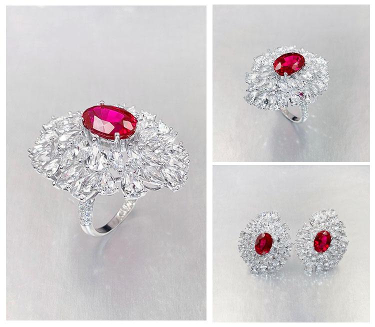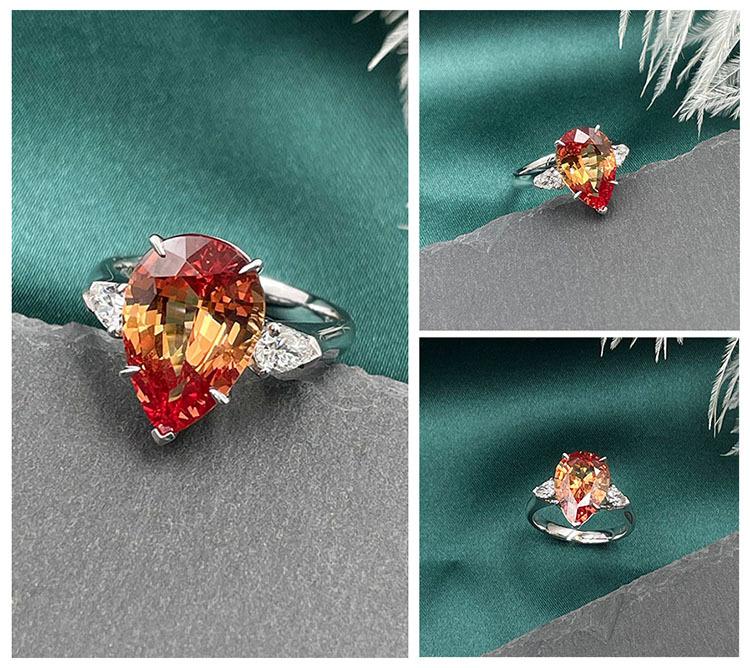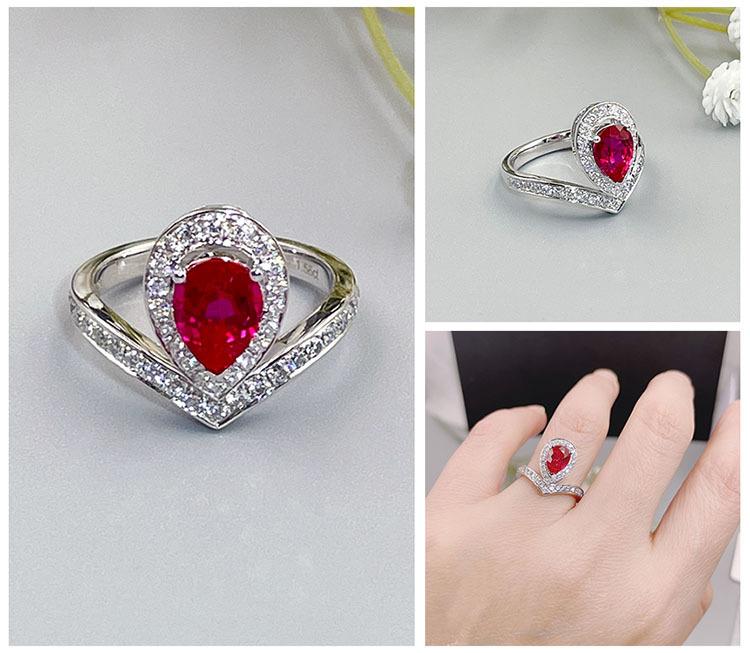 Referencia de estilo anillo de zafiro color Tilafa de rubí sintético con incrustaciones de oro de 18 quilates diseño de joyería terminada