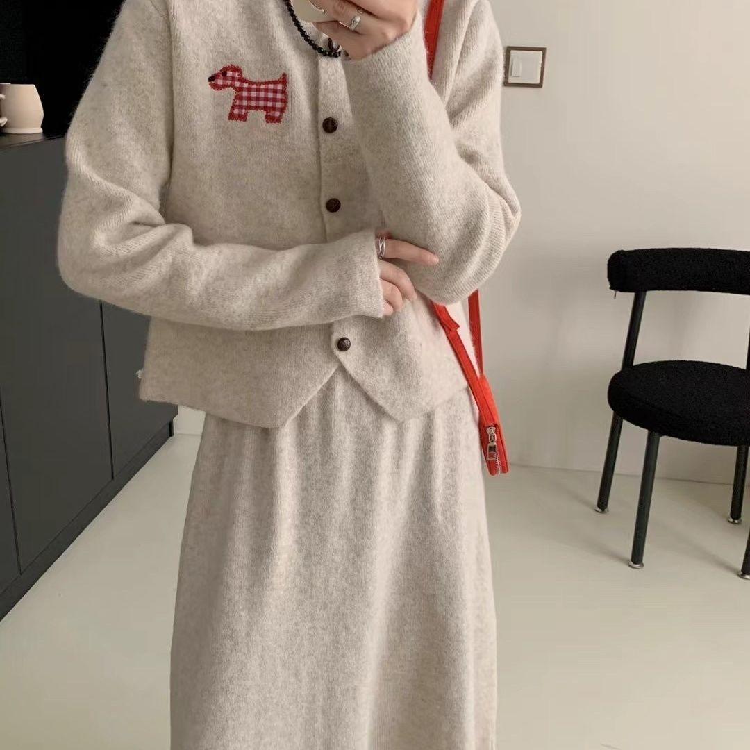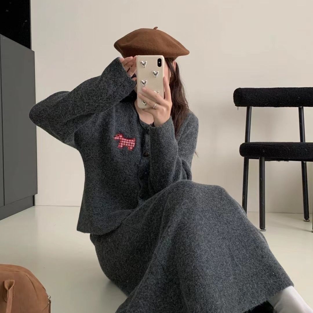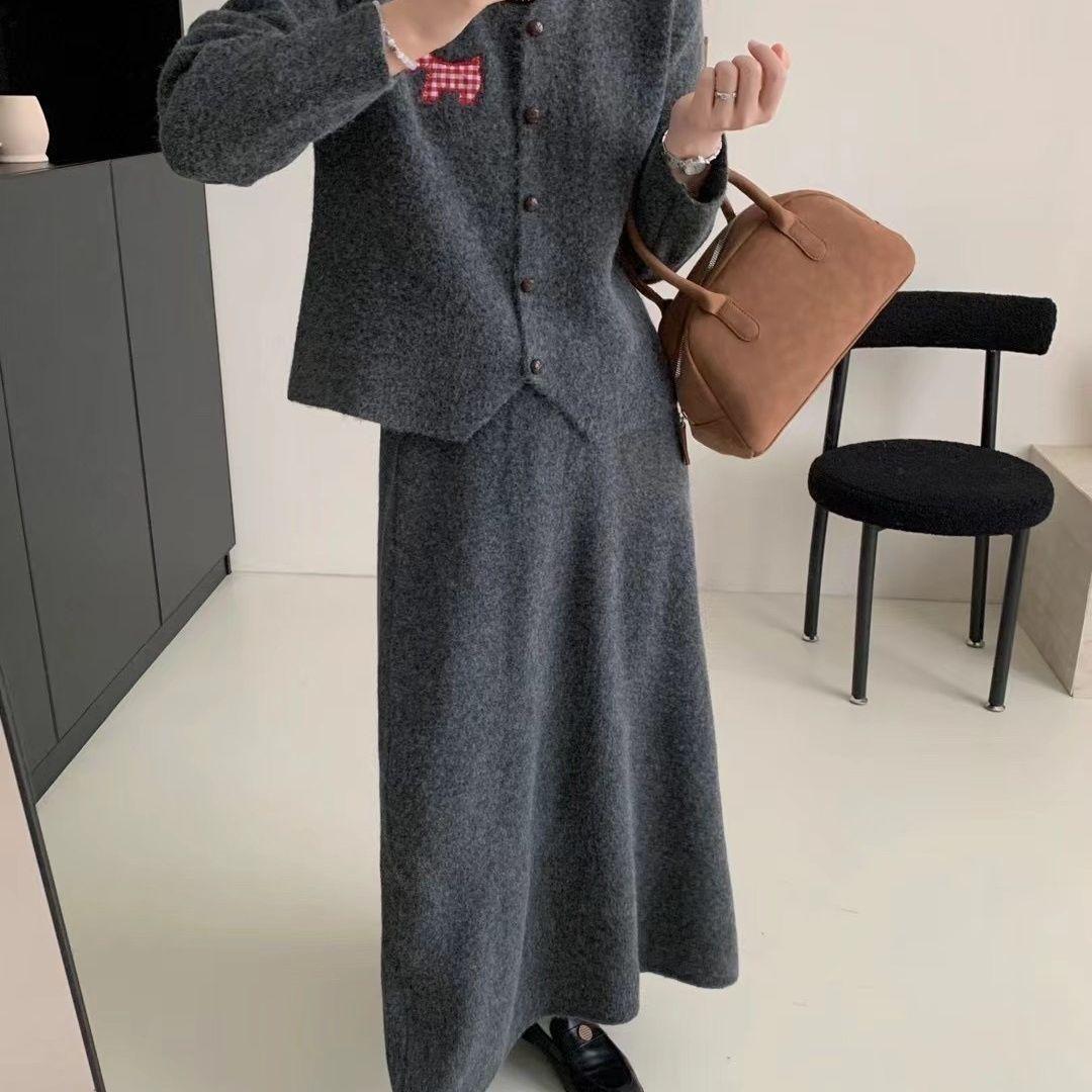 Cárdigan de Manga Larga Reductor de Edad Talla Grande + Falda Conjunto de Dos Piezas para Look Adelgazante para mm Gorditas Conjunto Combinable de Primavera # 888