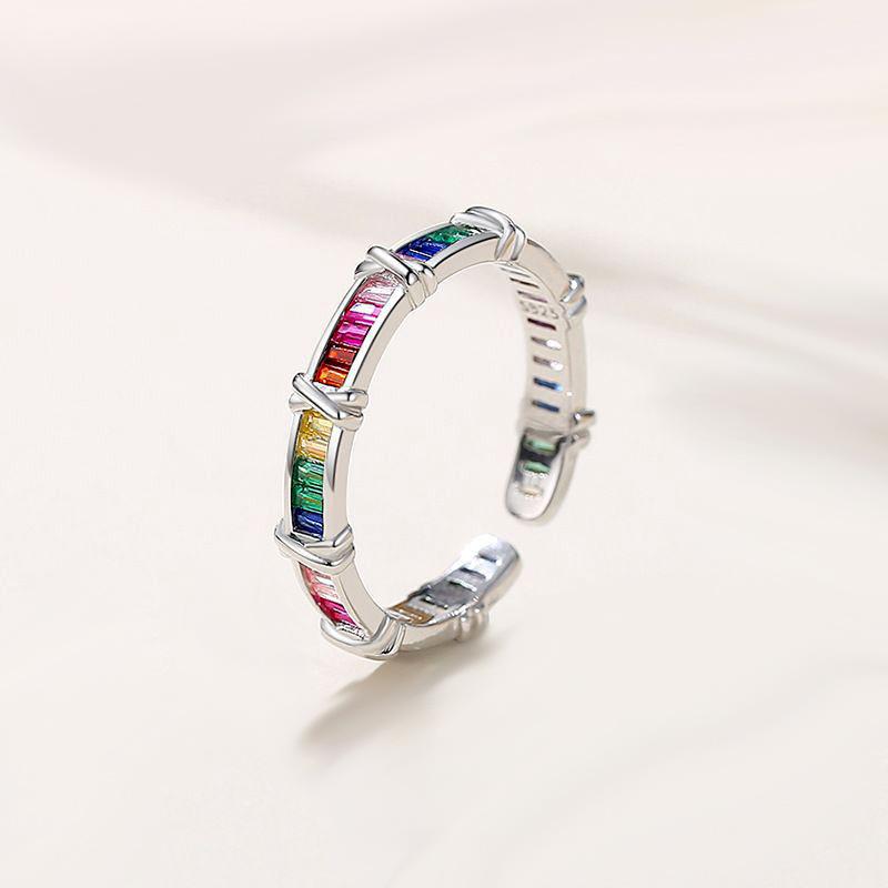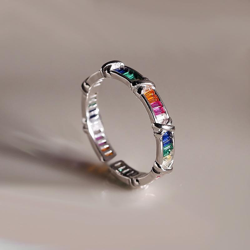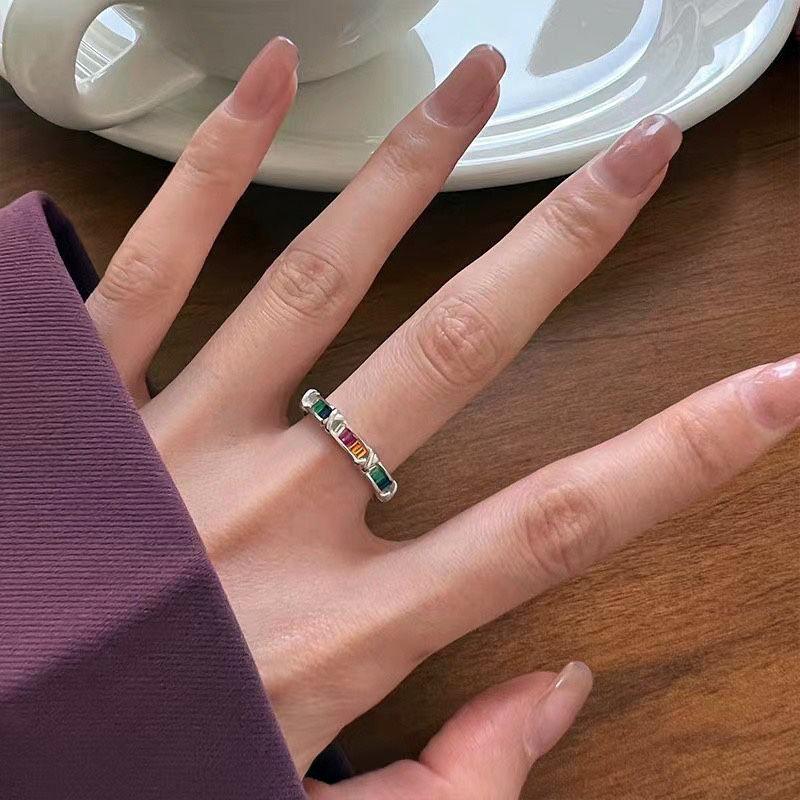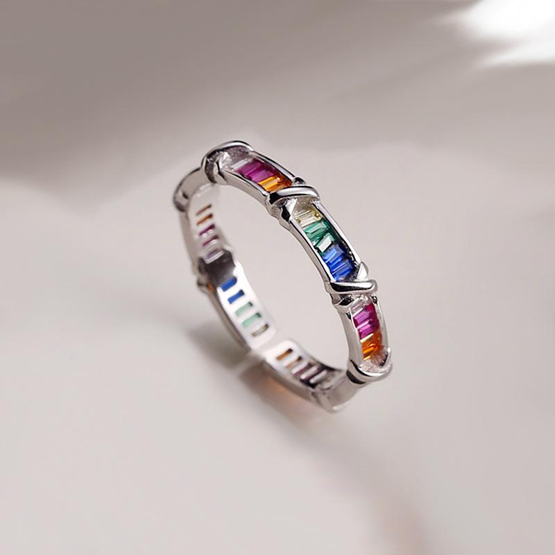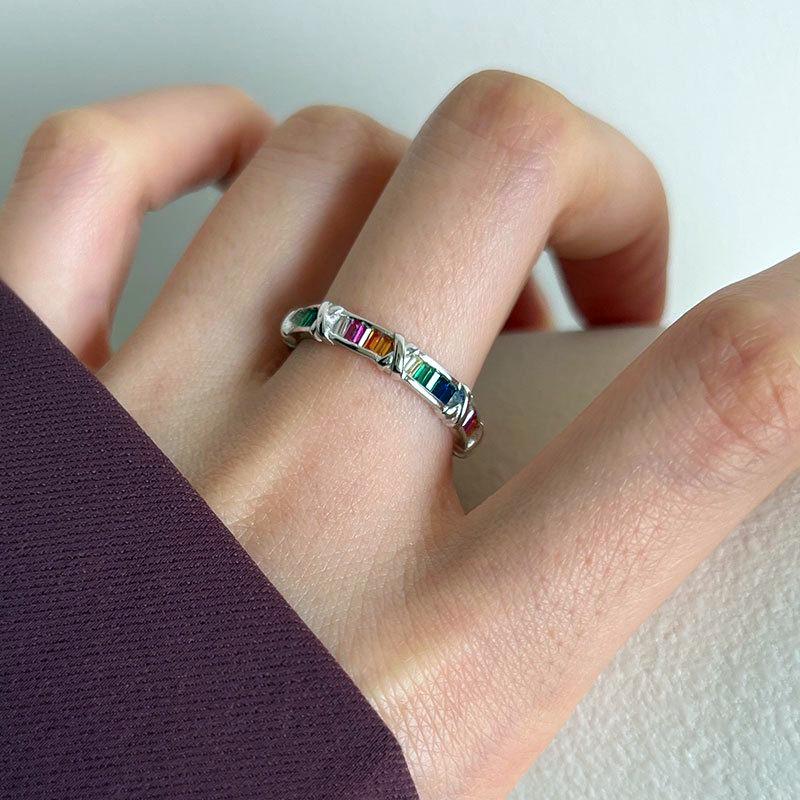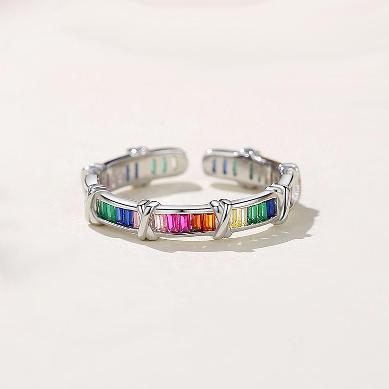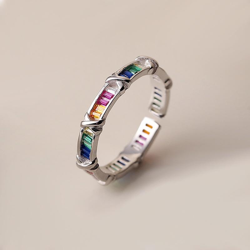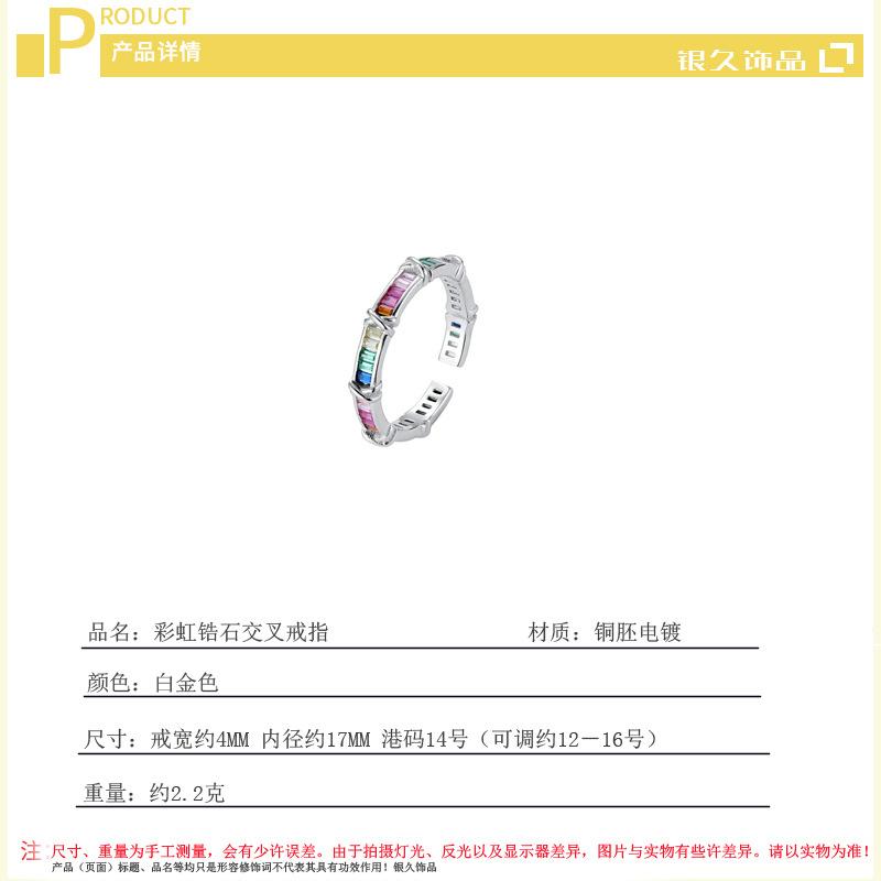 Anillo de cruz de circón arcoíris viento frío moda personalidad lujo diseño nicho exquisito anillo suministro comercio exterior
