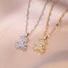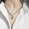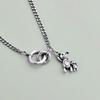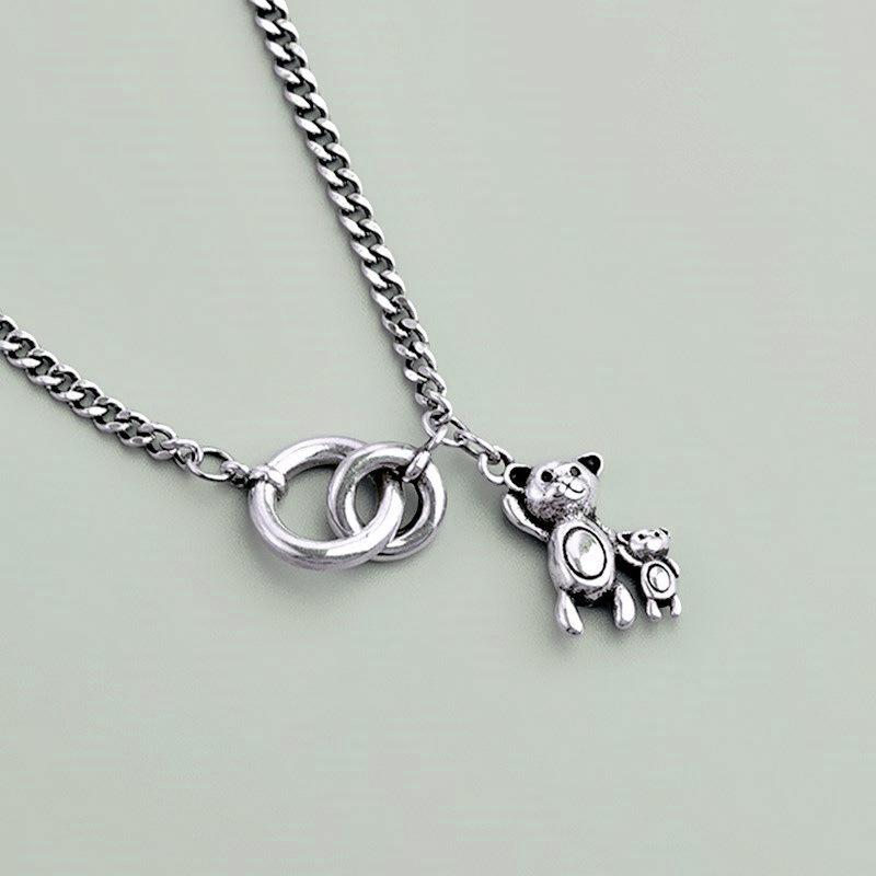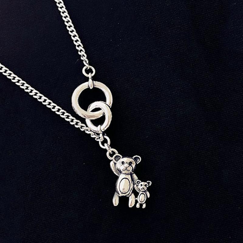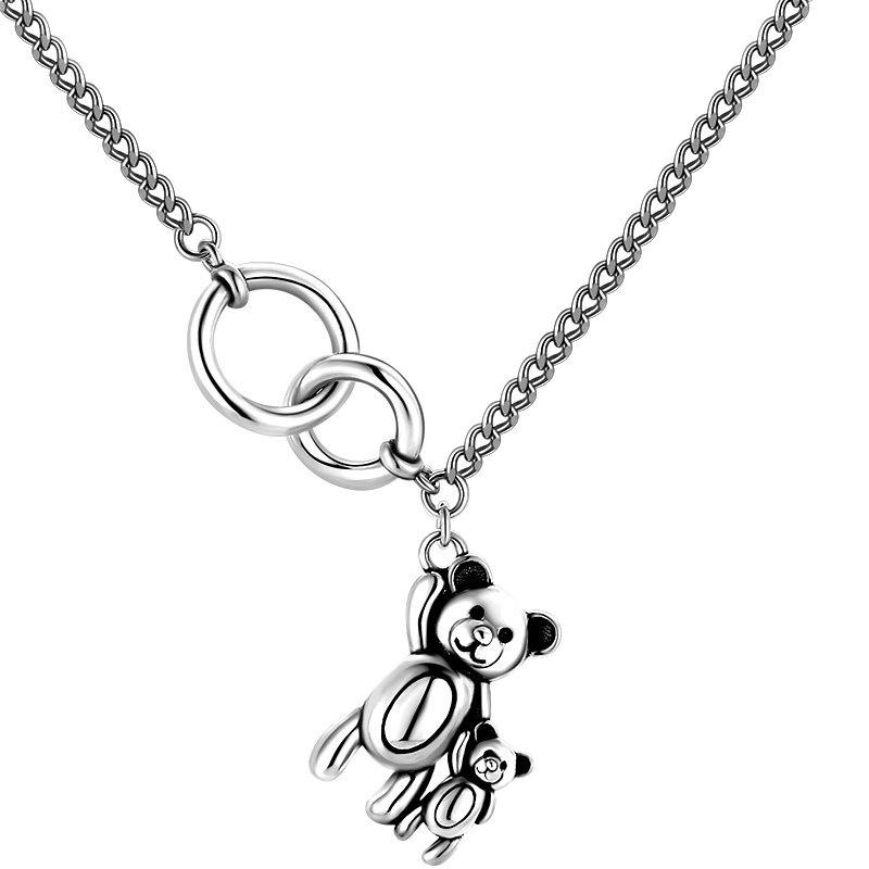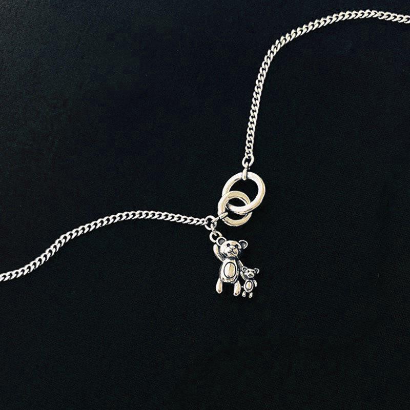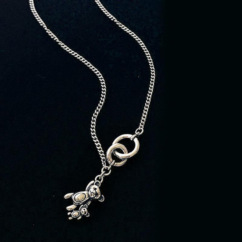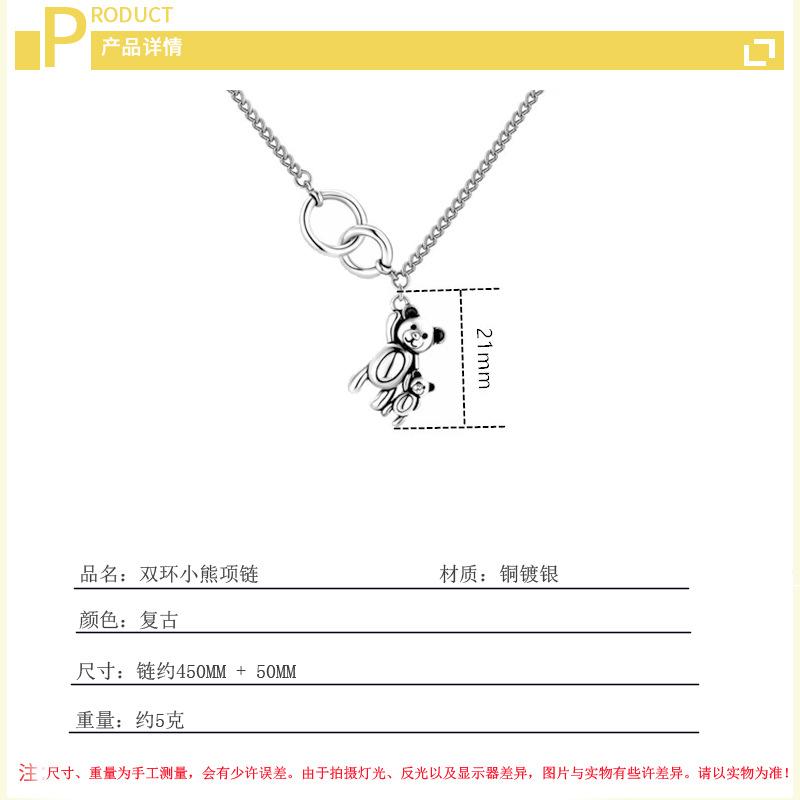 Collar de Oso de Doble Anillo Coreano Dongdaemun Chapado S925 Hip-Hop Retro Antiguo Anillo Oso Cadena Clavícula Suministro