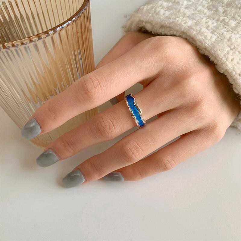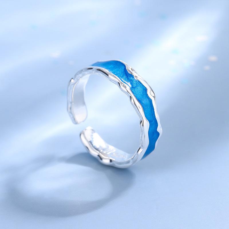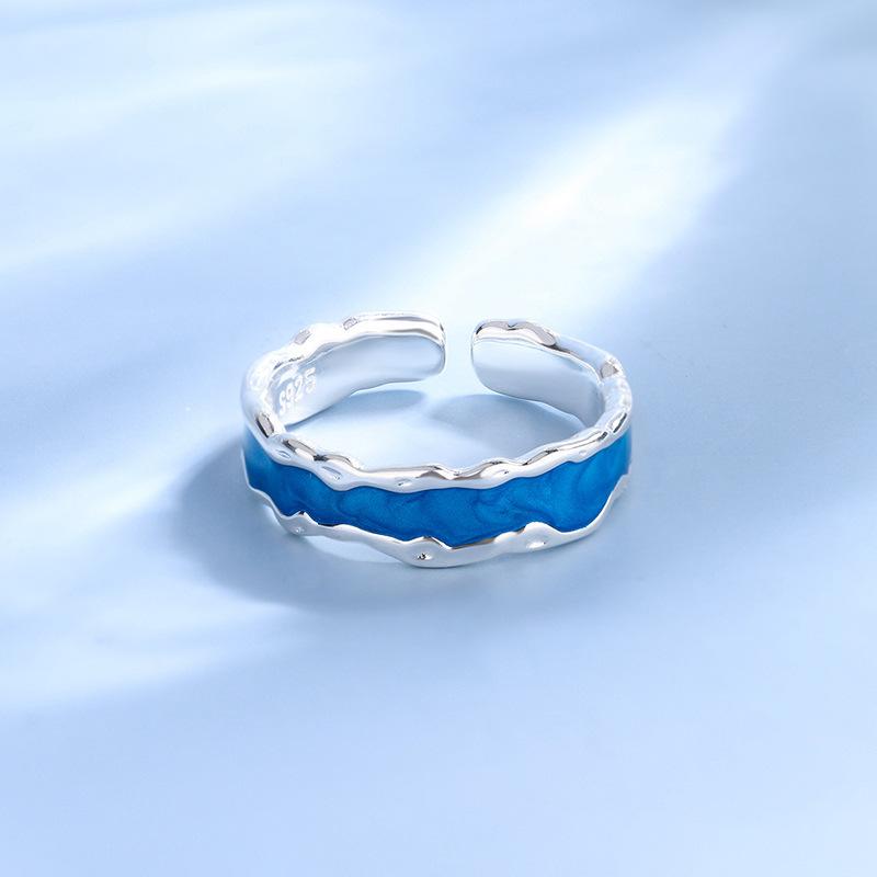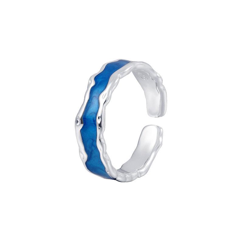 Anillo de Textura Diseño Nicho Celebridad de Internet Lujo Ligero Elegante Combinable Nuevo Anillo Abierto Irregular con Goteo de Pegamento para Mujer