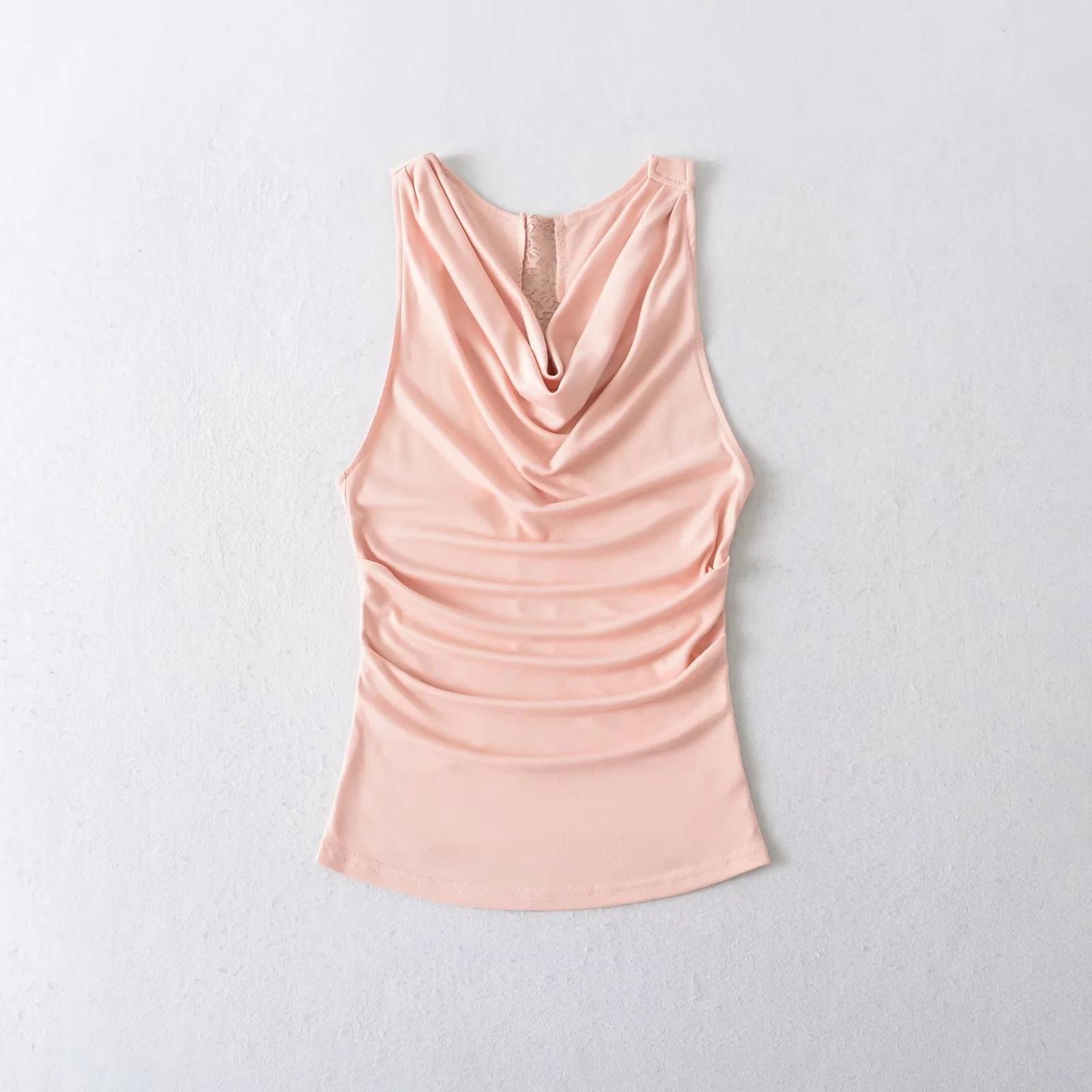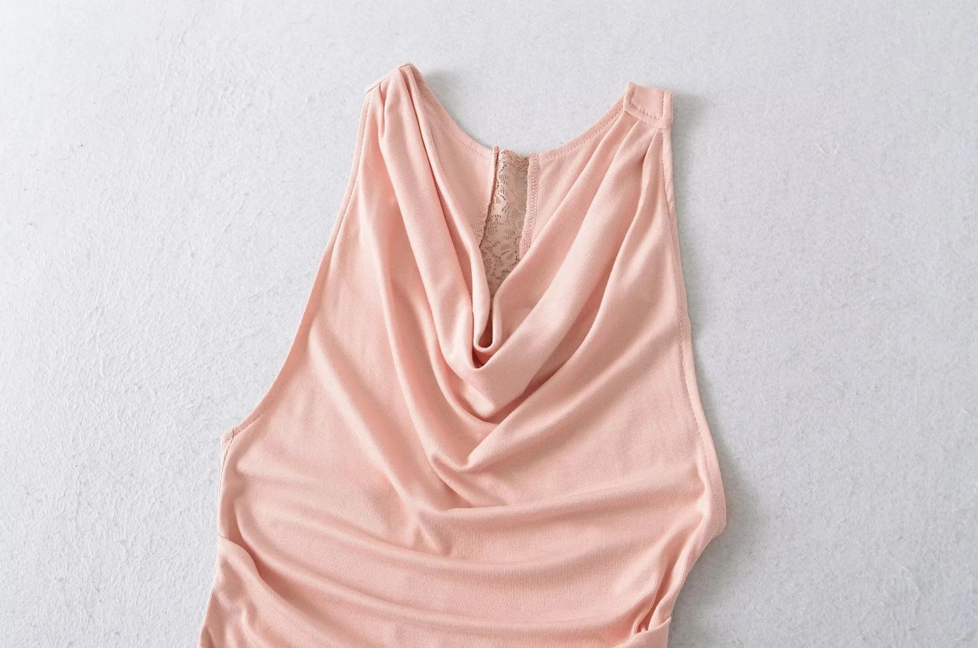 Estilo Europeo y Americano Sexy Cuello Swing Sin Espalda Sin Mangas Chaleco para Mujer 25 Verano Nuevo Slim Medio Largo Camiseta Top