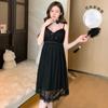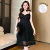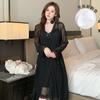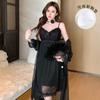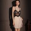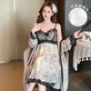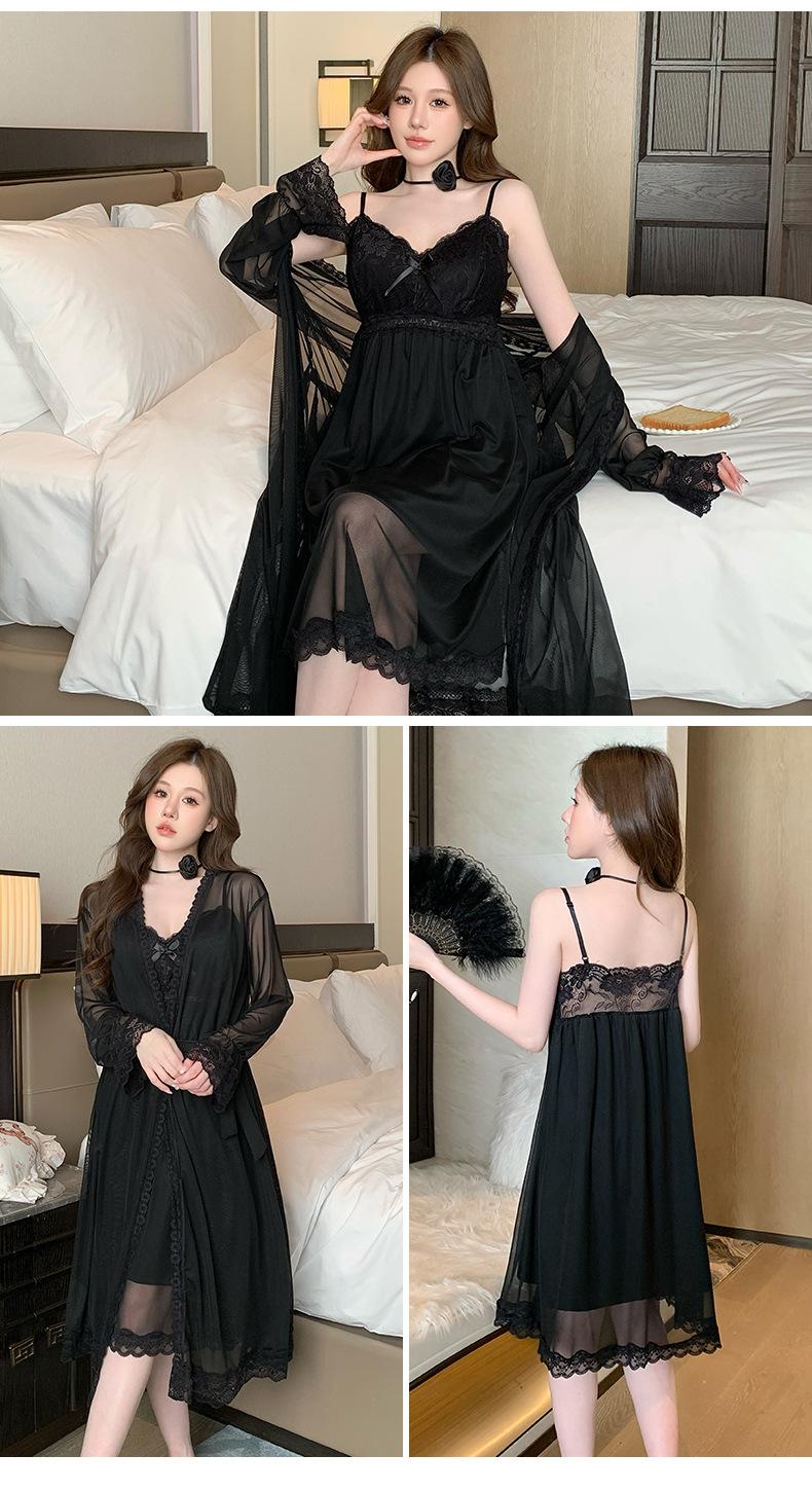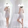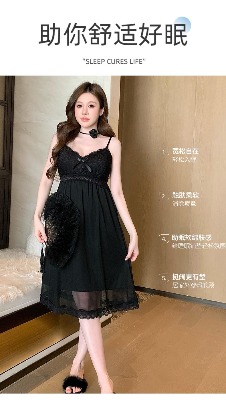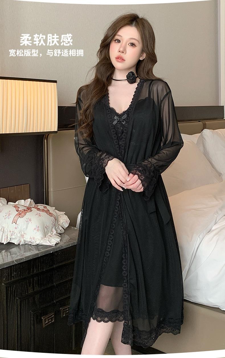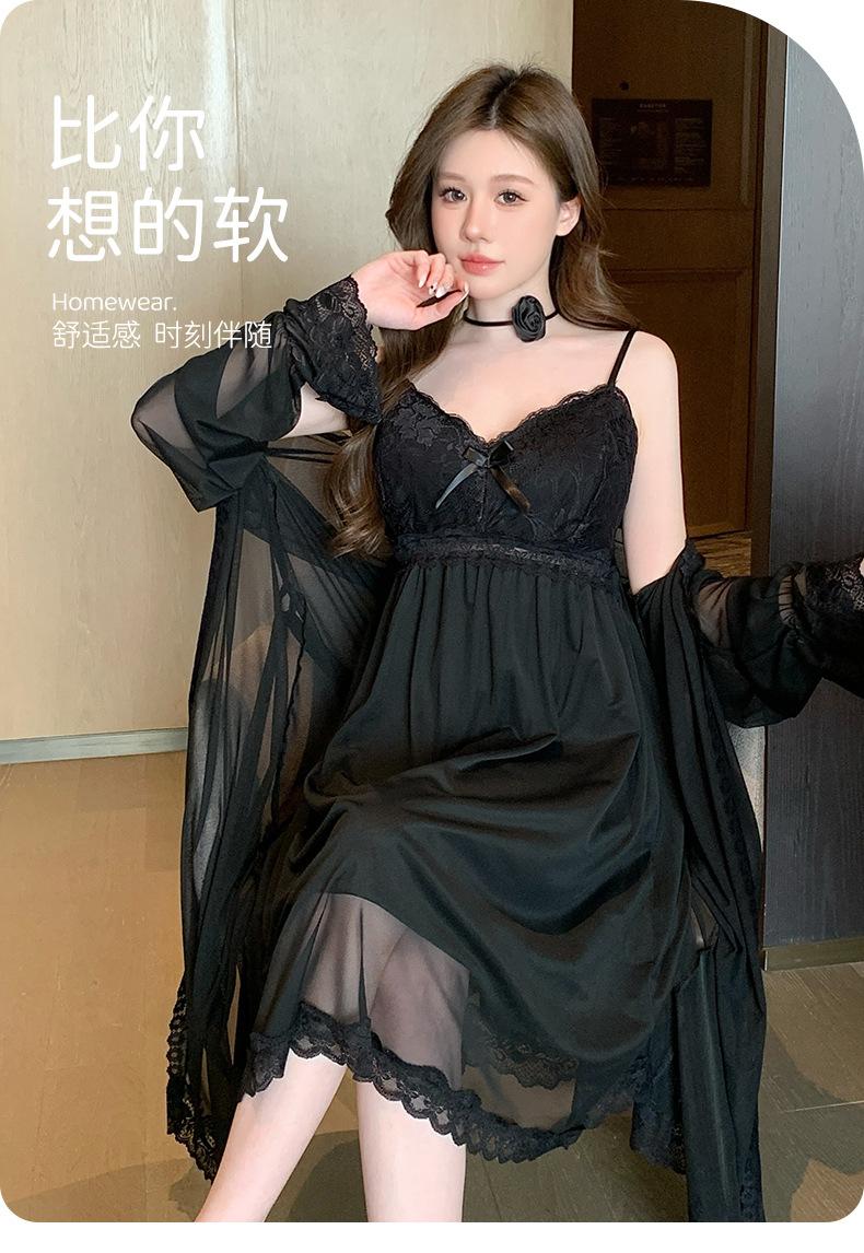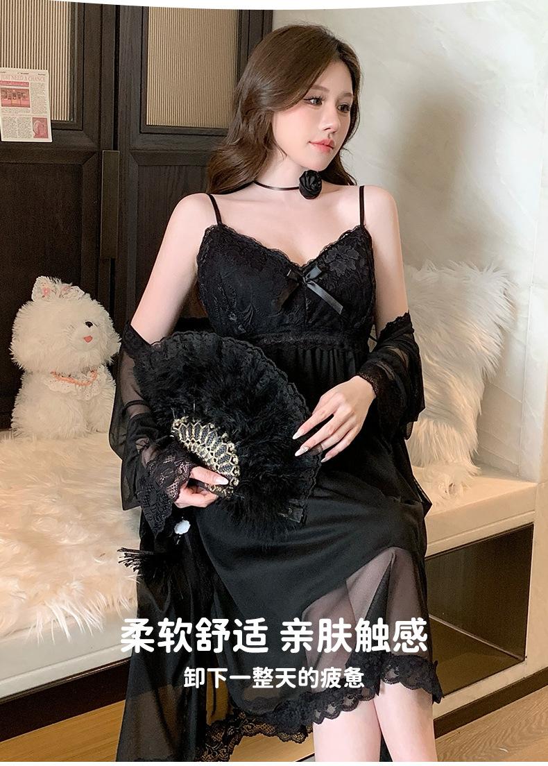 Camisón de Malla de Largo Medio Sexy Puro Deseo con Almohadilla en el Pecho Pijama Fresco de Primavera y Verano Conjunto de Dos Piezas
