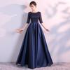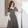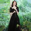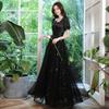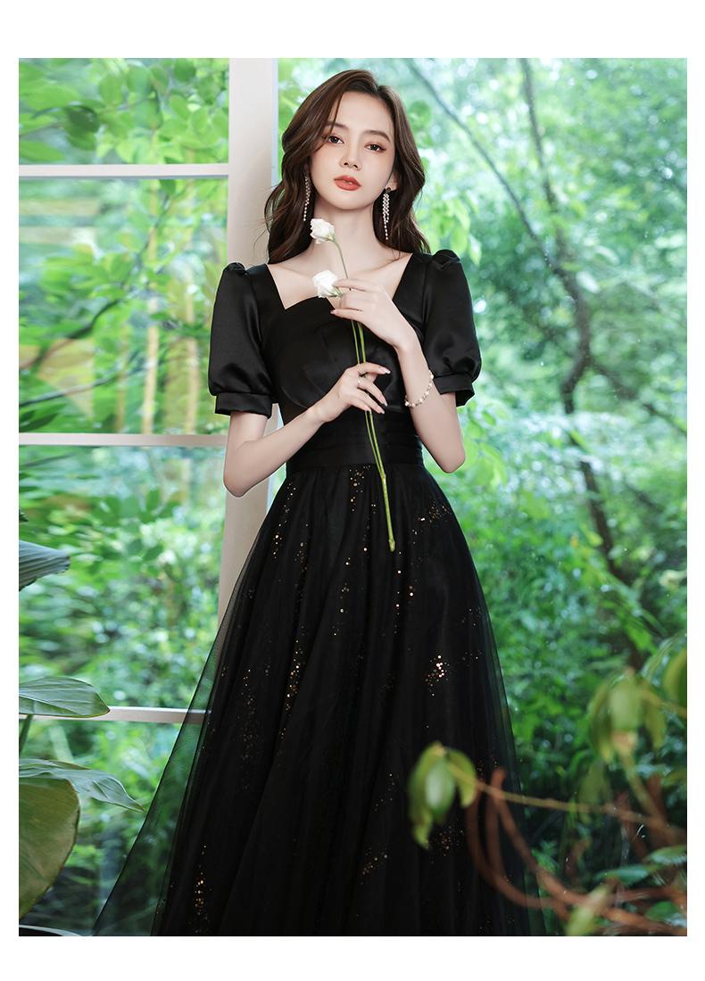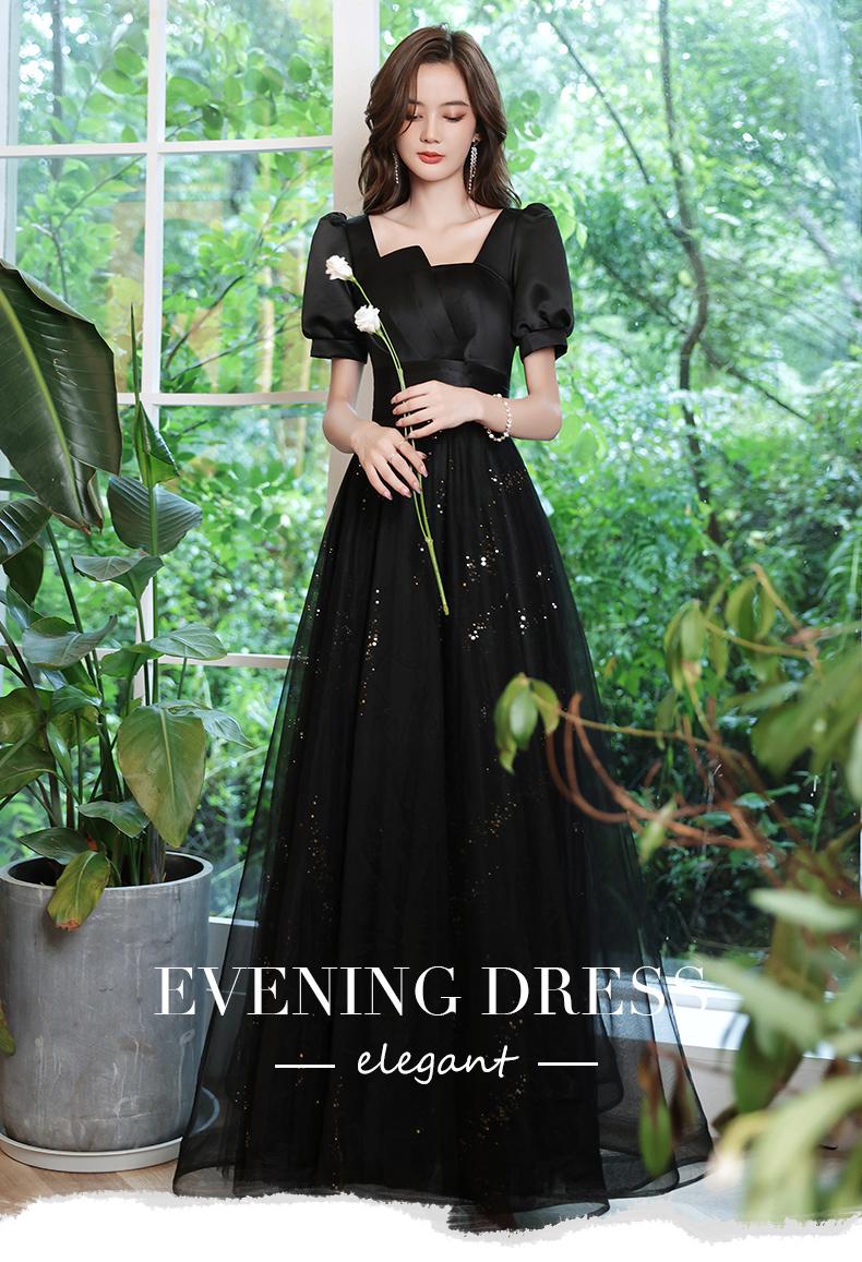 Vestido de Noche Negro para Banquete 2025, Corte Ajustado, Elegante, Estilo Celebridad de Pasarela, Soñador Vestido Largo con Cola Larga
