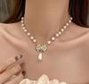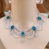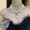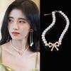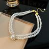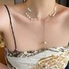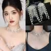Collar de perlas con borla de gota de agua, doble capa elegante, cadena para clavícula, collar nicho de lujo ligero, accesorios para vestido de novia para mujer, otoño e invierno