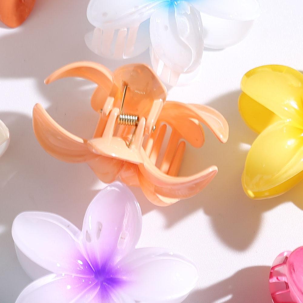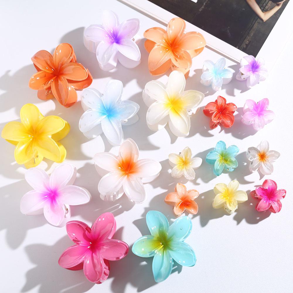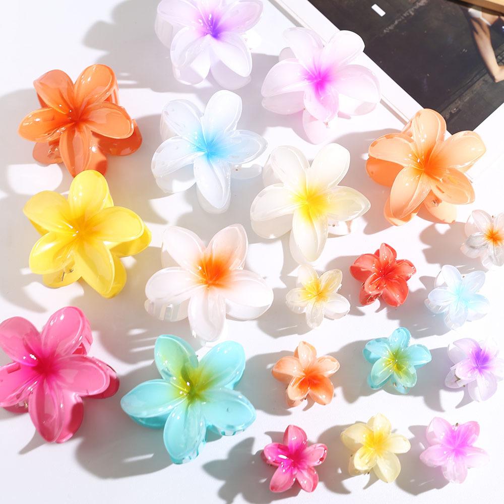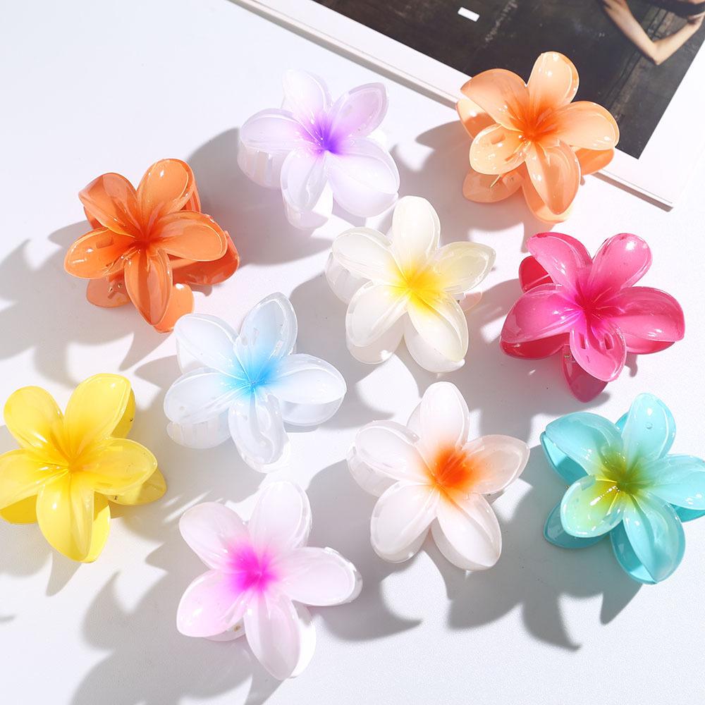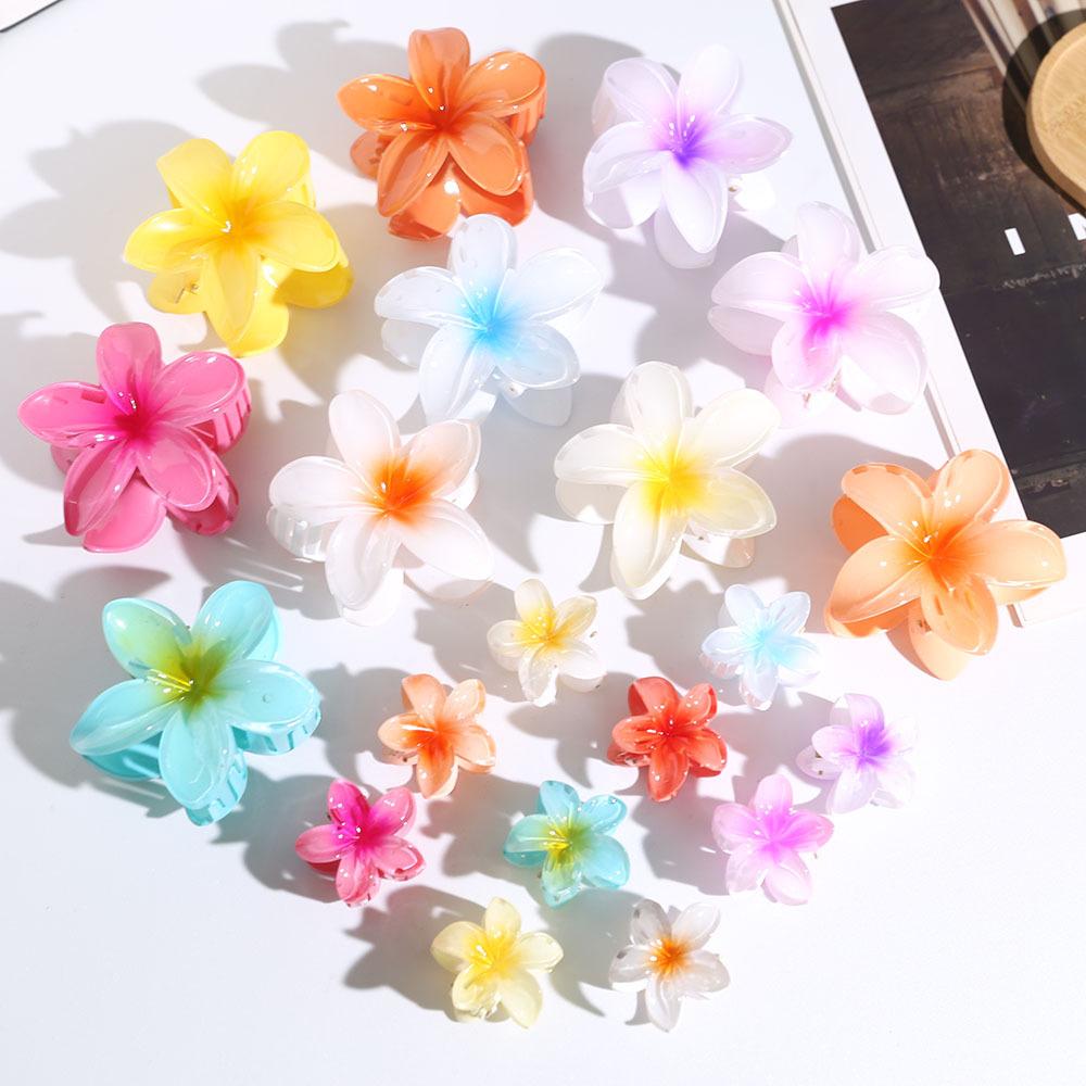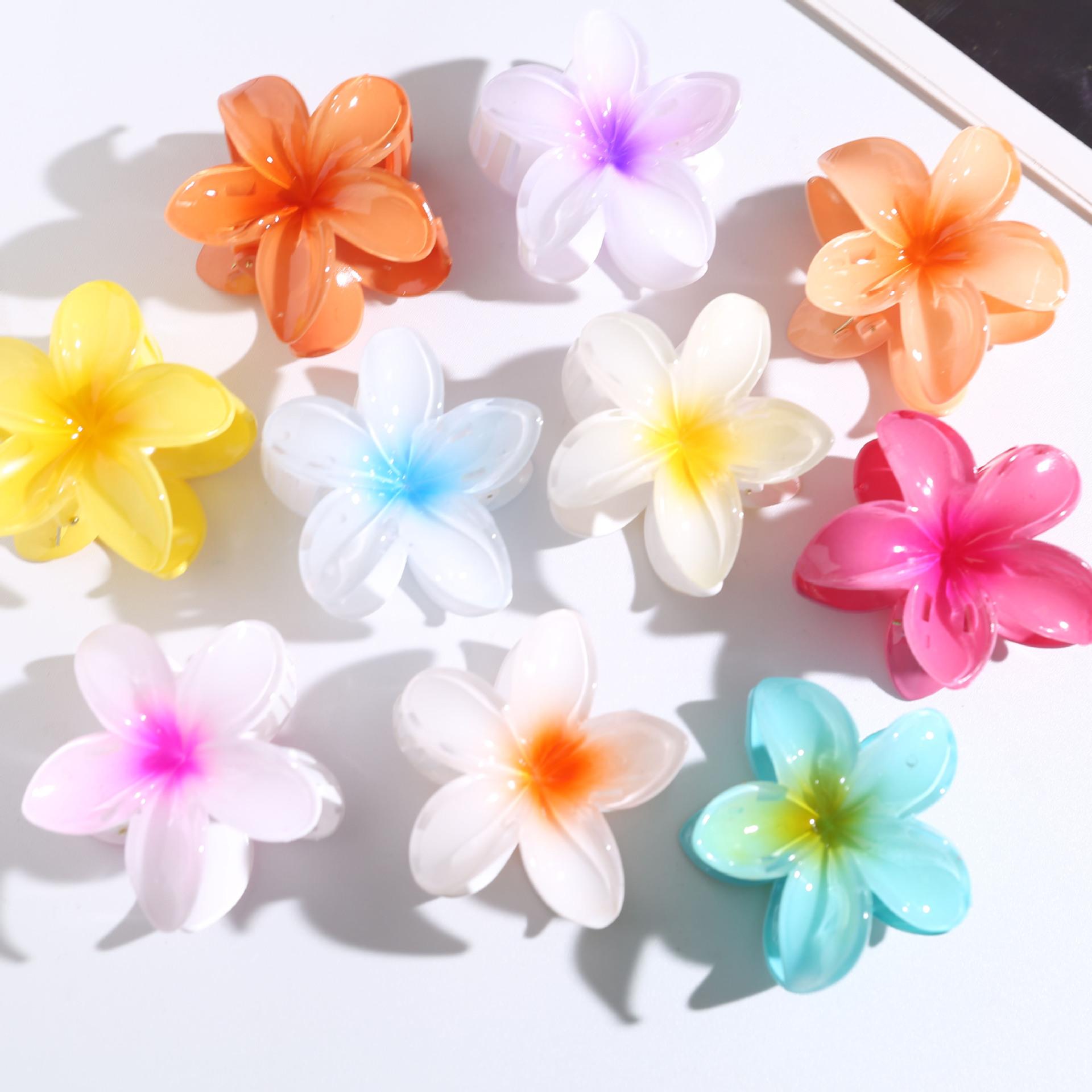 Horquilla de Plumeria Colorida Transfronteriza, Horquilla de Flor Degradada de Alta Gama, Adorno para el Cabello con Pinza de Tiburón para Cola de Caballo en la Parte Posterior de la Cabeza