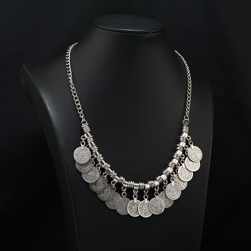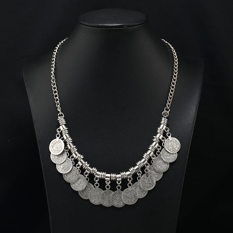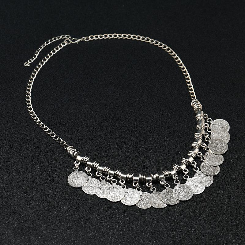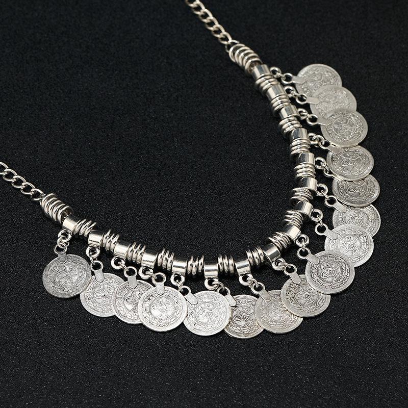 Joyería europea y americana estilo étnico retro collar de moneda de plata cadena clavicular colgante de borla vacaciones bohemio moda femenina