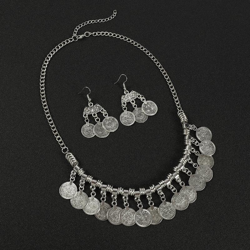 European and American coin tassel necklace, European and American coin tassel earrings, European and American ...