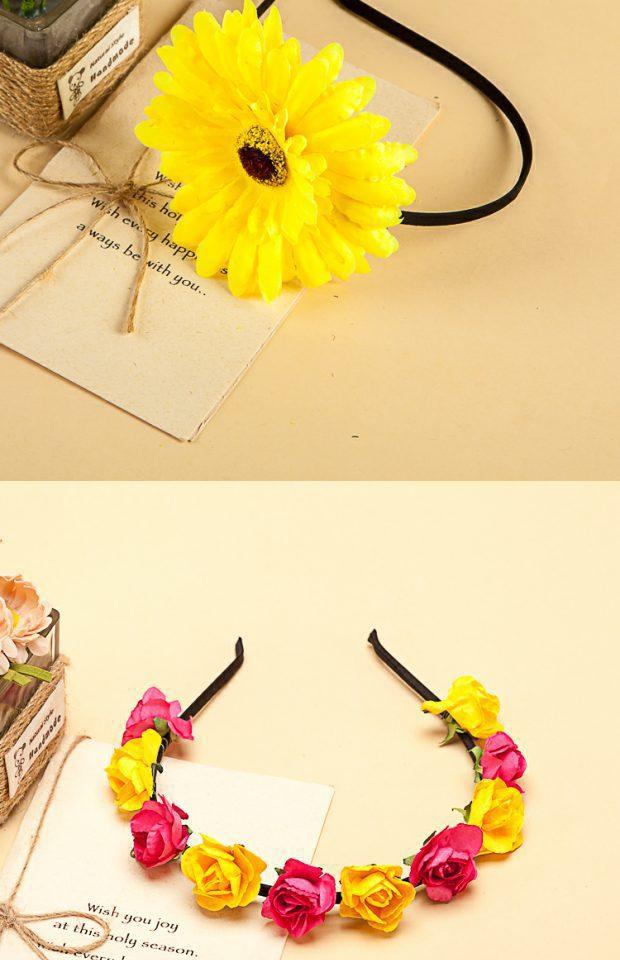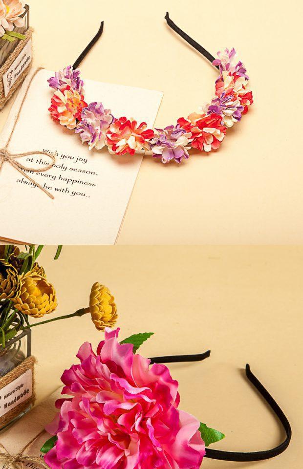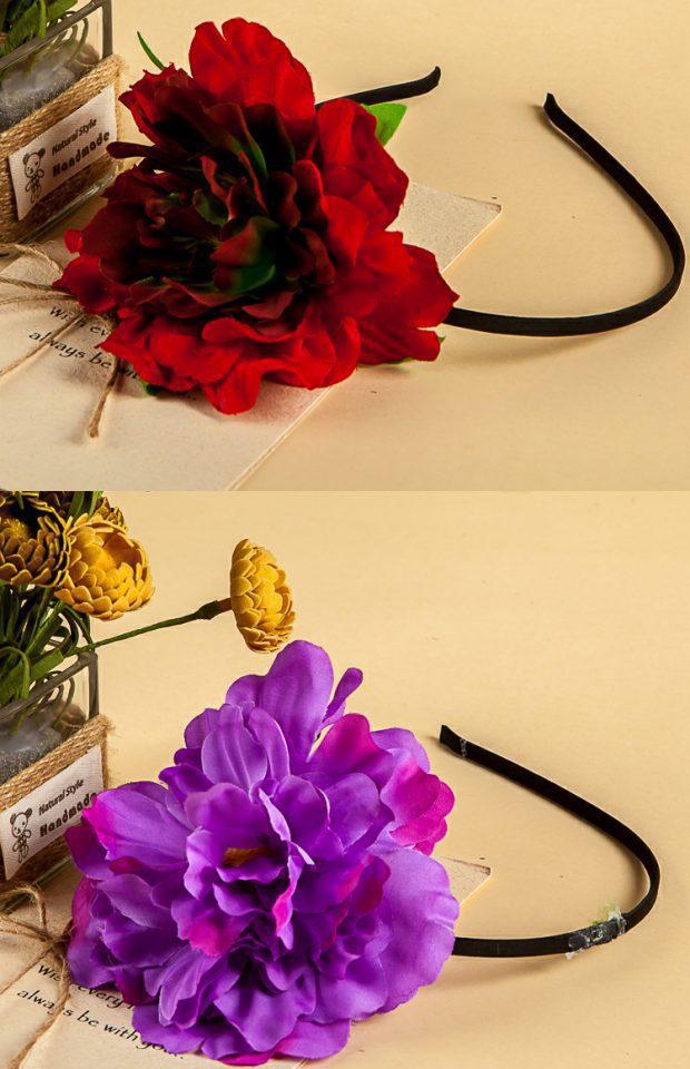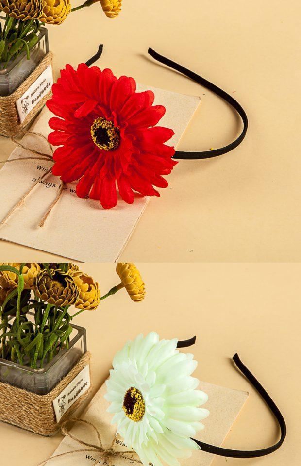 Transparent u hairpin [pink], Brown big headband, Color u hairpin [red], Champagne color wrinkled chrysanthemu...