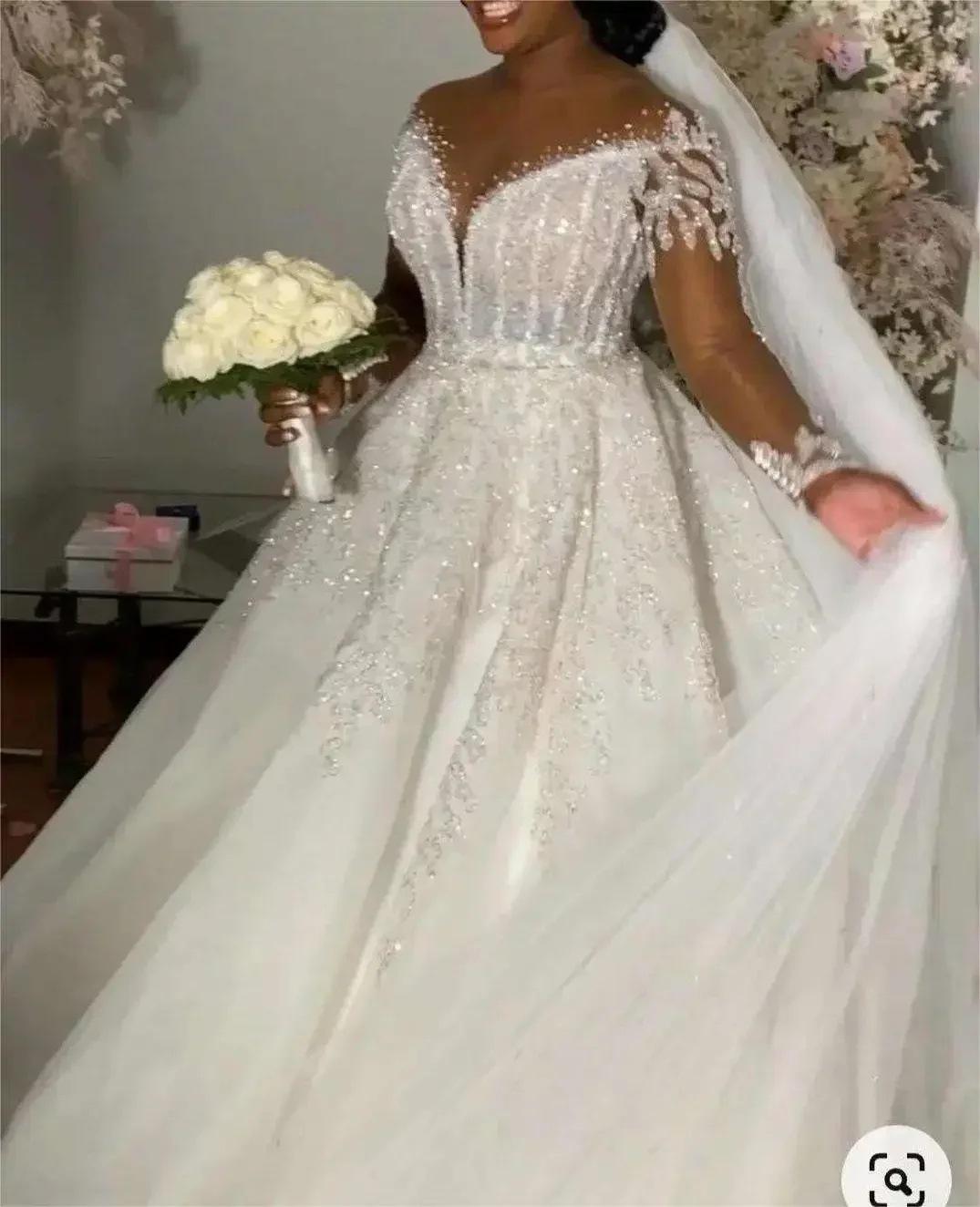 Exquisito Vestido de Gala de Lujo con Lentejuelas y Manga Larga, Vestido de Novia de Cristal Retro Sirena, Vestido Nupcial Desmontable