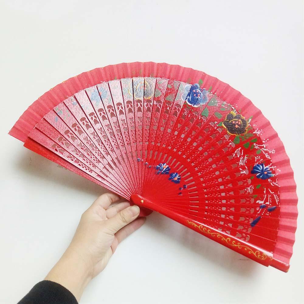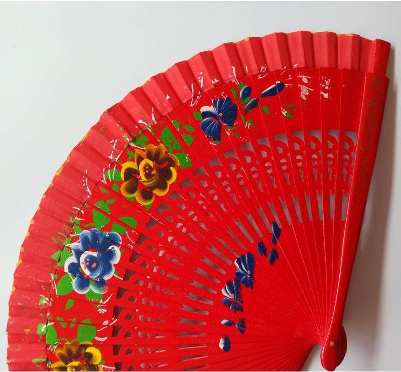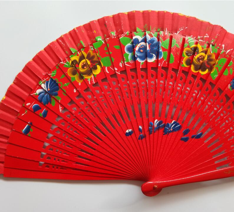 Abanico de madera español sencillo de flor de junco pintado a mano |