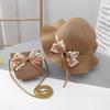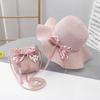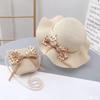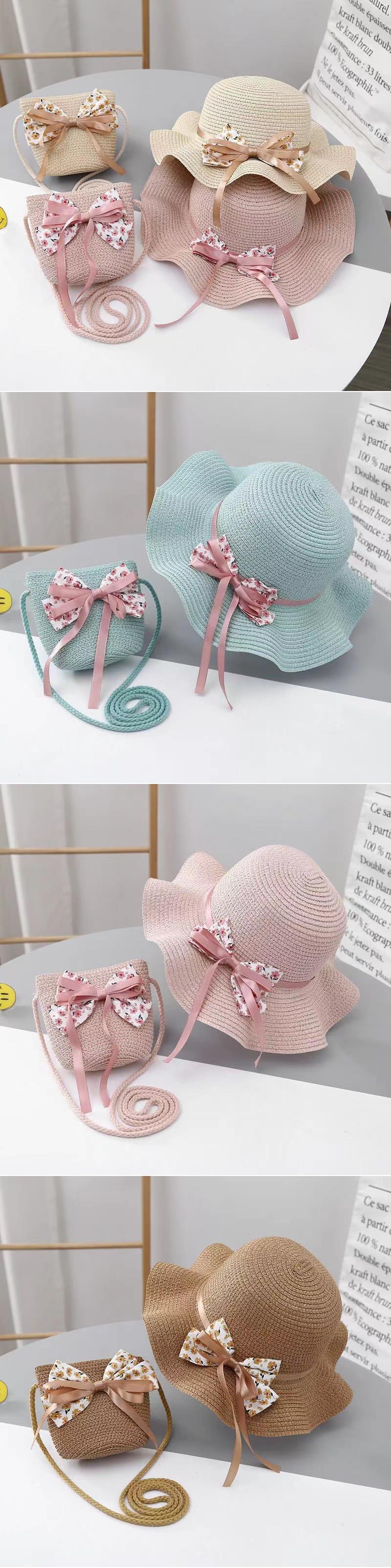 Sombrero de Pescador para Niños, Sombrero de Sol para Niña, Protección Solar para Bebé en Verano, Sombrero de Paja de Ala Ancha con Lazo para Playa, para Padres e Hijos