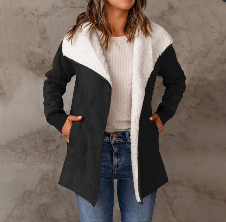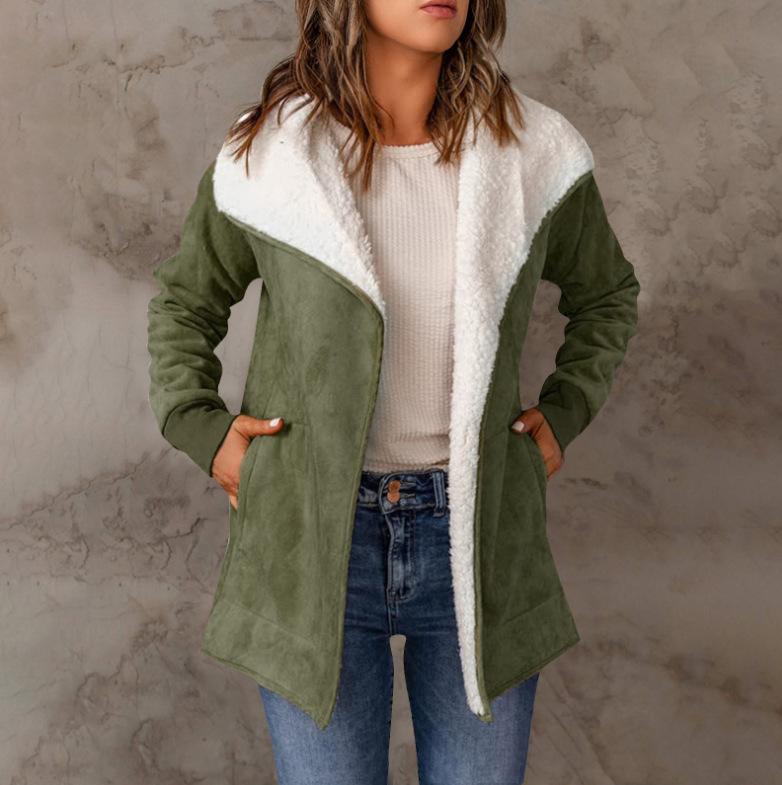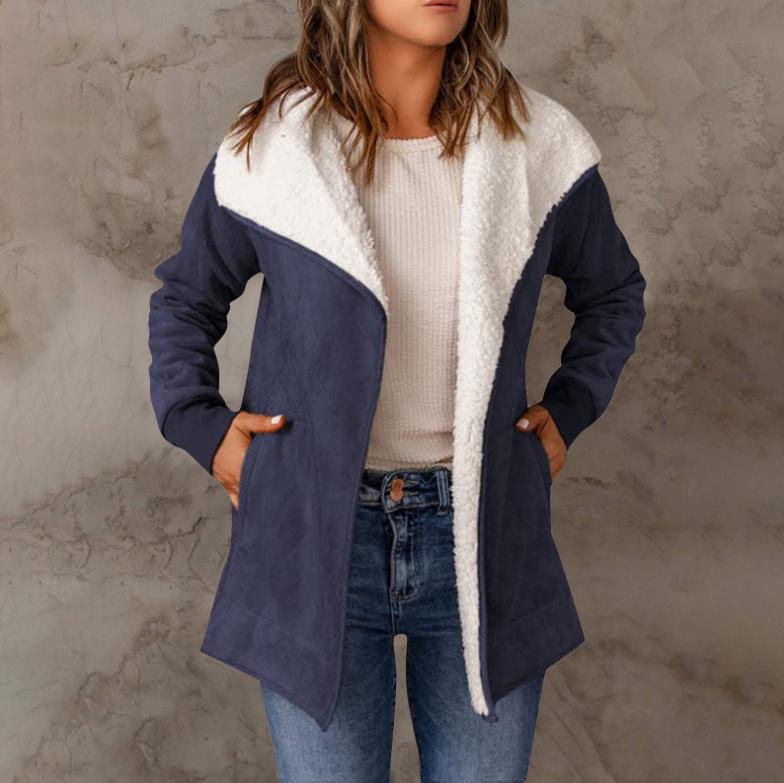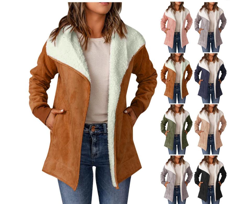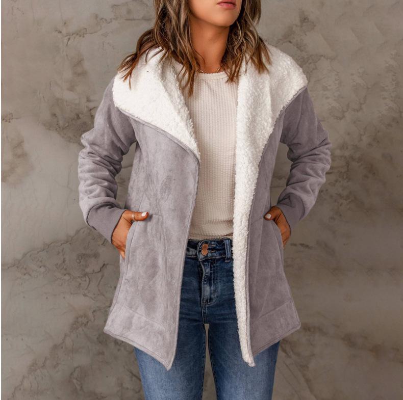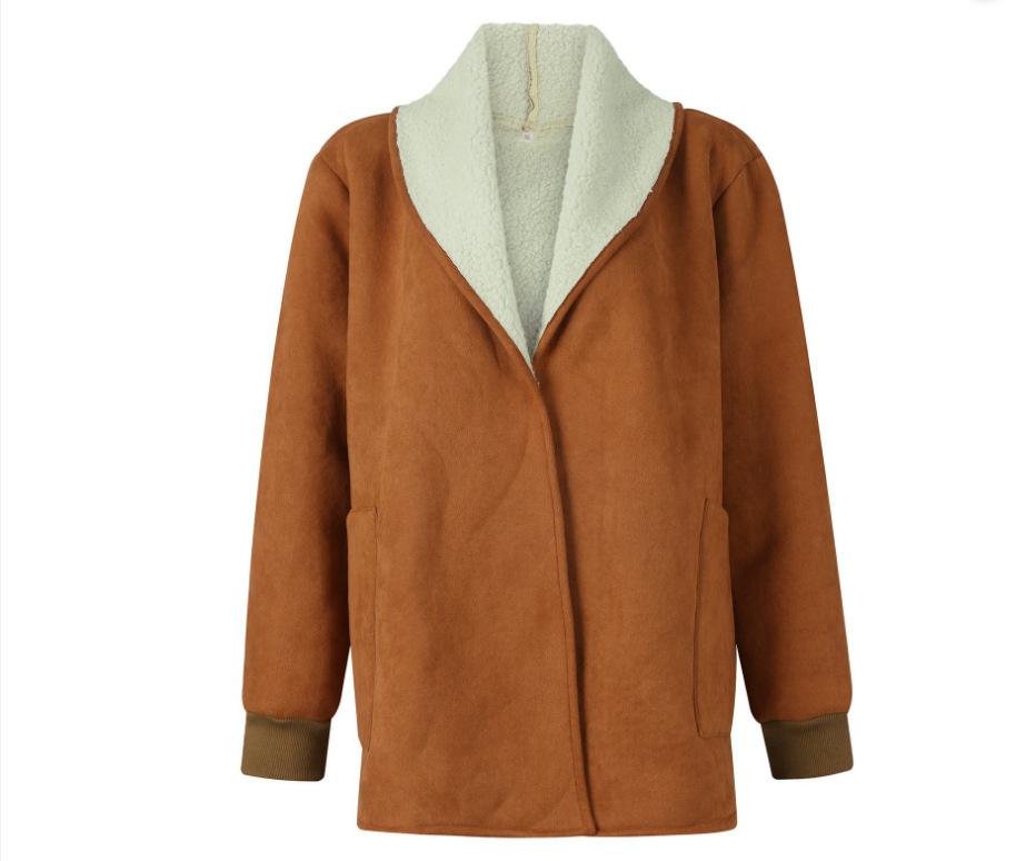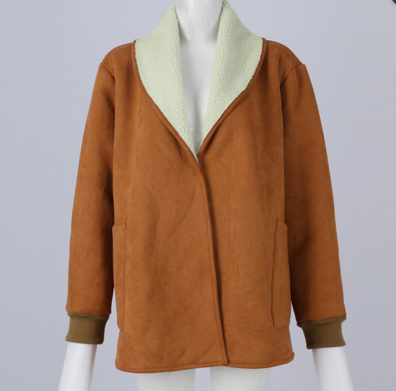 Chaqueta cálida de lana de cordero de gamuza de manga larga popular de otoño e invierno de Amazon Wish para mujeres europeas y americanas