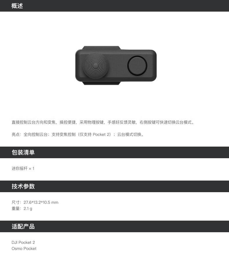 Adecuado para DJI Dajiang Osmo Pocket 2 mini joystick Cámara PTZ Pocket Accesorios oficiales