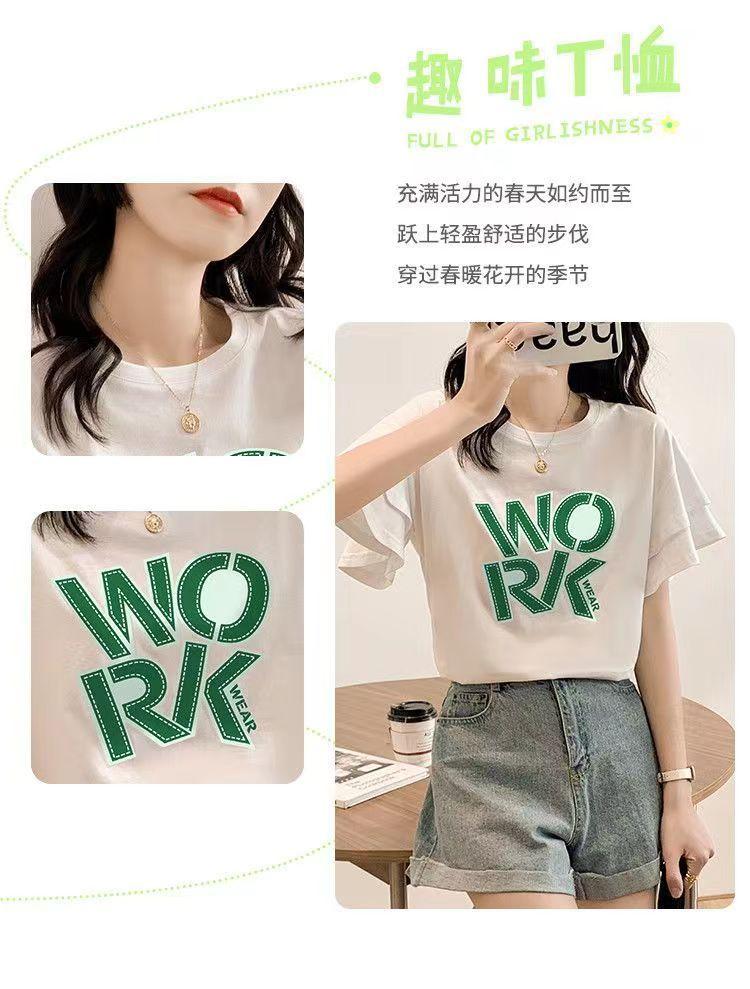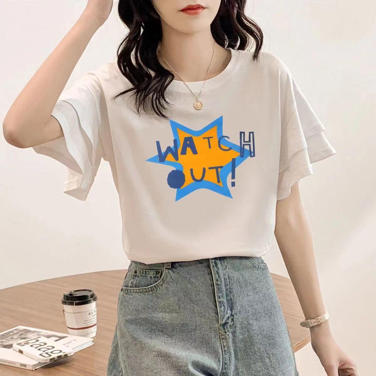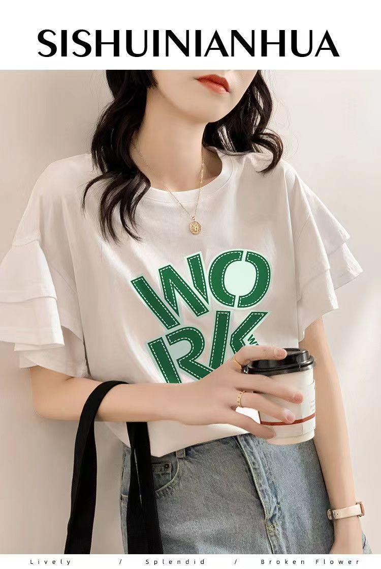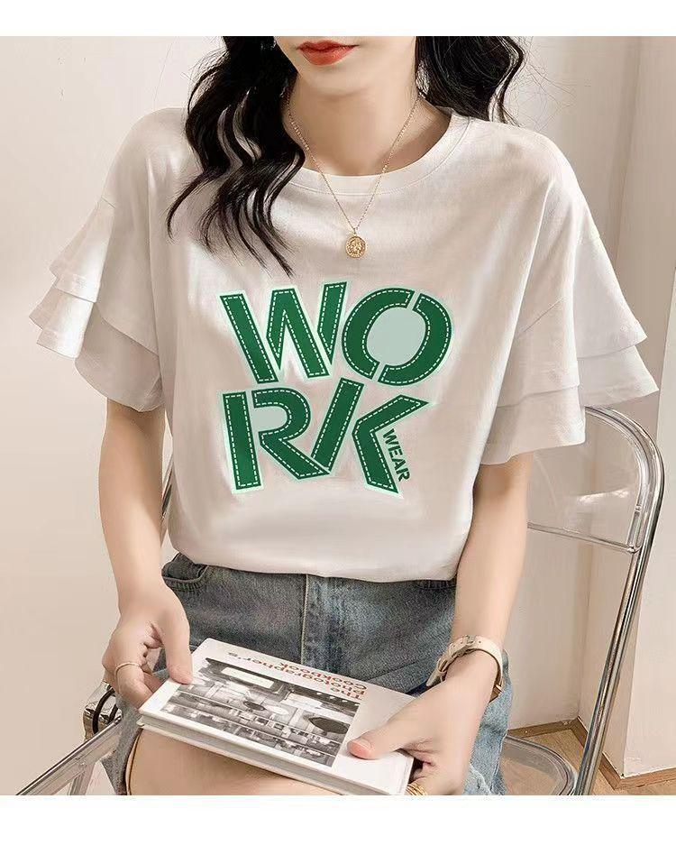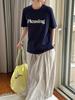 Sencillo Casual Estilo Coreano Manga Corta Verano Chic Manga Cuello Redondo t Manga Moda Estampado de Letras Top Combinable para Mujer