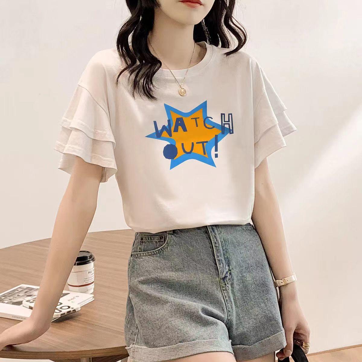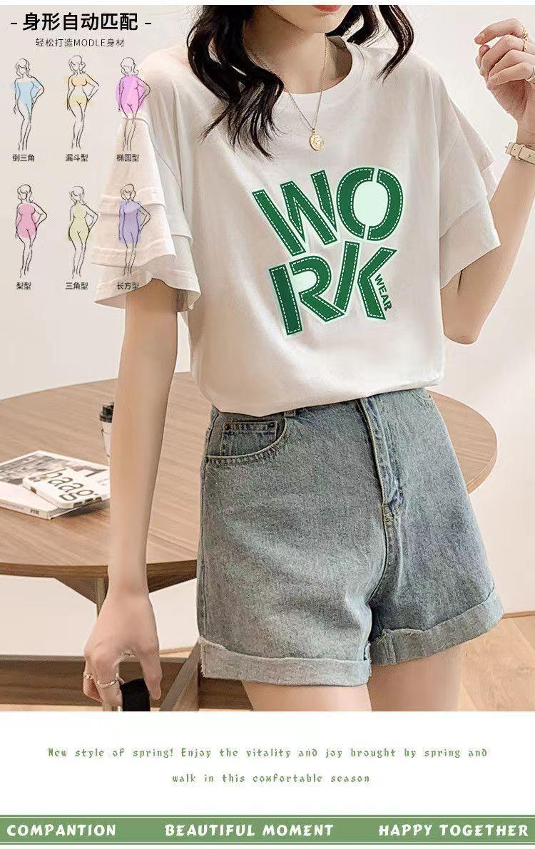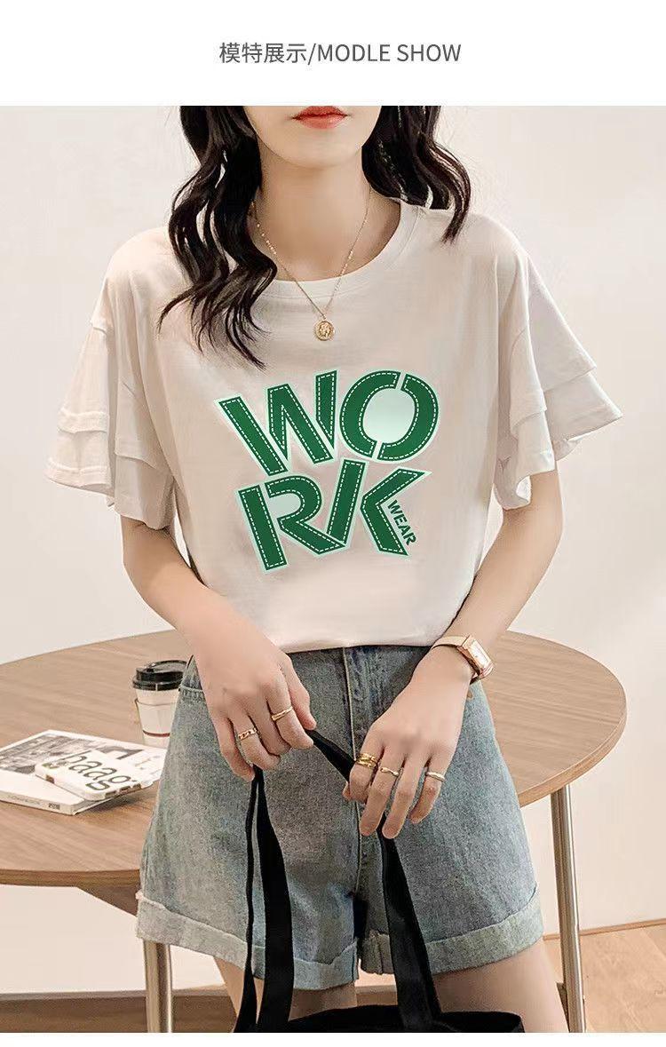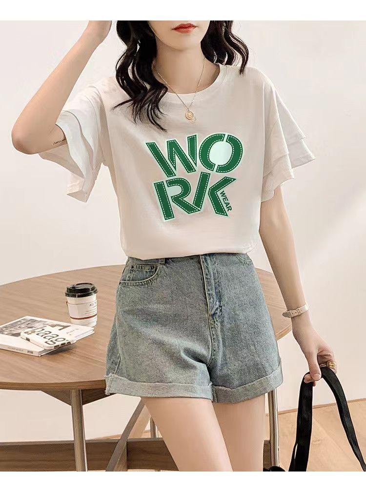 Sencillo Casual Estilo Coreano Manga Corta Verano Chic Manga Cuello Redondo t Manga Moda Estampado de Letras Top Combinable para Mujer