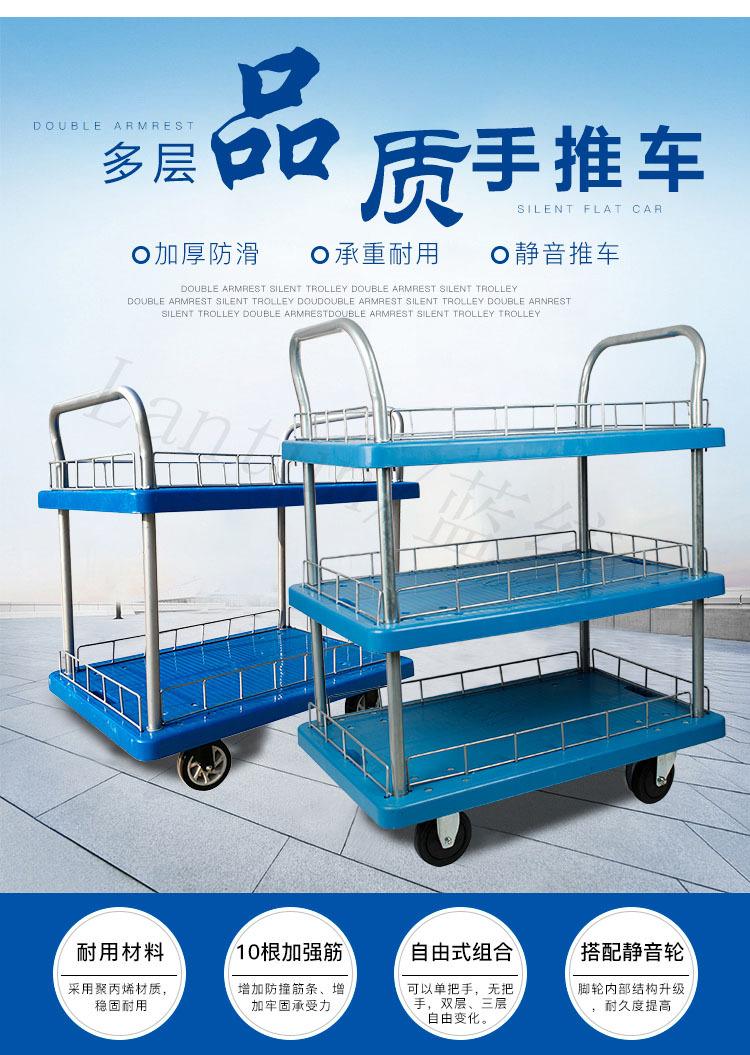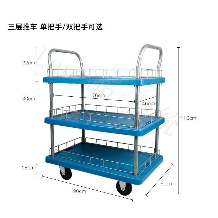 Carro de Doble Capa Carro de Múltiples Capas Carro de Plástico Silencioso para Tirar Mercancías Rueda Silenciosa Volante Carro de Herramientas Camión de Transporte
