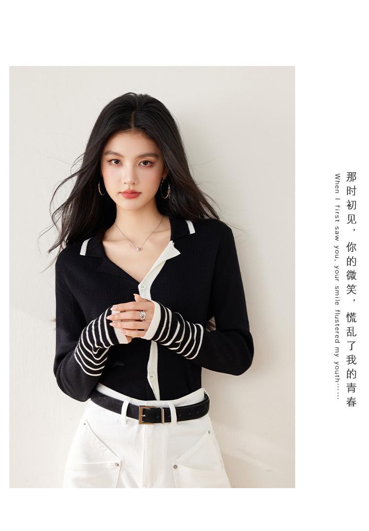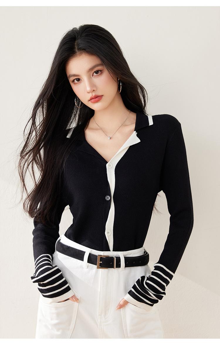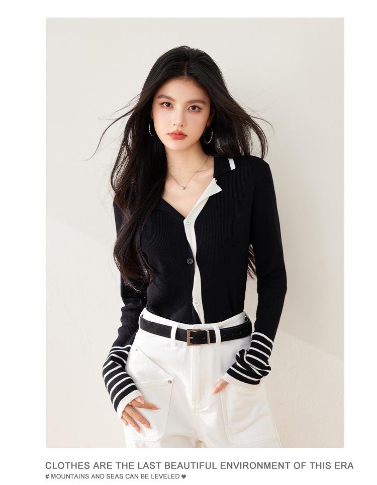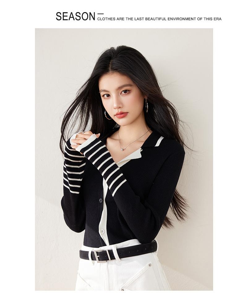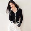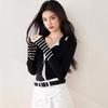 Cárdigan Top de Punto Sexy Slim de Manga Larga con Diseño de Rayas a Juego de Colores Estilo Coreano Nuevo Primavera Temprana 2025 para Mujer