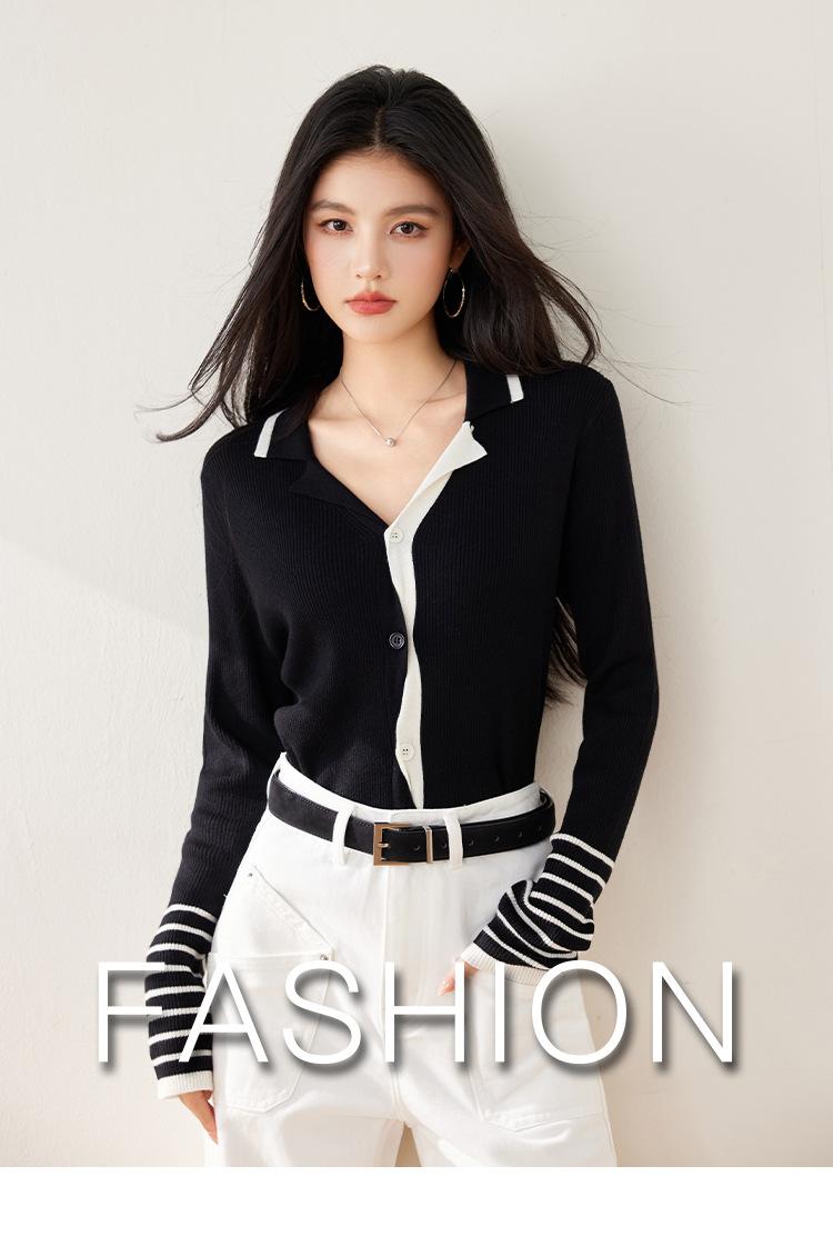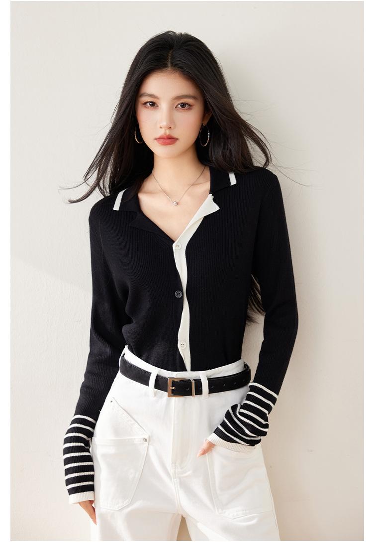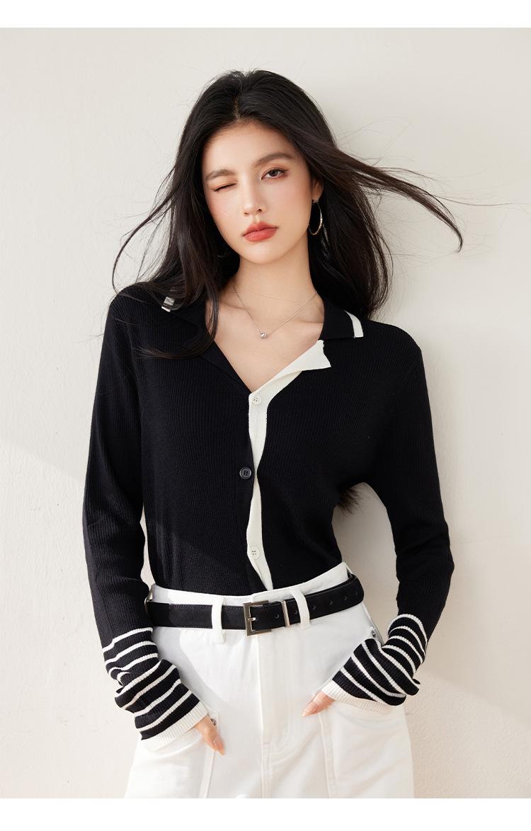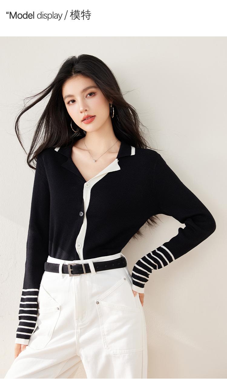 Cárdigan Top de Punto Sexy Slim de Manga Larga con Diseño de Rayas a Juego de Colores Estilo Coreano Nuevo Primavera Temprana 2025 para Mujer