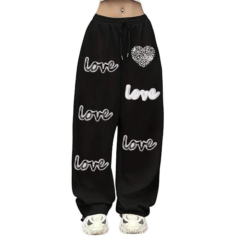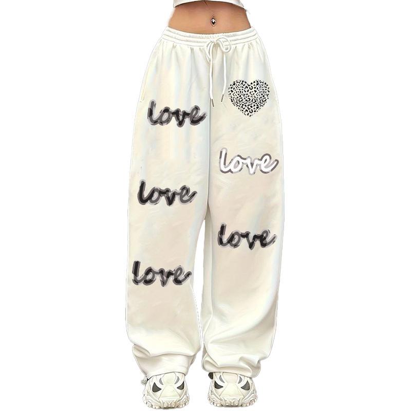 2025 Moda Europea y Americana Nueva Otoño e Invierno Casual Personalidad Versátil Estampado Trendy Calle Chica Caliente Deportes Sueltos Pantalones Largos