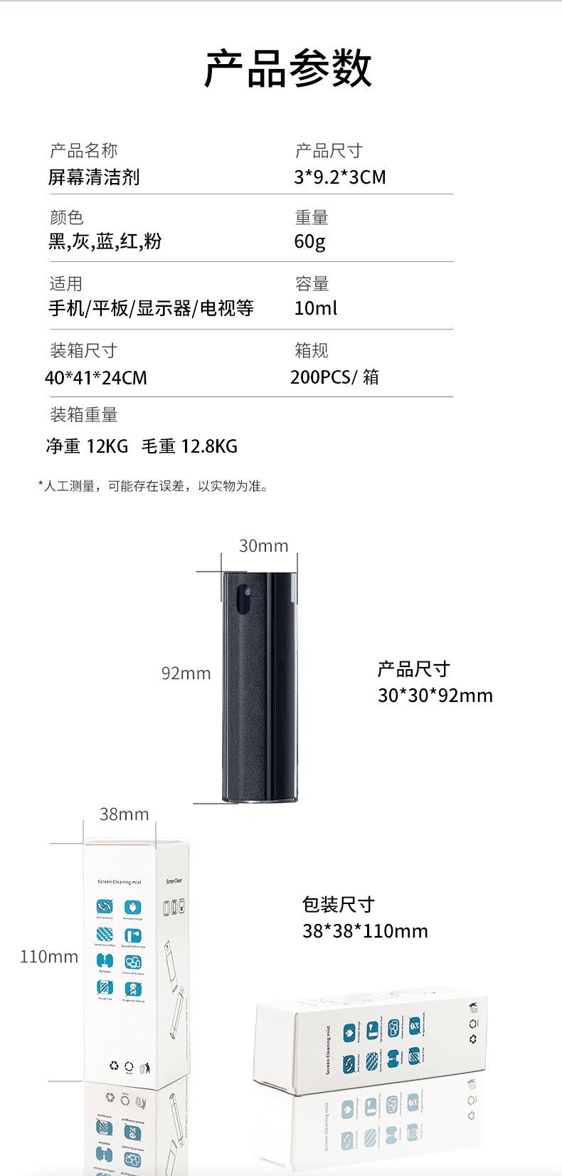 Características del producto: Limpiador portátil, se puede usar para eliminar suciedad de la pantalla, huellas dactilares, polvo, etc., rociar y limpiar todo en uno, pequeño y portátil, ¡se puede usar en cualquier momento y en cualquier lugar!