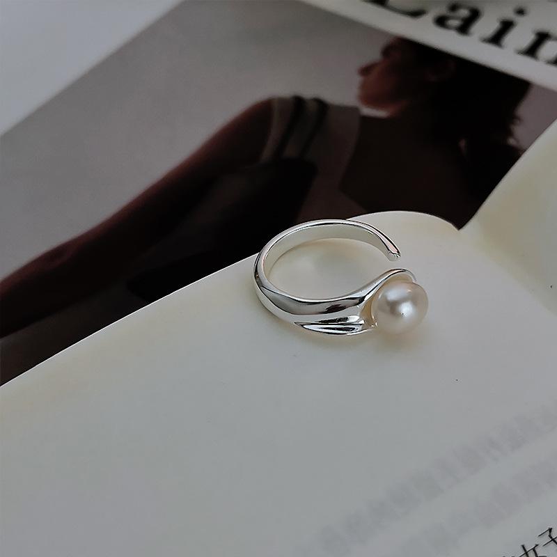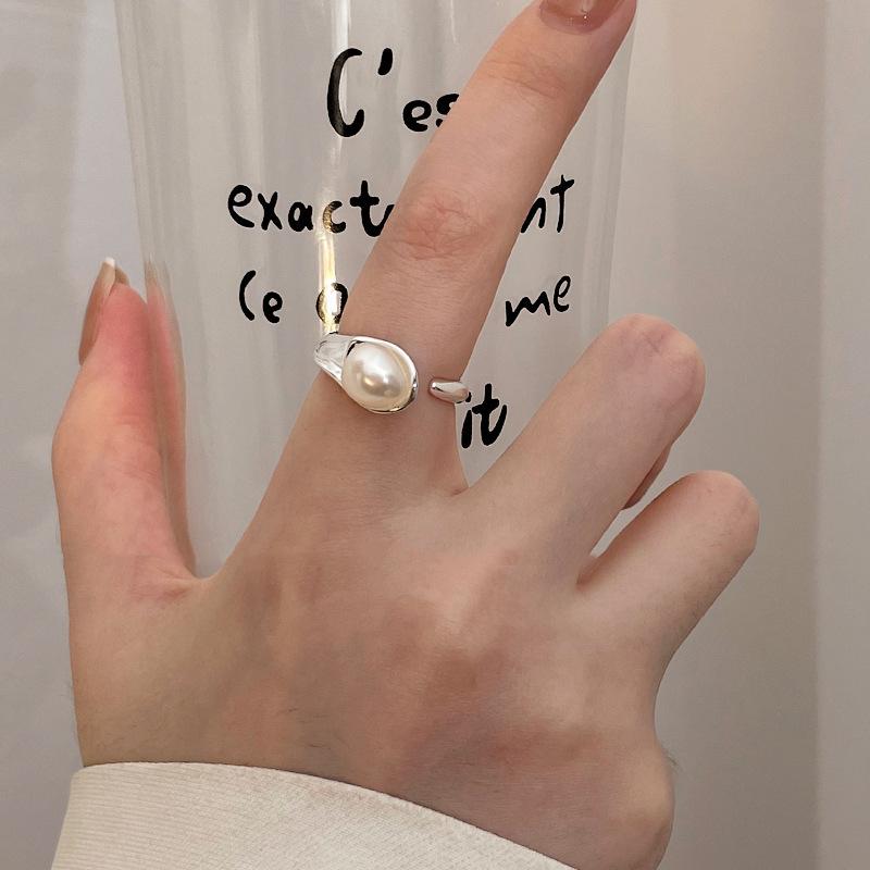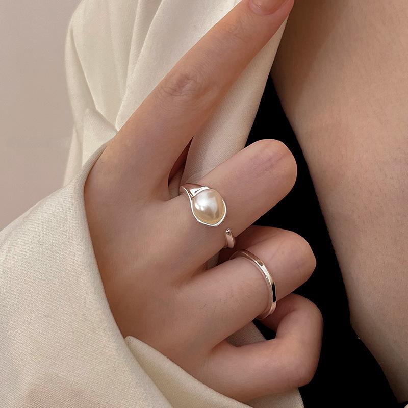Anillo de Luz con Diseño de Perla Lujo para Mujer Estilo Cool Ins Dedo Índice Abertura Anillo Ajustable Estilo Nuevo 2024