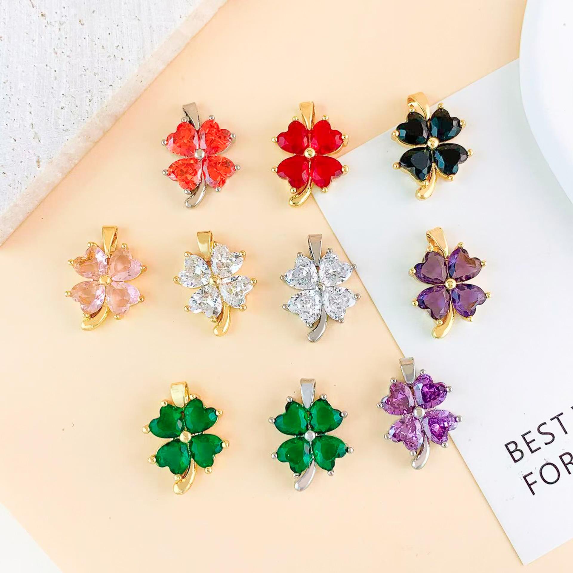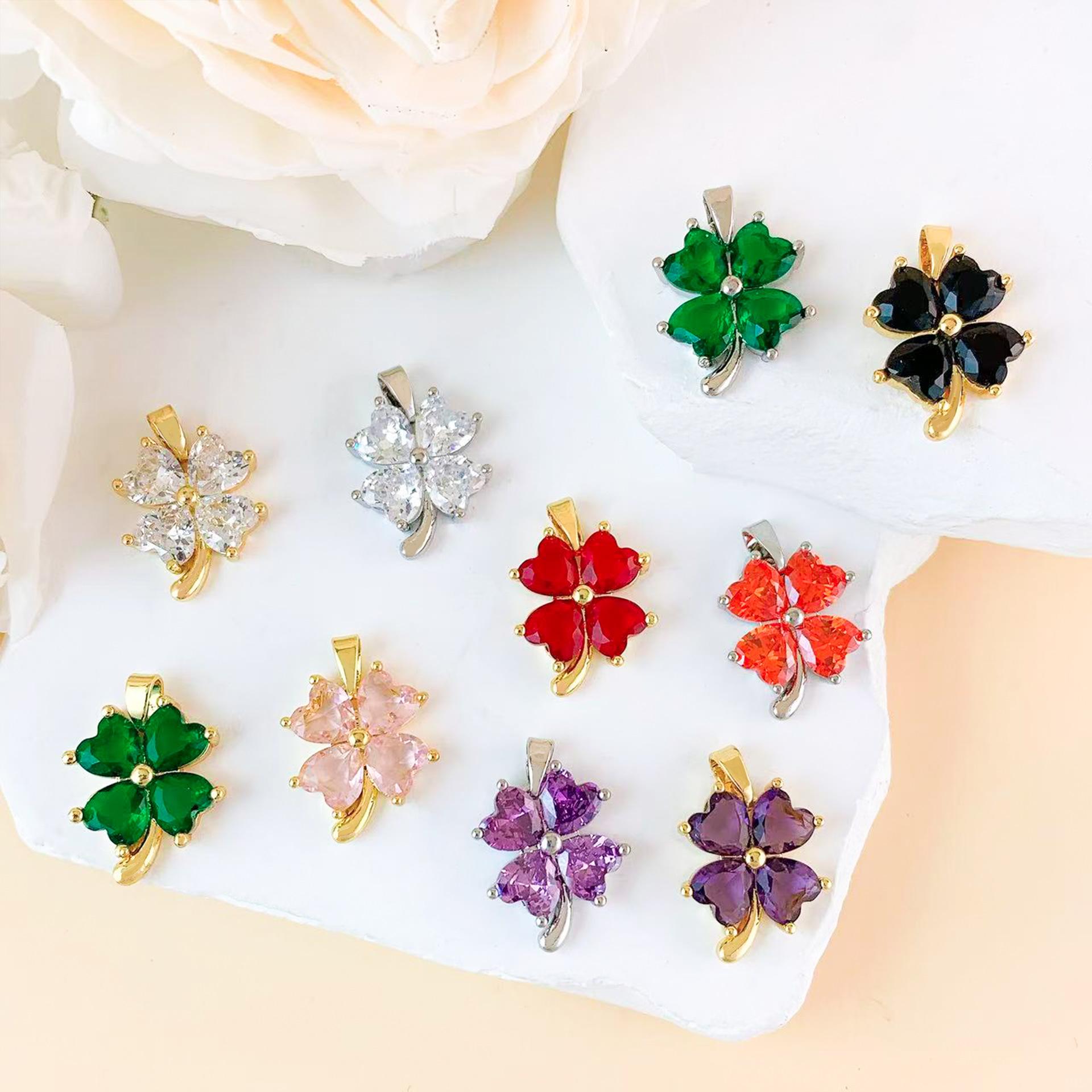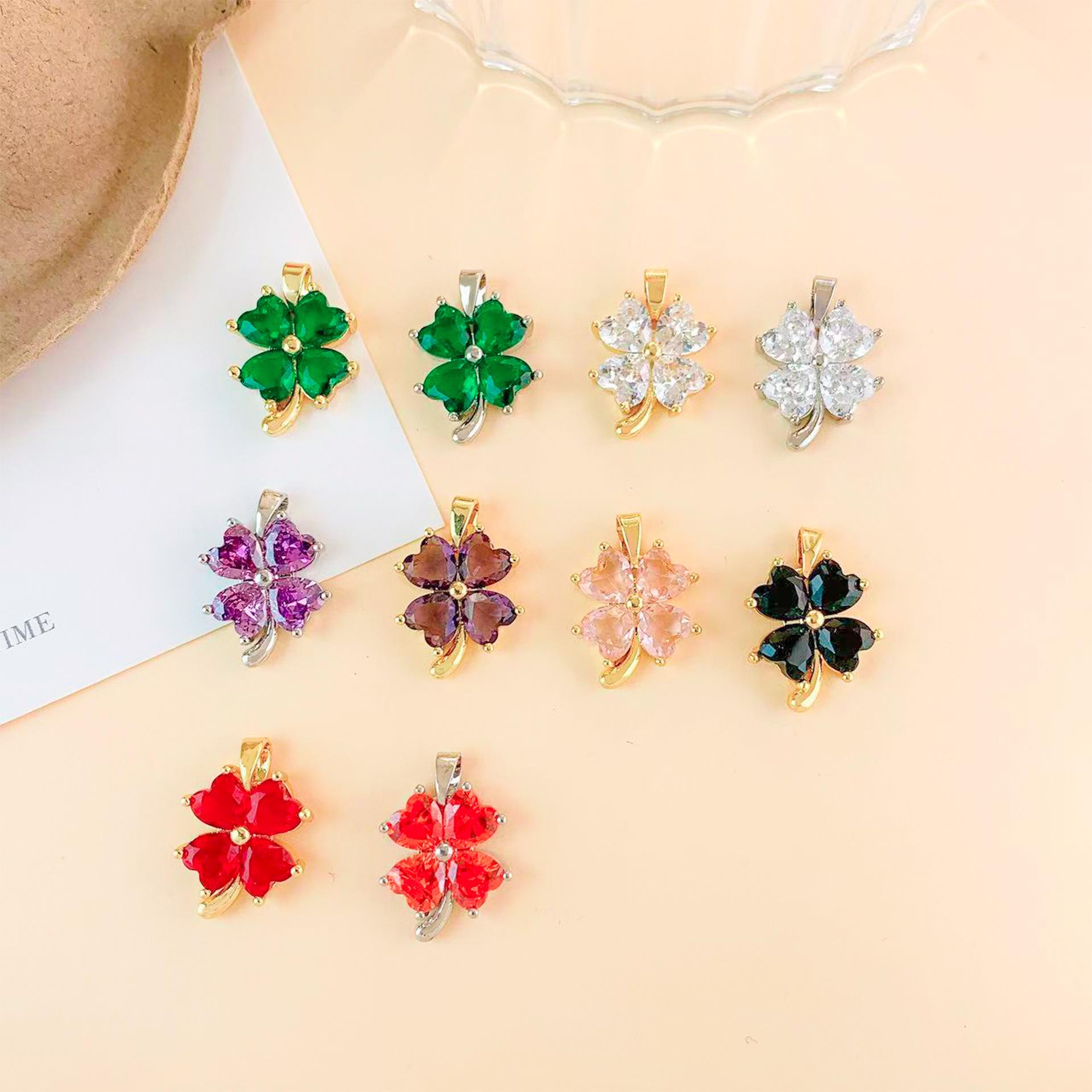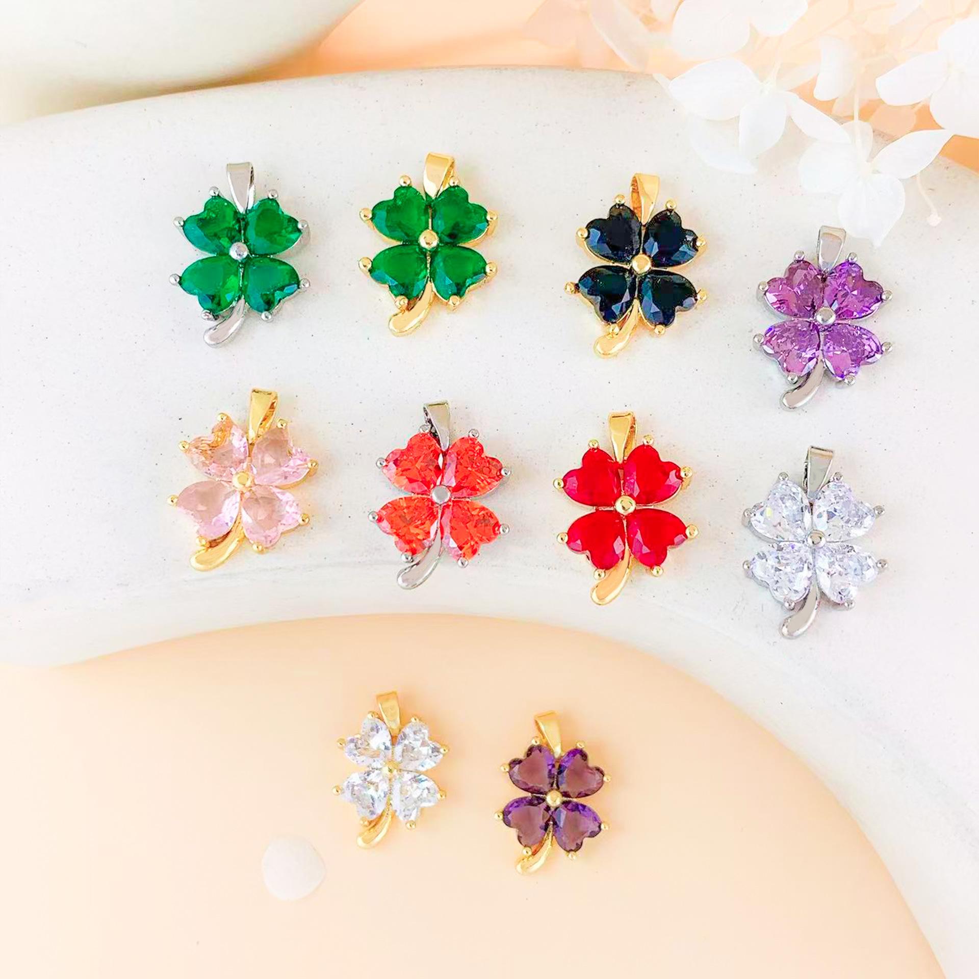 Xl2462 white four-leaf clover pendant gold, Xl2462 white four-leaf clover pendant silver, Xl2462 purple four-l...