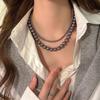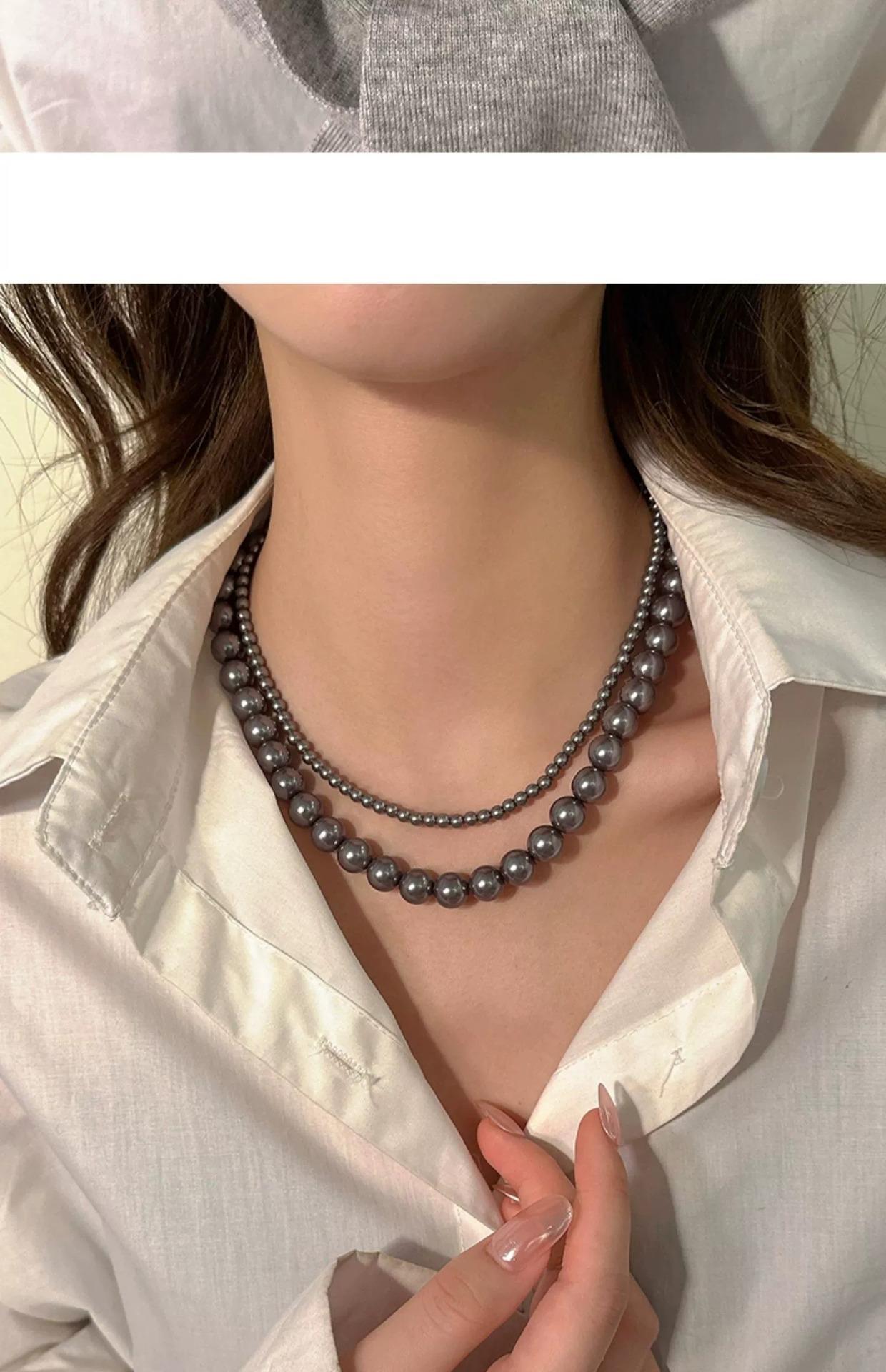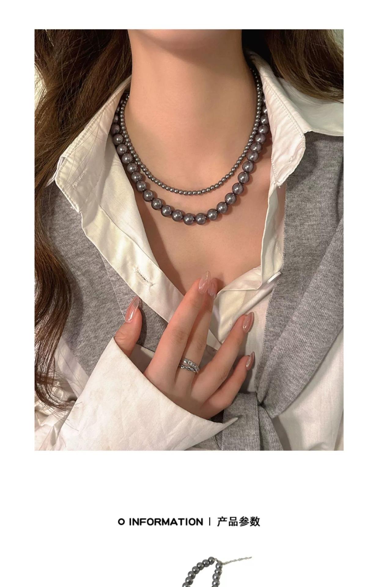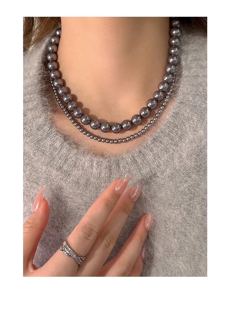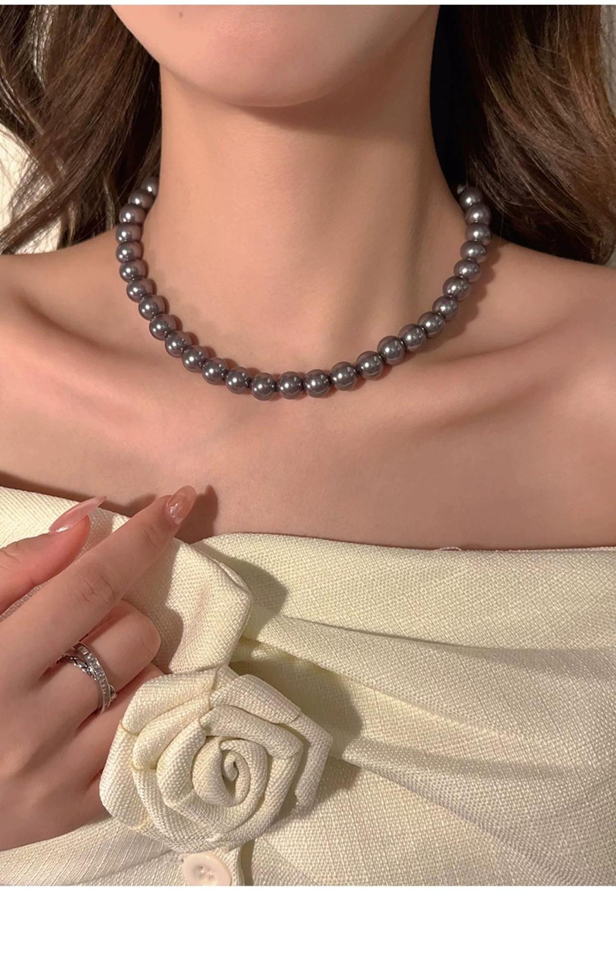 Collar de Perlas Gris Plateado Estilo Francés para Mujer, Cadena de Suéter Nicho de Lujo Ligero de Alta Gama, Nuevo Choker Popular 2025